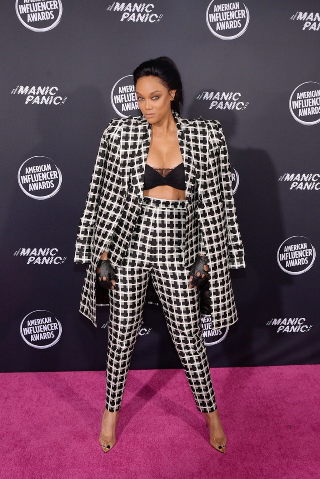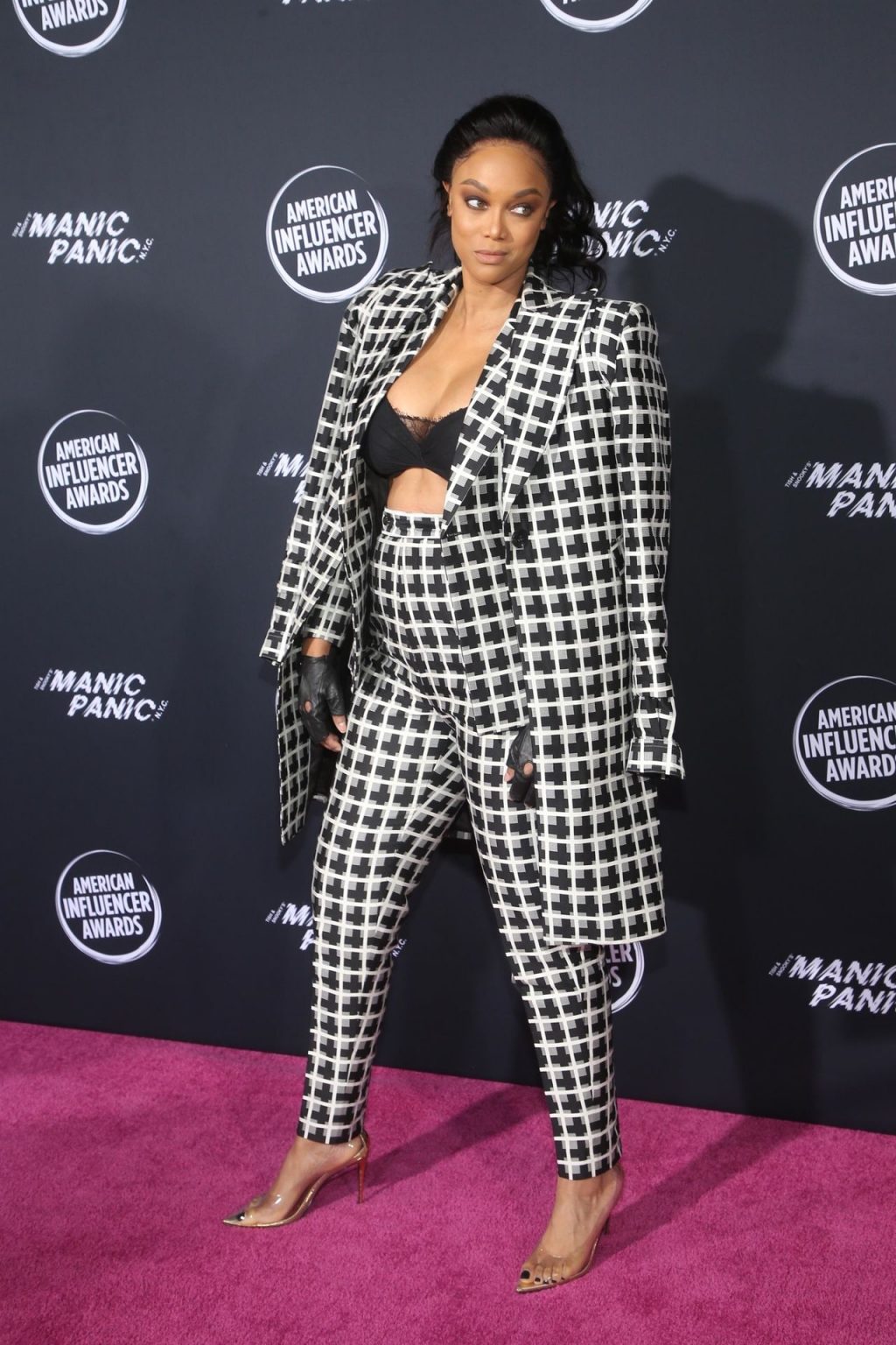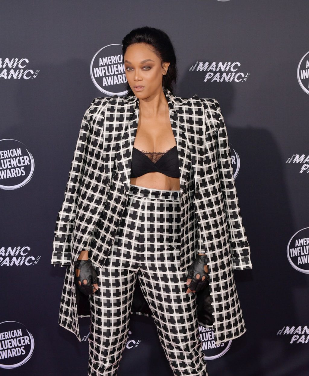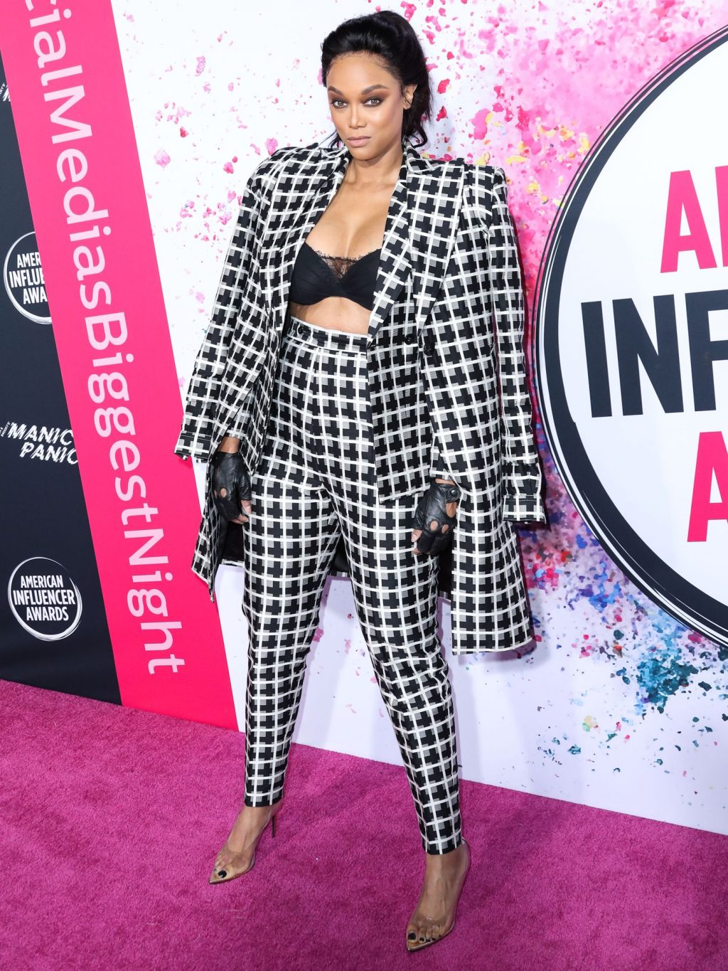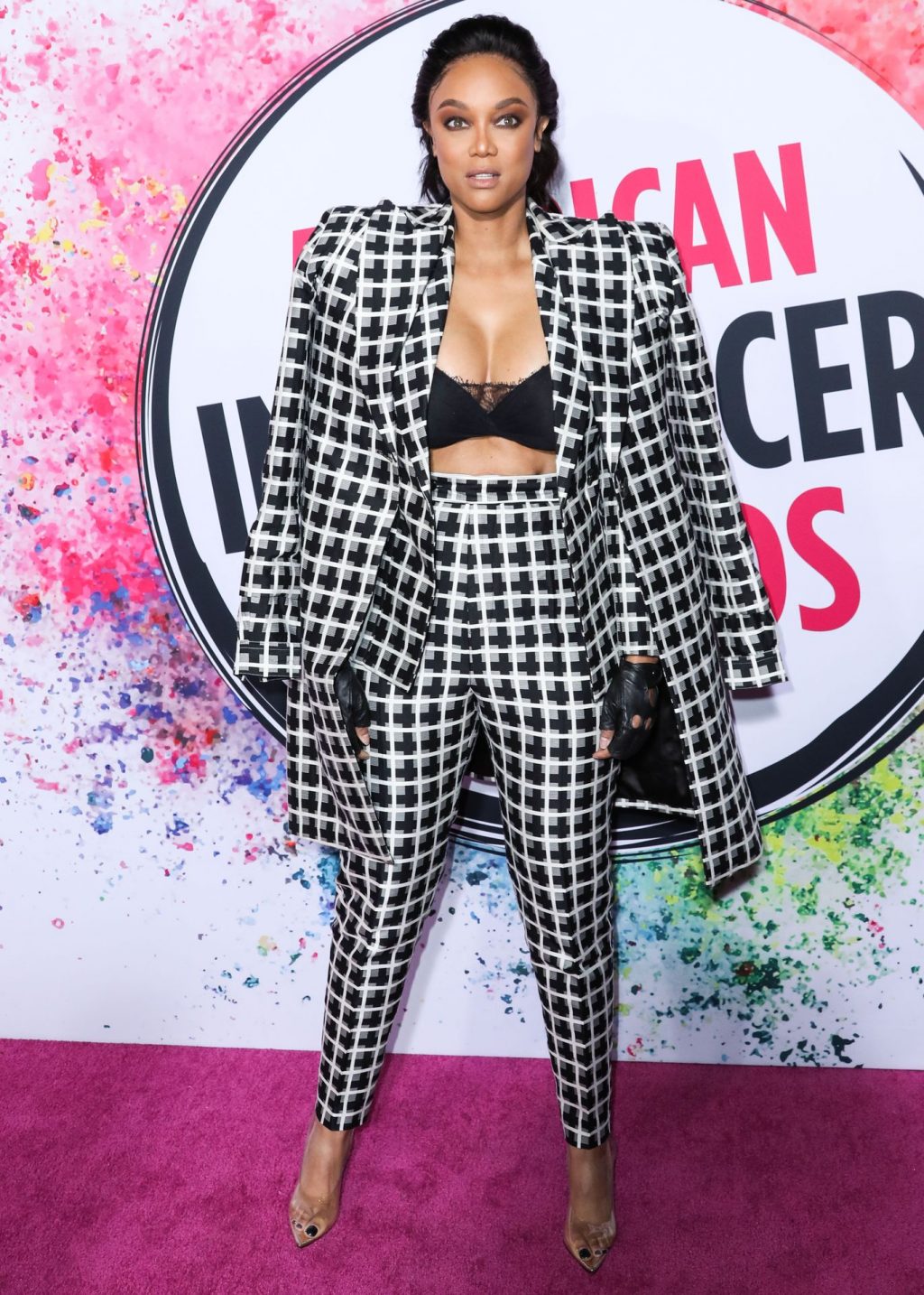 Model/modelo y actriz Tyra Banks mostró su bonito escote en la 2ª Edición Anual de los American Influencer Awards 2019 celebrada en el Dolby Theatre en Hollywood, 18/11/2019.