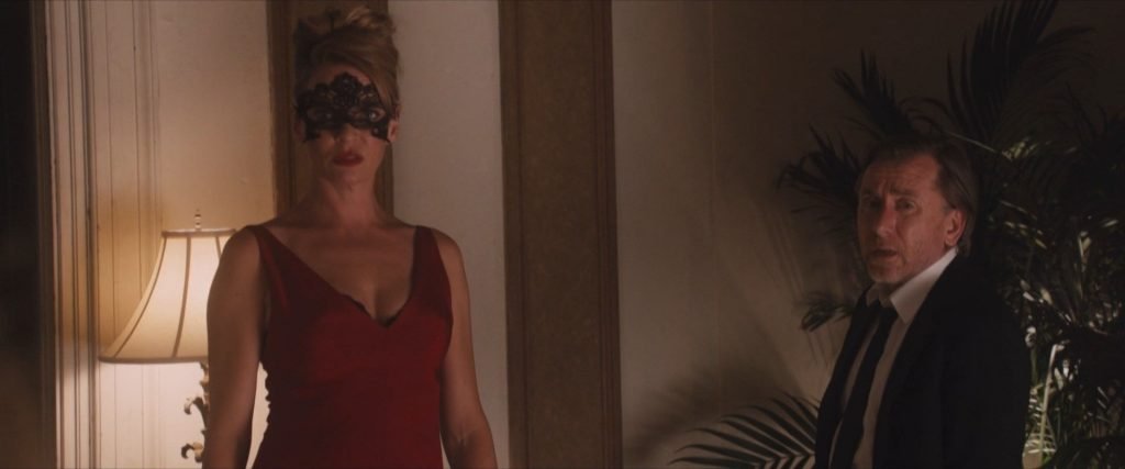 Fotos desnudas y sexys, gif y video de Uma Thurman (como Harriet Fox), Maggie Q (como Irina), Sofía Vergara (como Vivien) y Alice Eve (como Jackie) de The Con is On (2018).