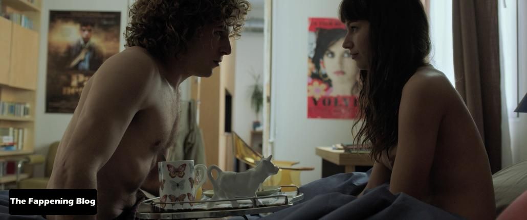 Úrsula Corberó está sentada desnuda en la cama mientras un hombre le trae una bandeja con el desayuno y se sienta a su lado para hablar.