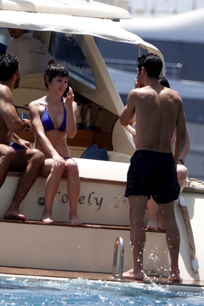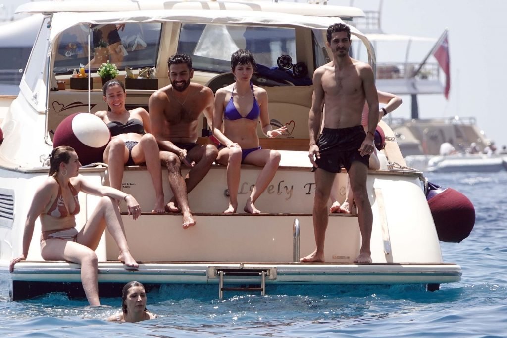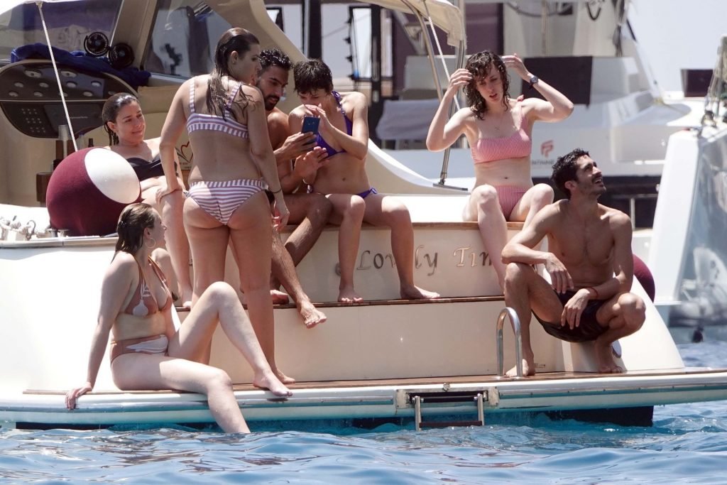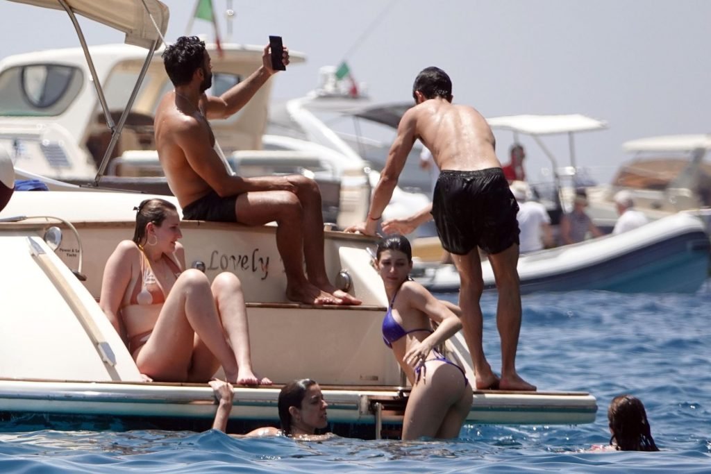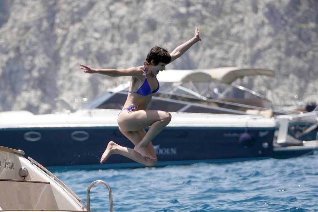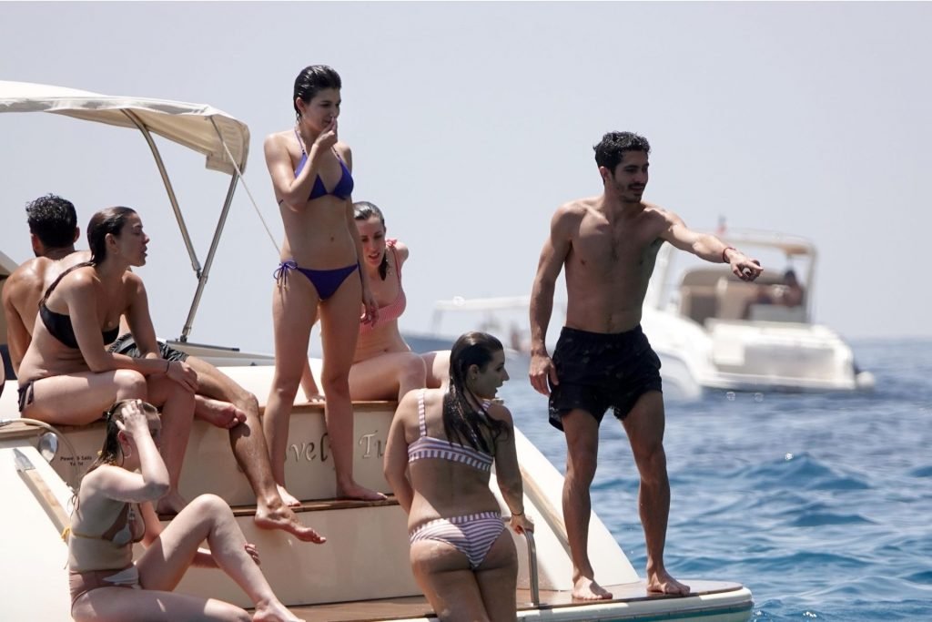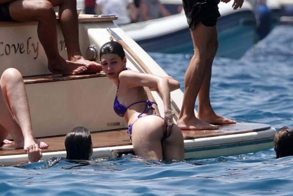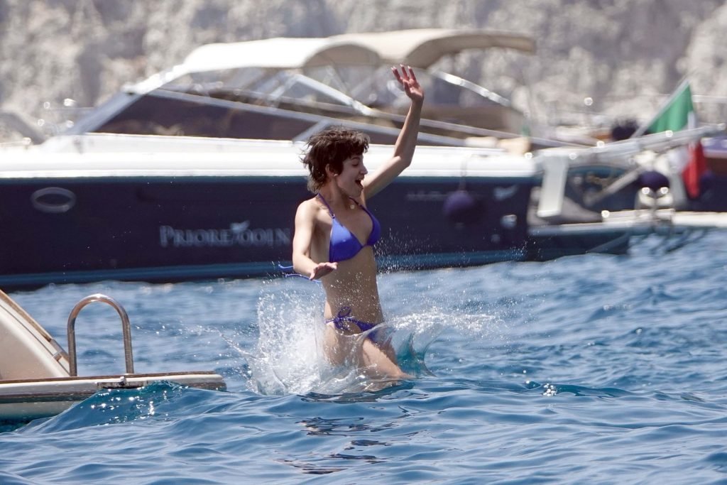 La actriz española Úrsula Corberó fue vista mientras causaba sensación con un bikini azul junto a su pareja Chino Darín y amigos de vacaciones en la isla de Capri, 14/06/2019.