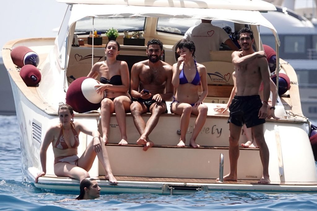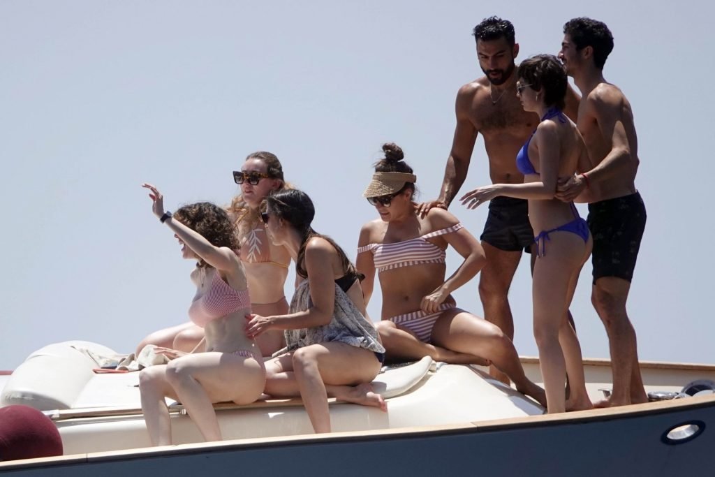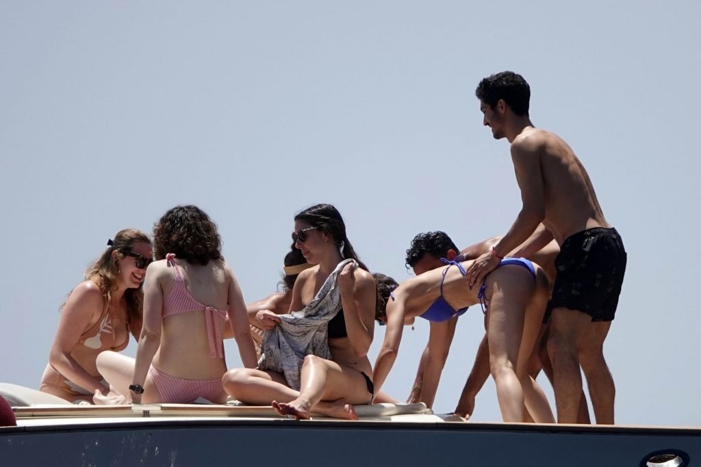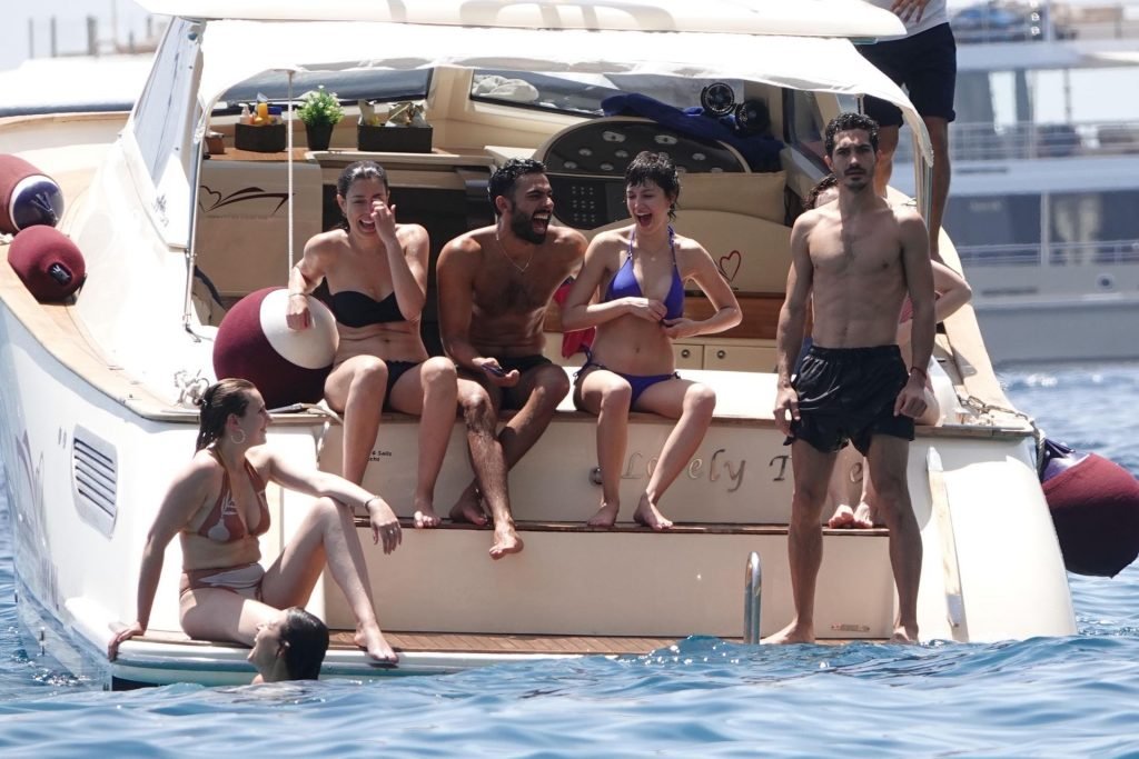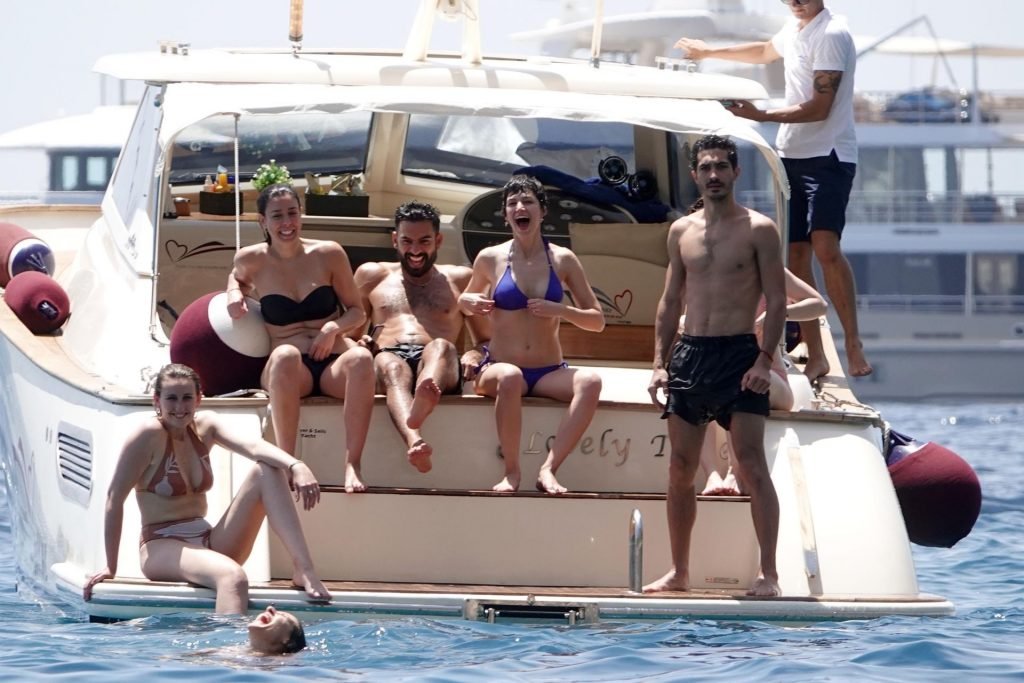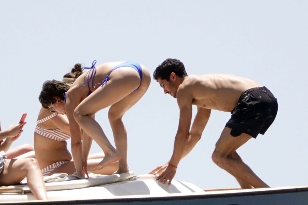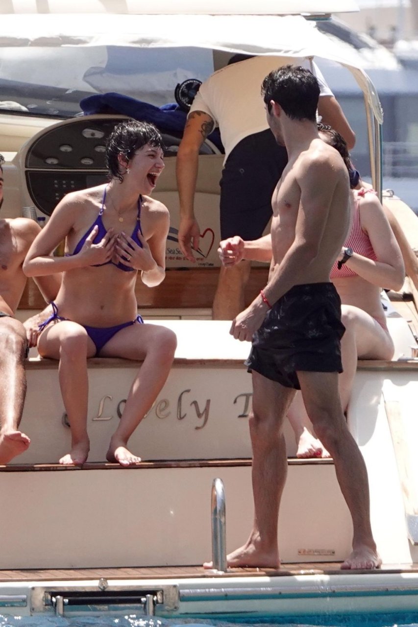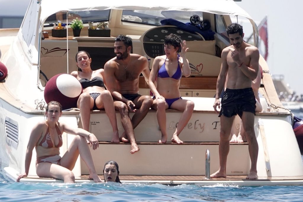 La actriz española Úrsula Corberó fue vista mientras causaba sensación con un bikini azul junto a su pareja Chino Darín y amigos de vacaciones en la isla de Capri, 14/06/2019.
