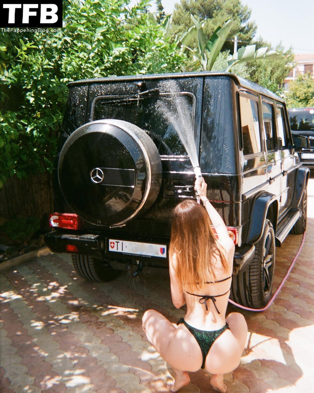 La modelo y diseñadora de trajes de baño Valentina Fradegrada lava su auto posando en un sexy bikini diminuto – Instagram, 24/10/2021.