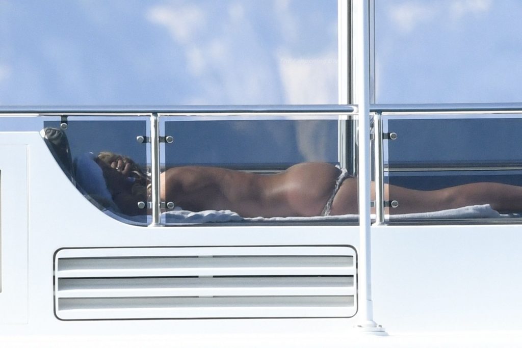 La actriz italiana Valeria Marini, quien es competidora en la versión española de “La Isla de los Famosos”, aparece desnuda divirtiéndose en un barco mientras está de vacaciones con algunos amigos en la Isla de La Maddalena en Cerdeña, 26/08/2019.