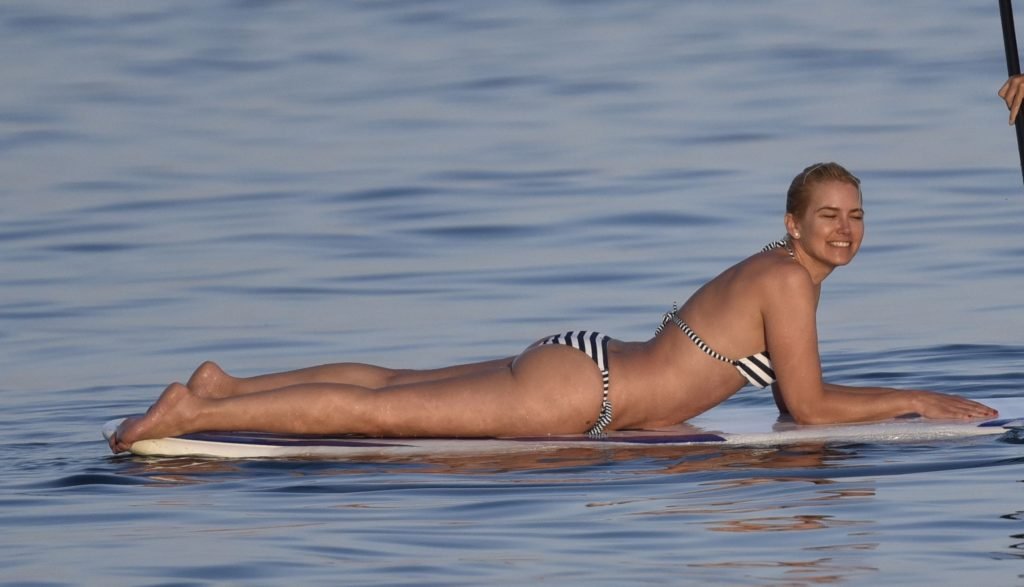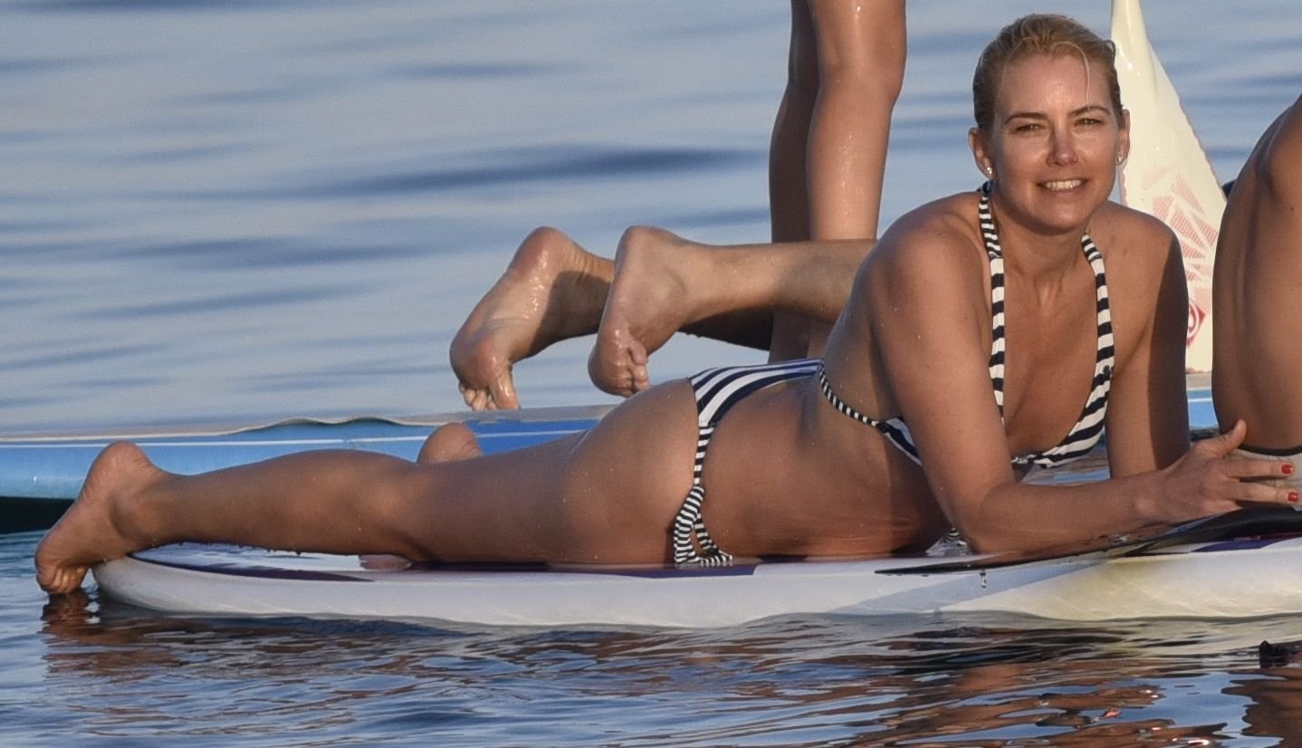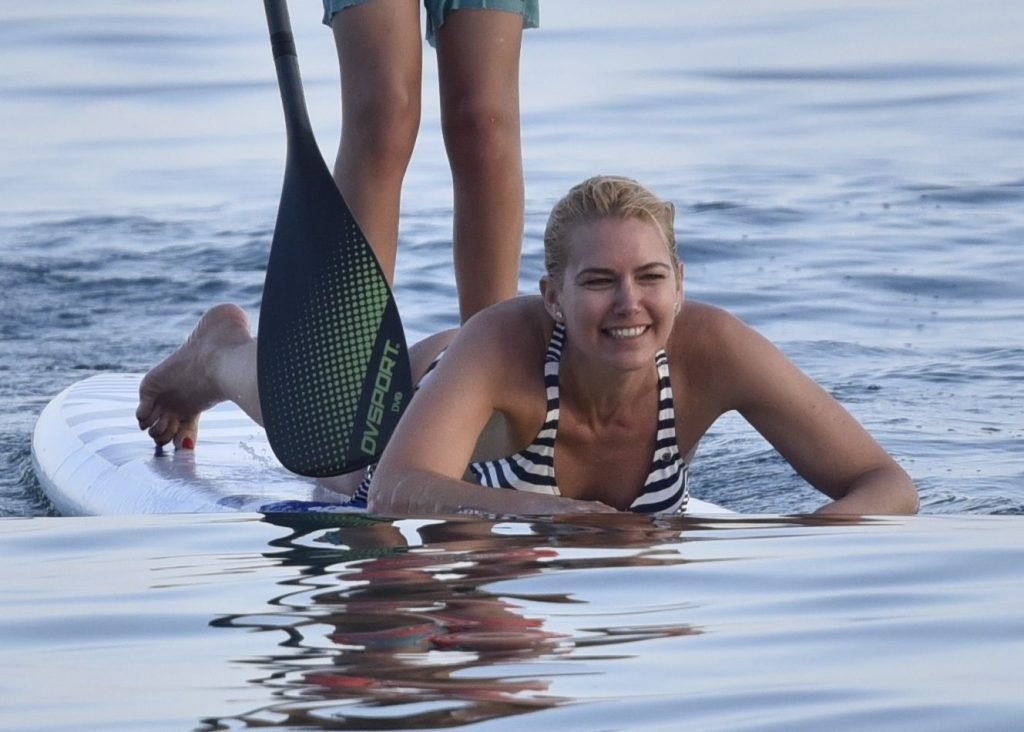 Valeria Mazza y su familia practican paddle surf en Marbella, España, 23/08/2017. Valeria Mazza es una modelo y empresaria argentina, considerada la primera supermodelo latinoamericana. Edad: 45.