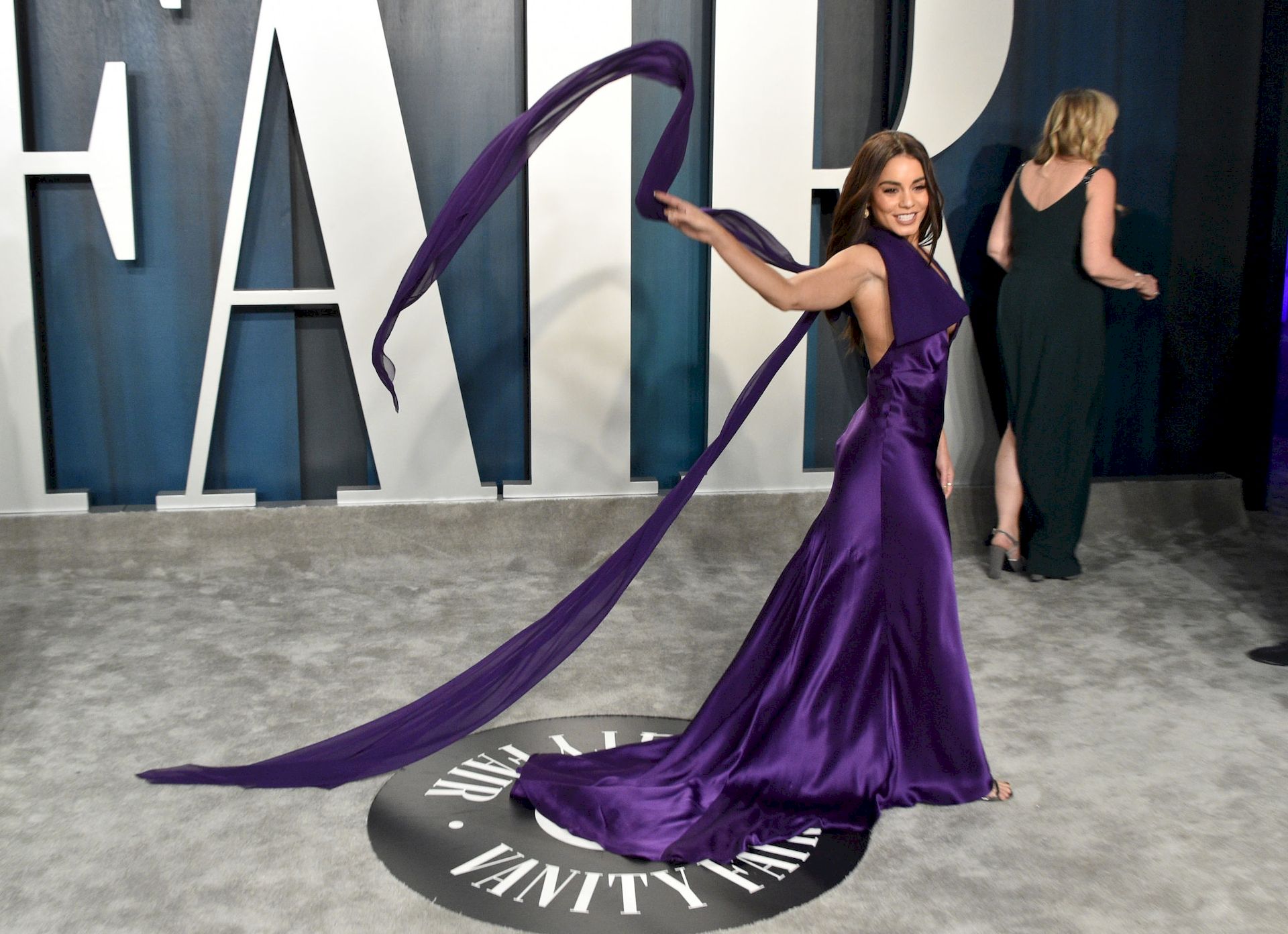 La actriz/cantante estadounidense Vanessa Hudgens (31) llega a la fiesta de Vanity Fair de los Oscar en Beverly Hills, 09/02/2020. La estrella de Fappening mostró su escote en la alfombra roja.