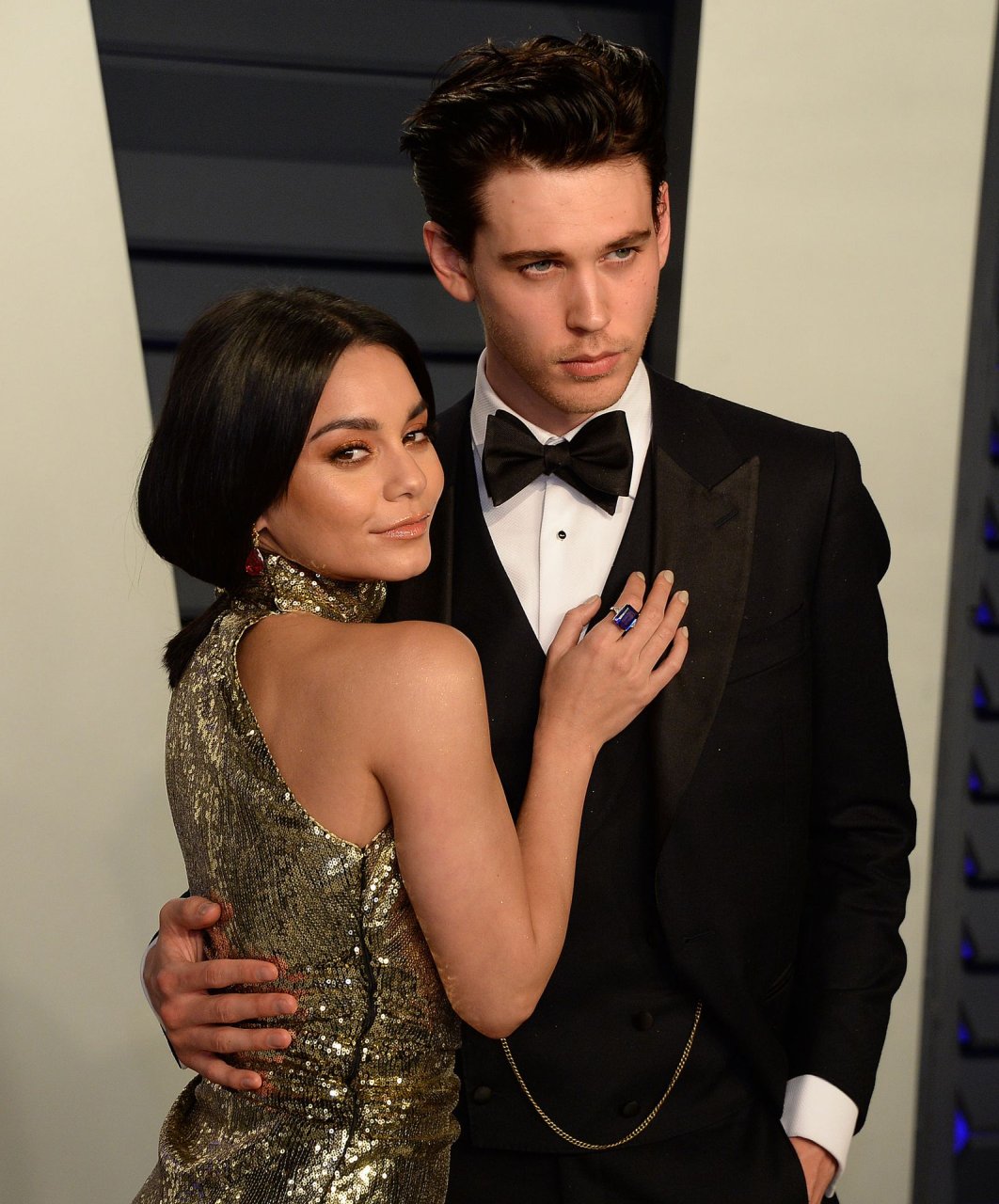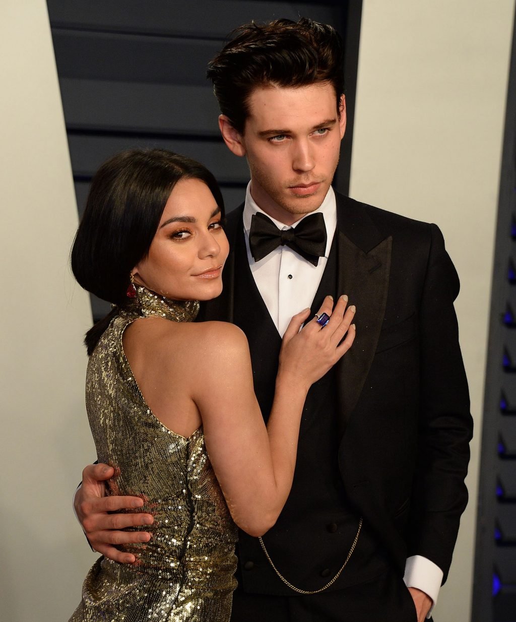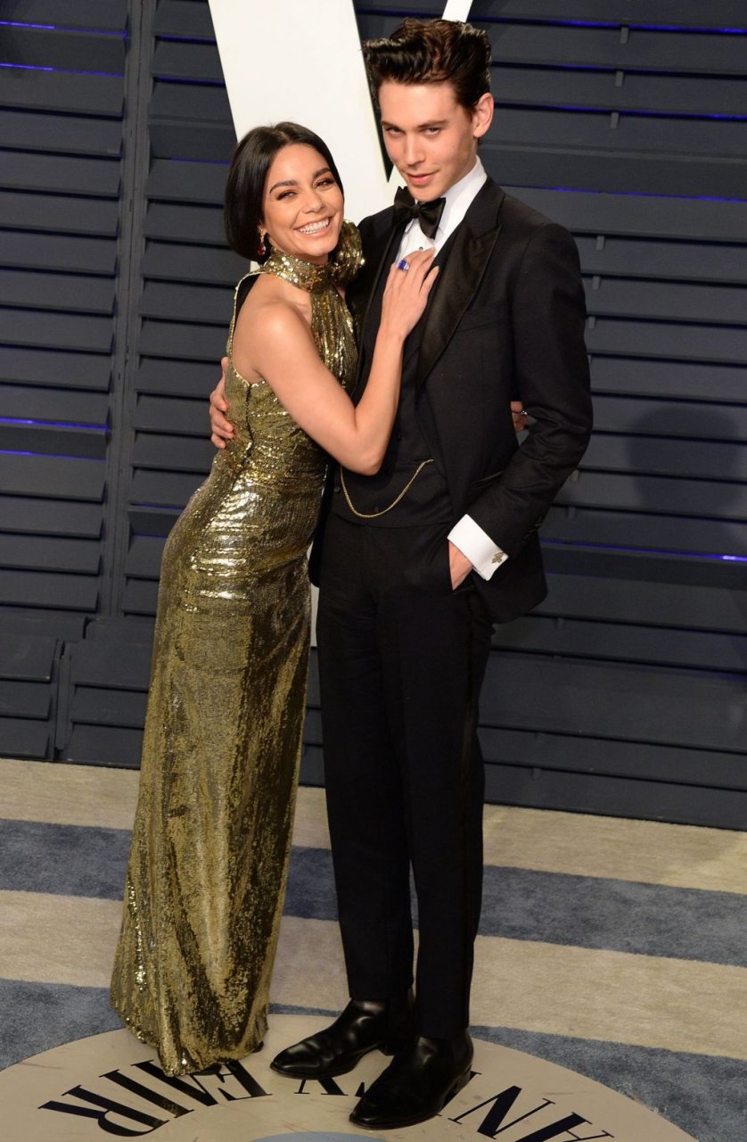 Vanessa Hudgens, de piernas largas, fue vista usando un vestido dorado en la Fiesta de los Oscar Vanity Fair 2019 en Beverly Hills, 24/02/2019. La actriz/cantante y La Estrella de The Fappening apareció en el evento con su novio, Austin Butler.