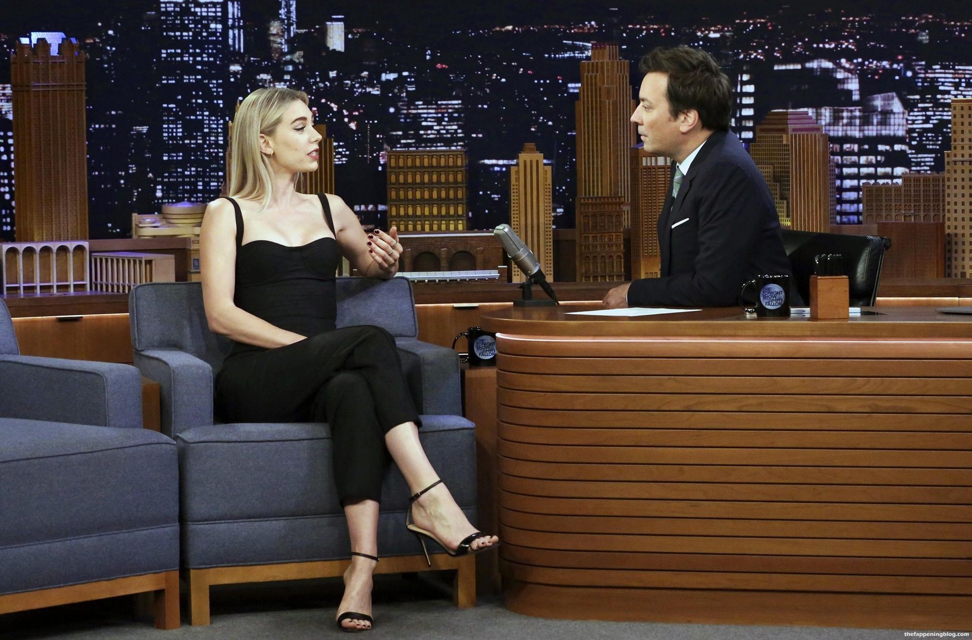 Katherine Waterston y Vanessa Kirby aparecen ambas topless en un montaje de escenas lésbicas en las que las chicas se besan y tienen sexo juntas en la cama. Vanessa es la de cabello más claro y rojizo, y Katherine tiene el cabello más oscuro.