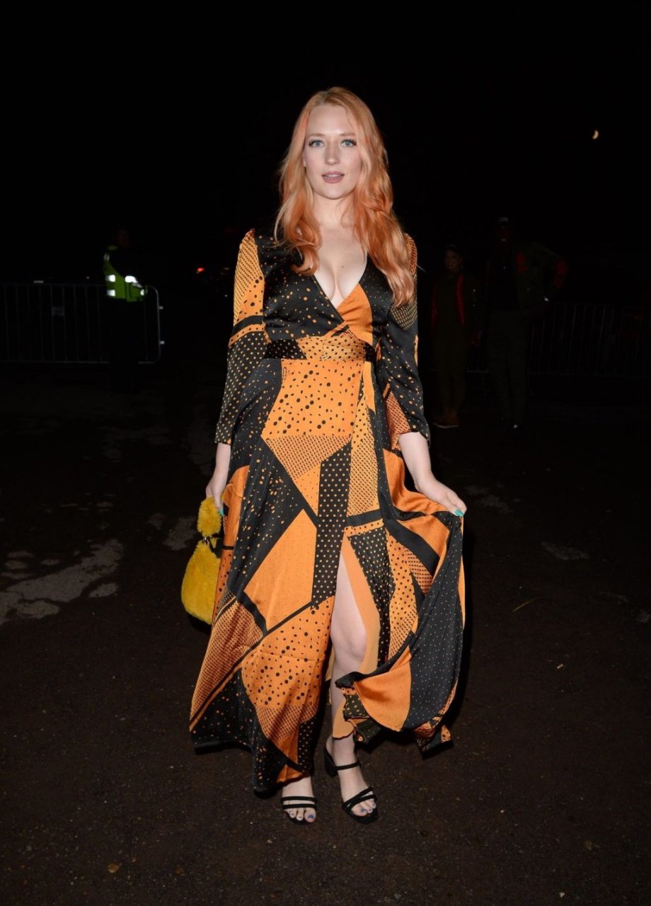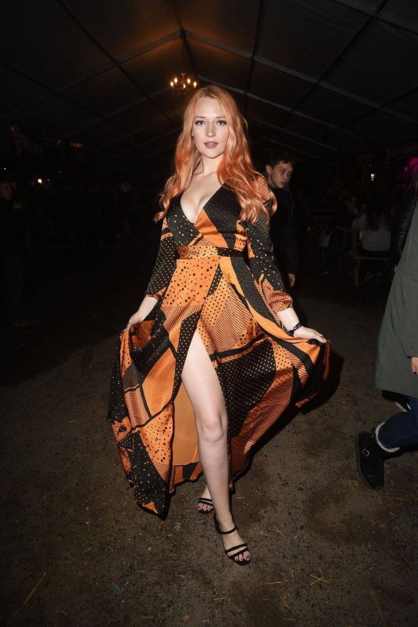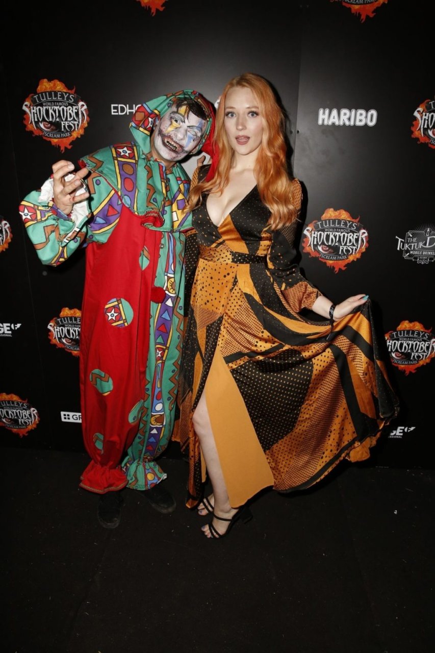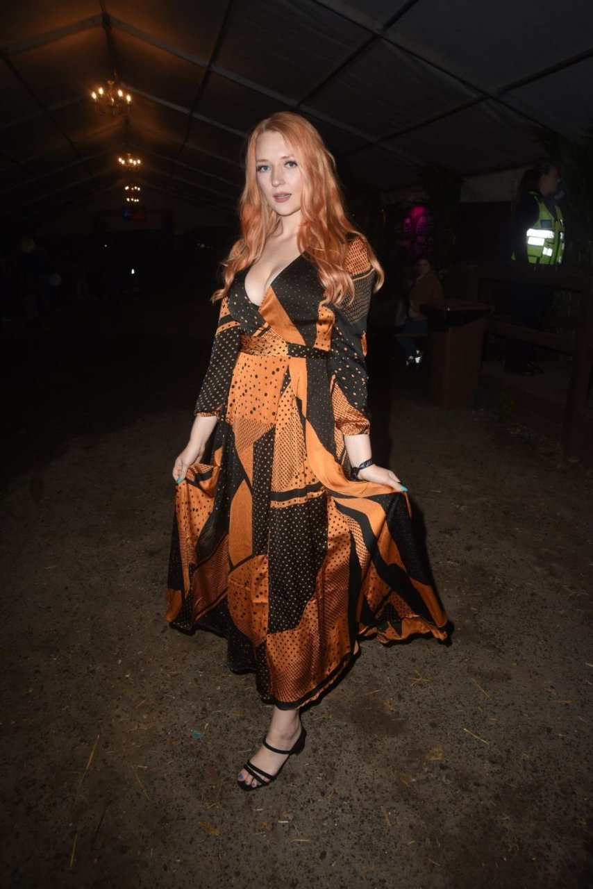 Victoria Clay fue fotografiada asistiendo al Shocktober Fest en Tulleys Farm en Crawley, 04/10/2019. La modelo británica de 23 años mostró su famoso escote y sus sexys pies, posando con un vestido naranja y negro.