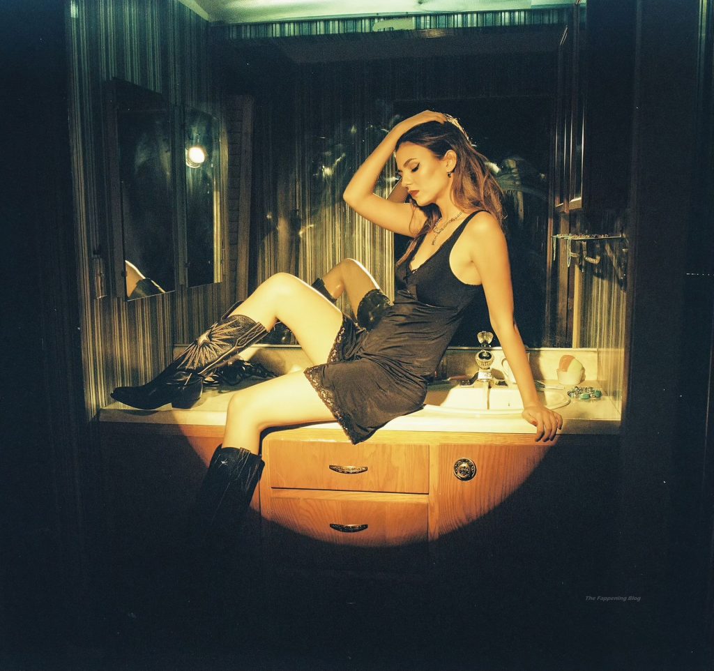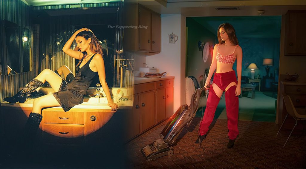 La estrella de The Fappening, actriz y cantante Victoria Justice, muestra sus piernas sexys, quedándose en casa con varios atuendos en una sesión de fotos para su nuevo sencillo “Stay” (febrero de 2021).