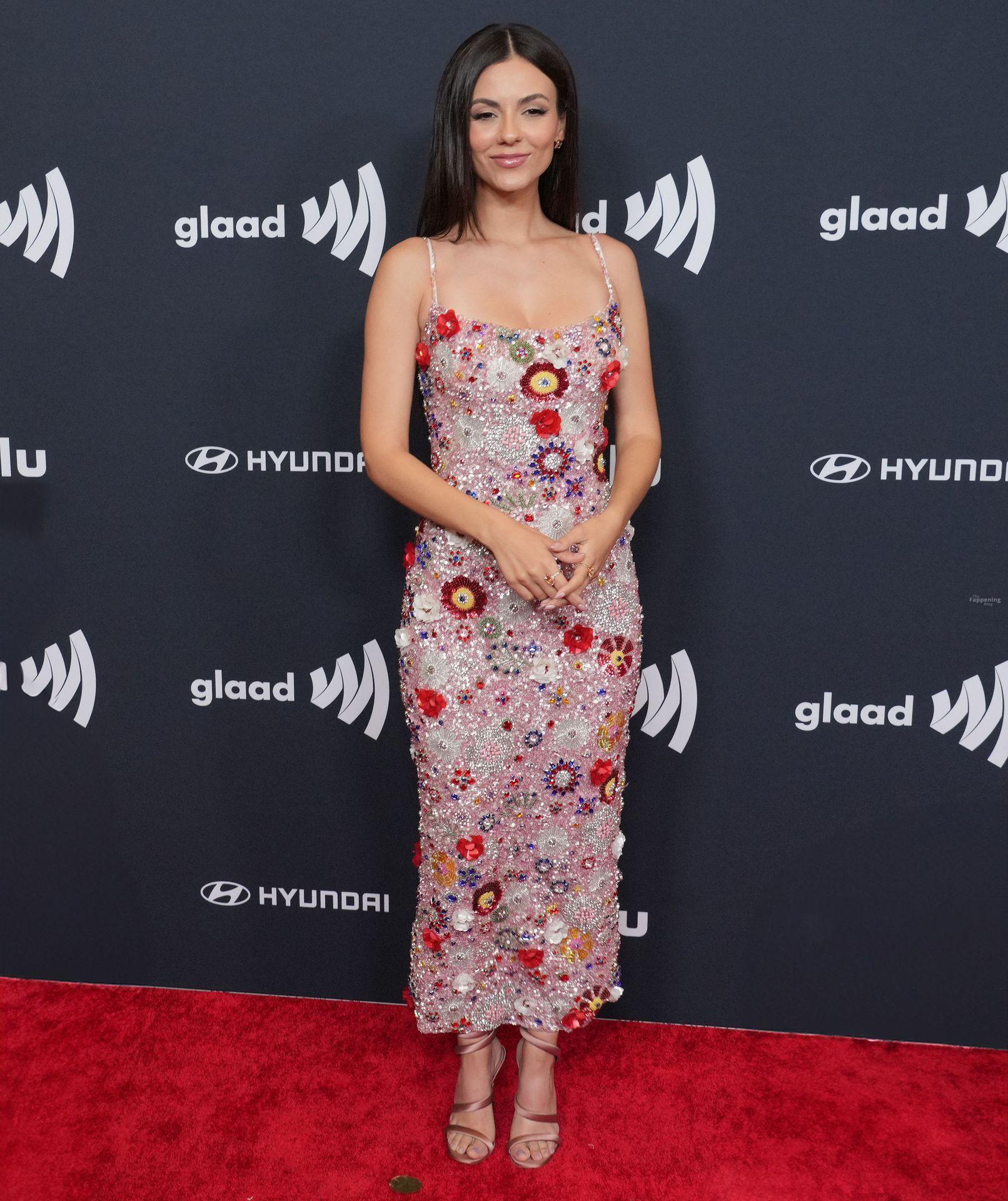 La actriz y cantante estadounidense, y estrella de The Fappening, Victoria Justice llega a la 36ª edición anual de los Premios GLAAD Media en Los Ángeles, celebrados en el Hotel Beverly Hilton en Beverly Hills, Los Ángeles.