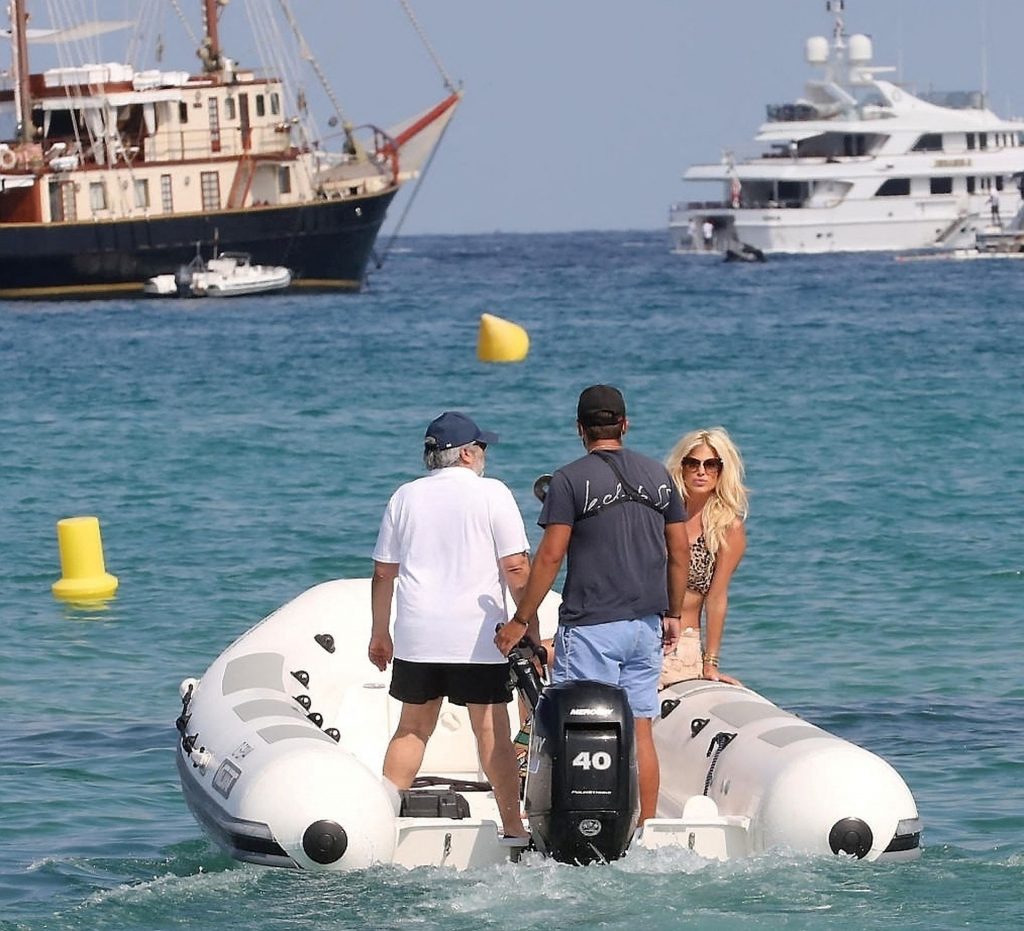 Rubia Victoria Silvstedt es vista llegando al Club 55 en St Tropez, 18/07/2020. La modelo MILF presume de sus famosos pechos con una blusa de estampado animal.