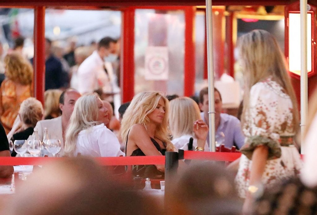 Former Playmate of the Year, 45-year old blonde bombshell and Swedish model Victoria Silvstedt enjoying a spot of lunch out with friends at the “Sénéquier” restaurant in St Tropez.