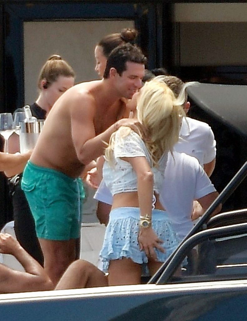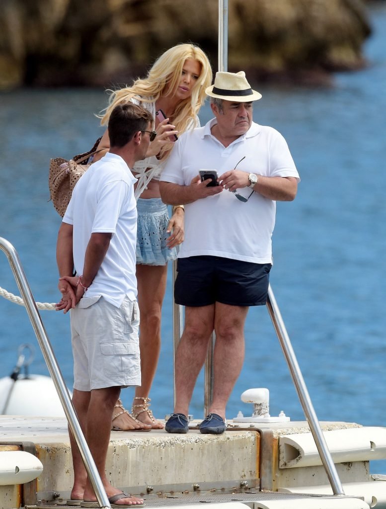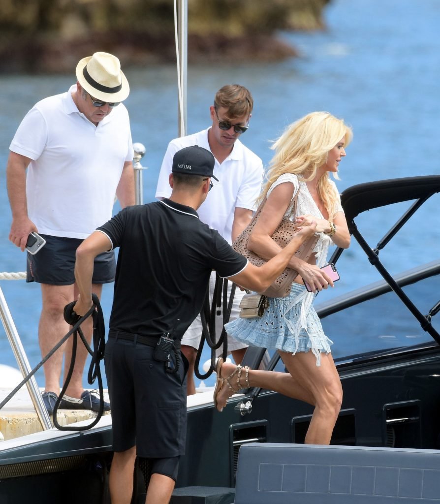 Victoria Silvstedt fue vista disfrutando un día con amigos y su novio Maurice Dabbah en un yate de lujo en el sur de Francia, 15/06/2018. La modelo de 43 años mostró sus bragas blancas a los paparazzi.