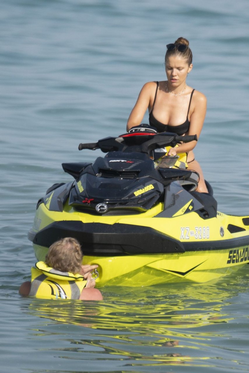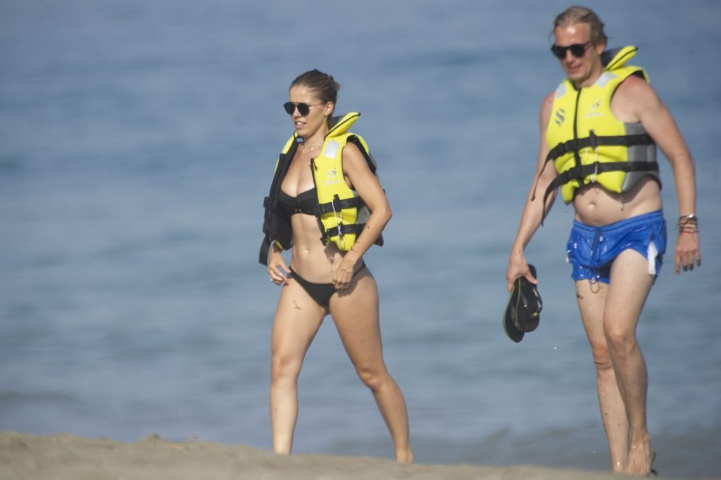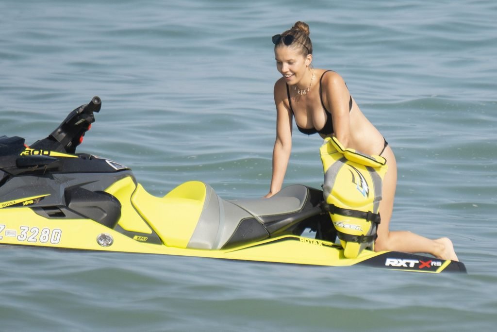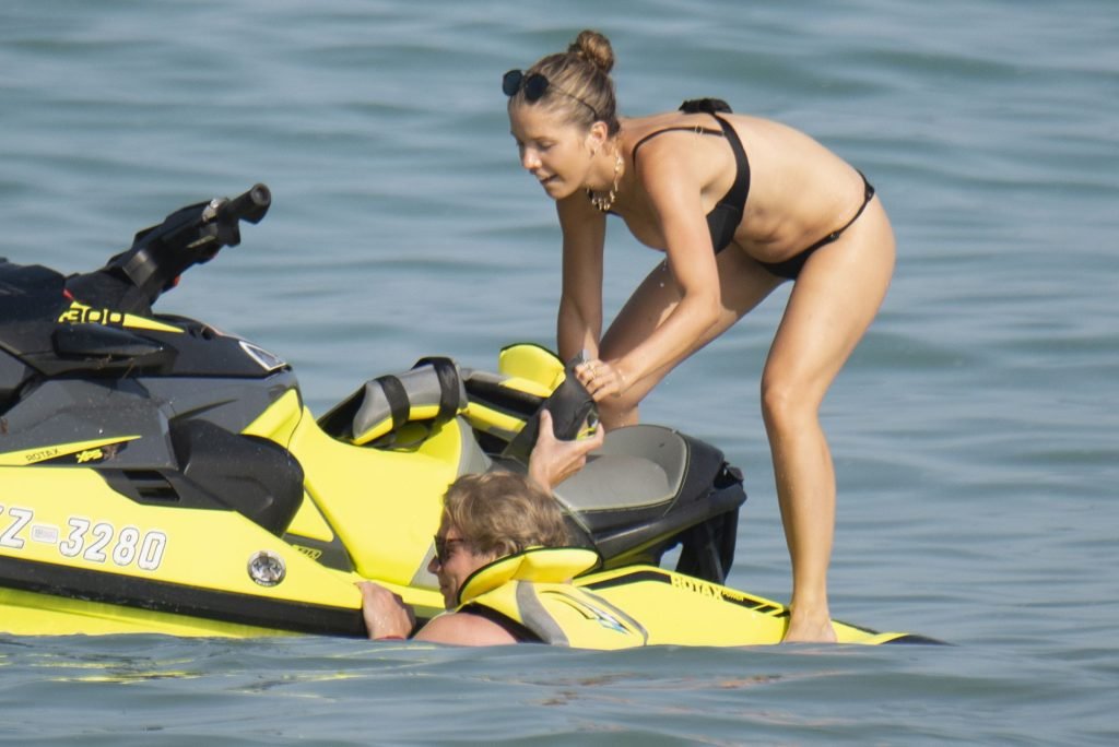 Victoria Swarovski lleva un sexy bikini negro mientras vacaciona en Marbella con su esposo Werner Muerz, 23/07/2019. La pareja disfrutó de una tarde romántica junto al mar y un paseo en moto acuática.