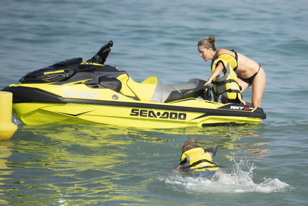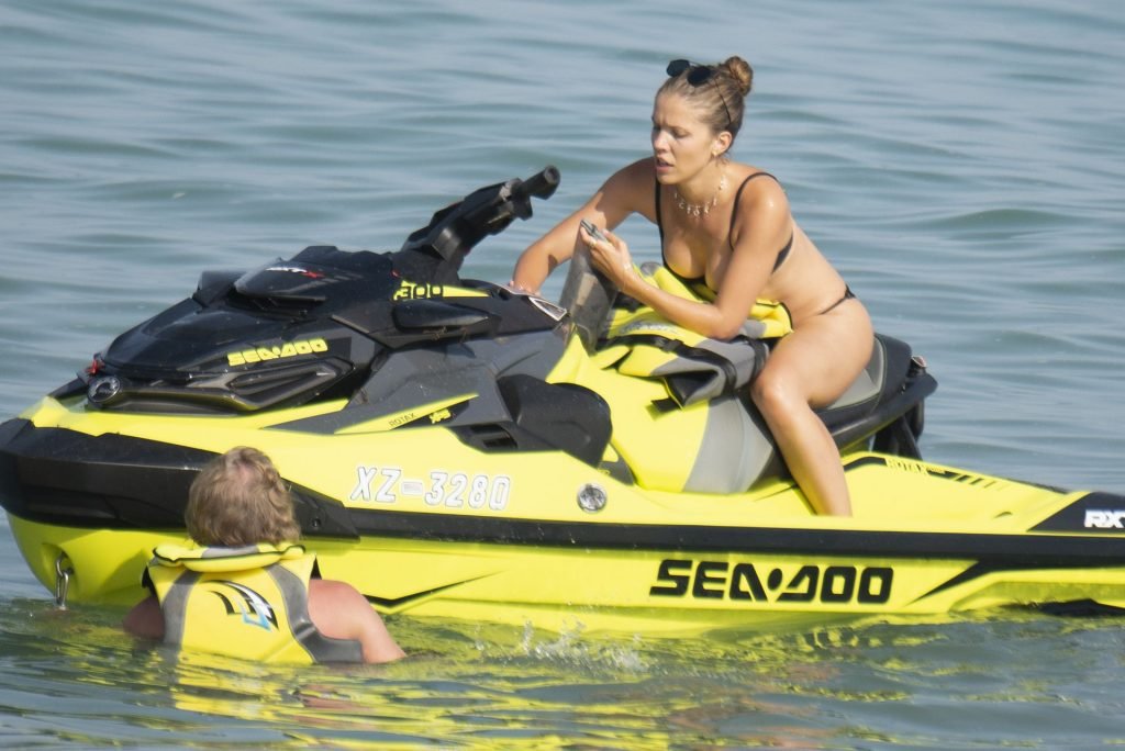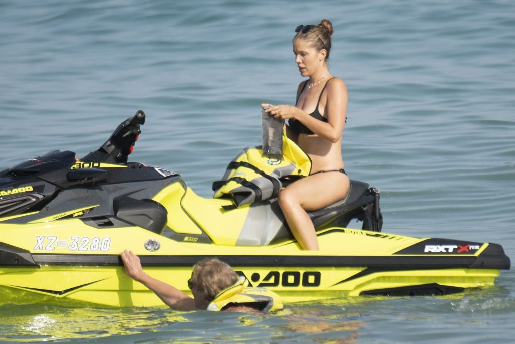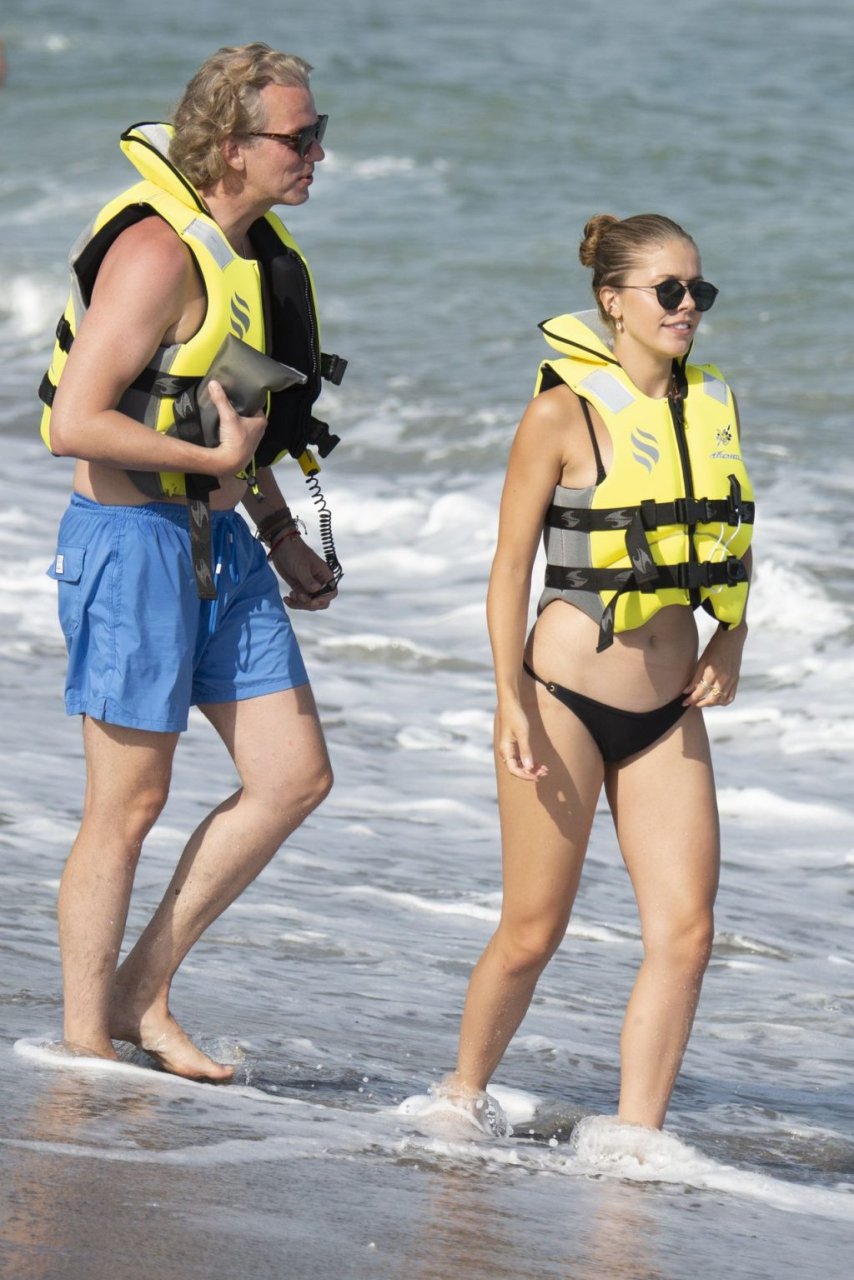 Victoria Swarovski lleva un sexy bikini negro mientras vacaciona en Marbella con su esposo Werner Muerz, 23/07/2019. La pareja disfrutó de una tarde romántica junto al mar y un paseo en moto acuática.