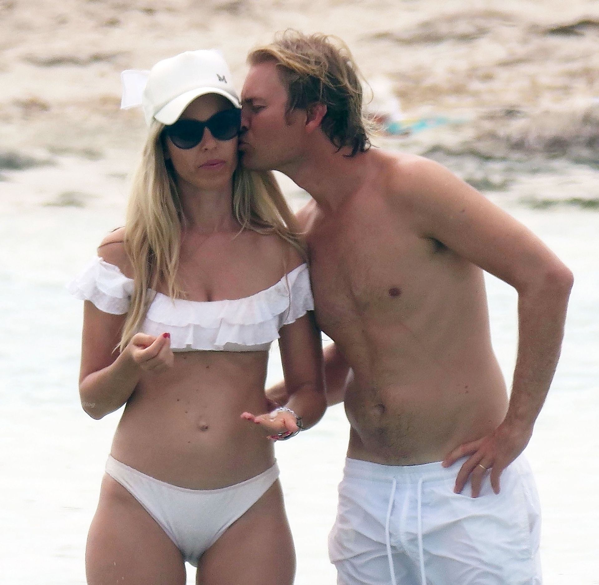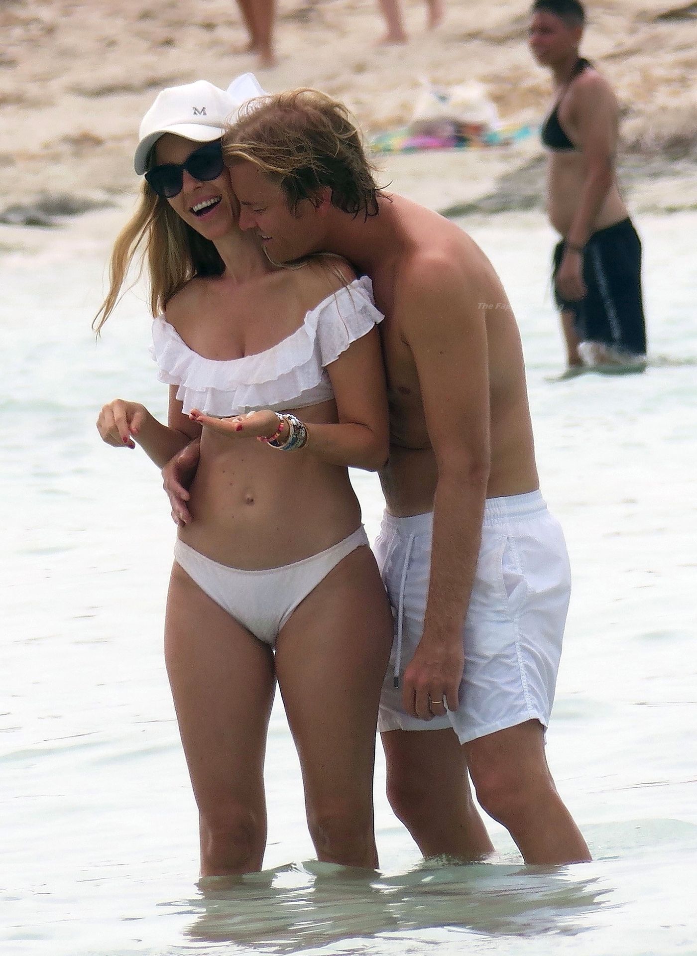 Nico se quedó sin camiseta mientras se daba un baño en el mar con Vivian, quien llevaba su escaso bikini blanco, mientras la pareja enamorada mostraba algo de afecto público durante su descanso soleado en España.