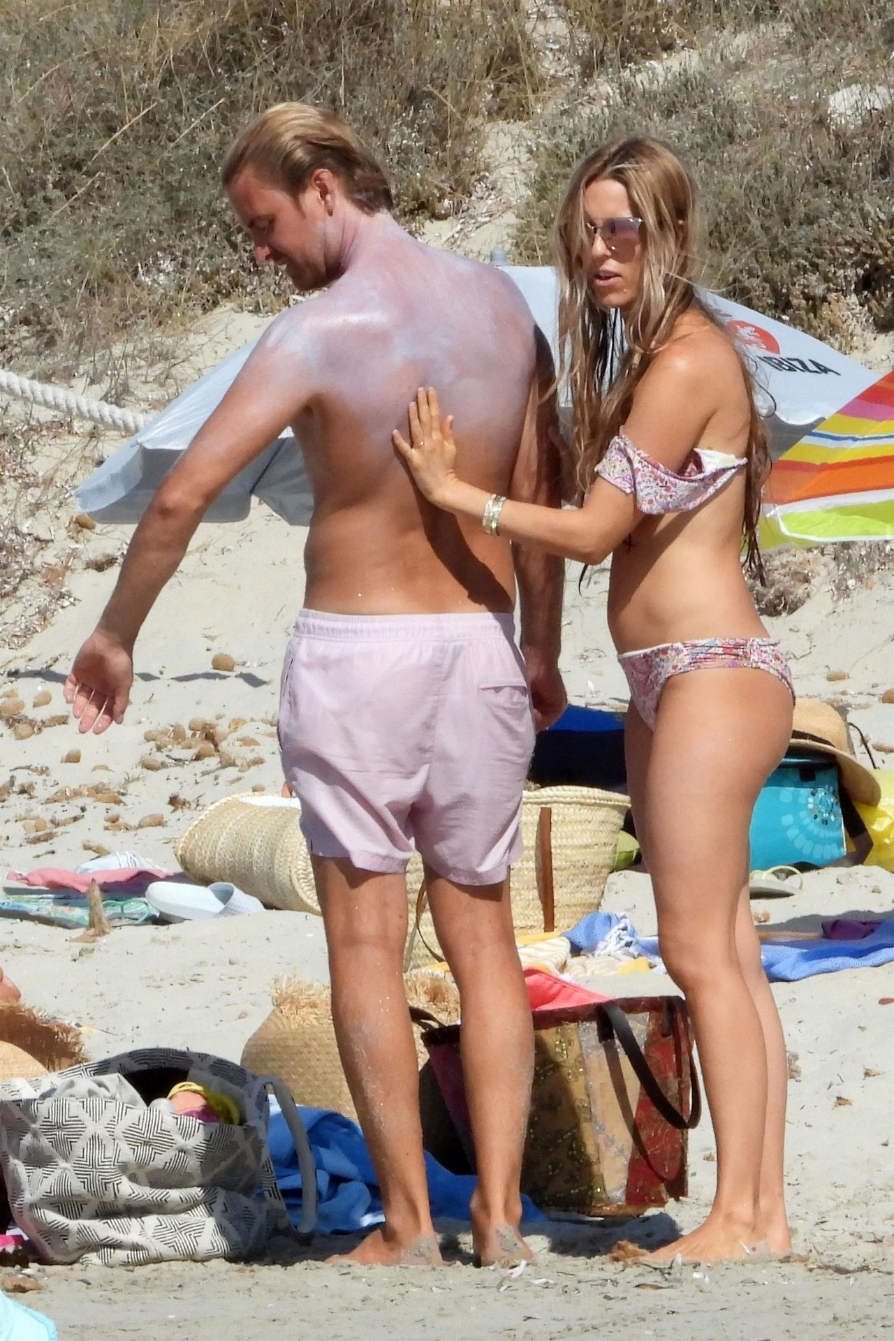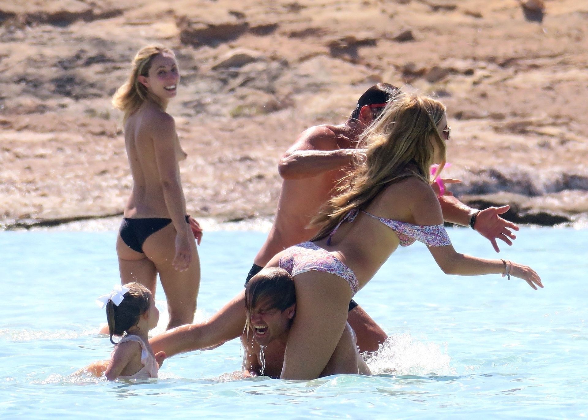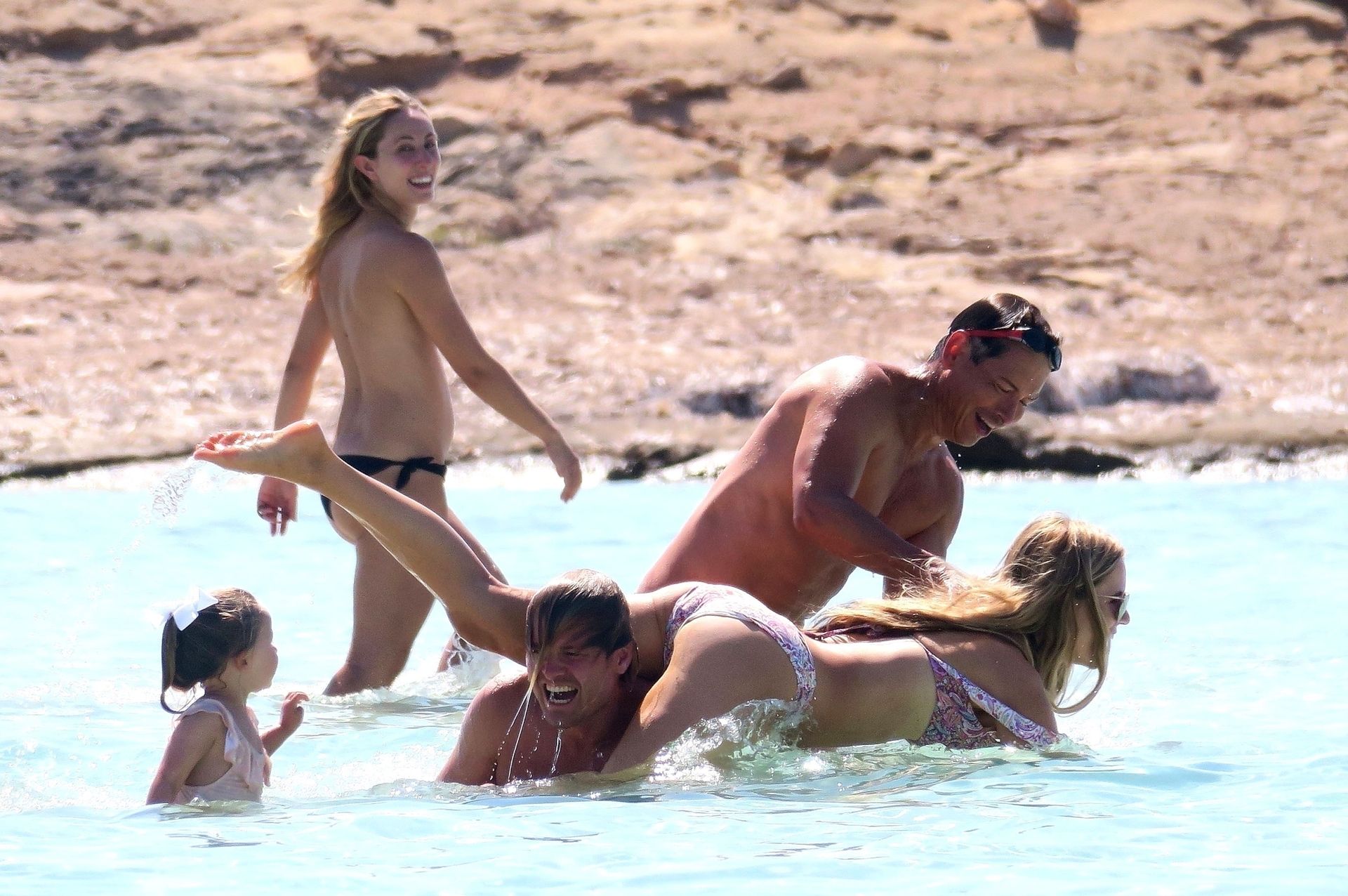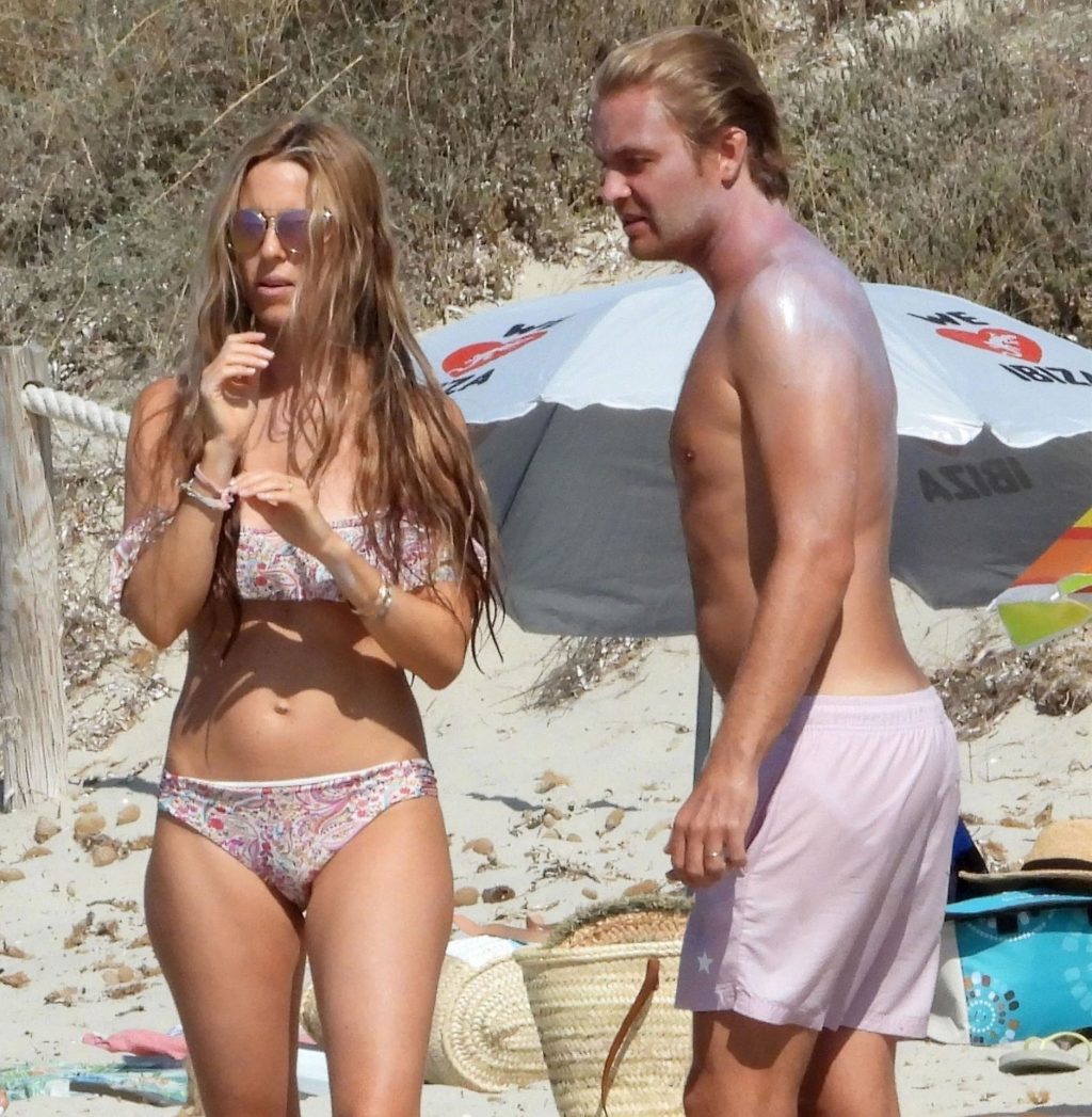 Con el sol español caliente brillando sobre Rosberg, Nico parece feliz y relajado con su sexy esposa Vivian luciendo espectacular con su pequeño bikini floral mientras la pareja se bronceaba y se divertía en el mar con los niños y algunos amigos.