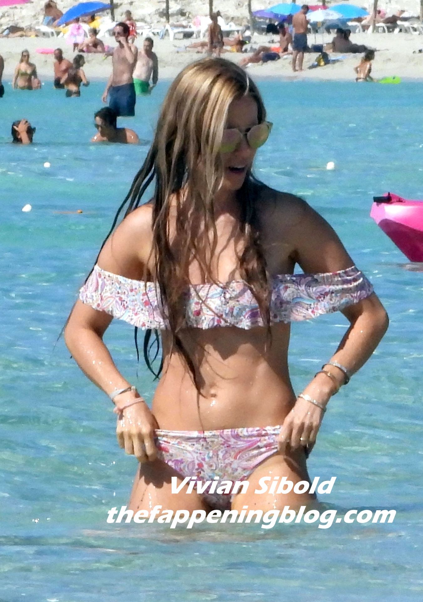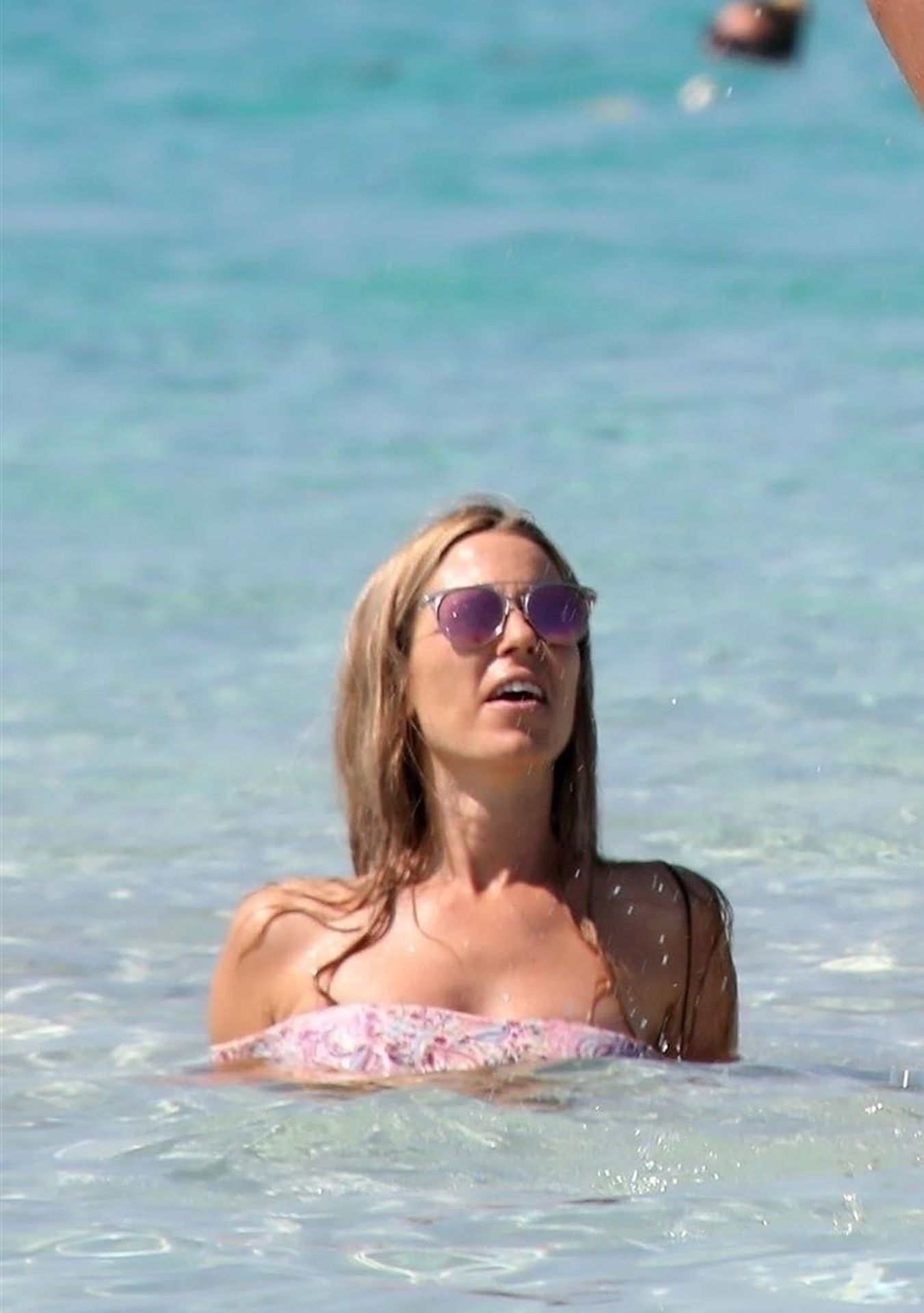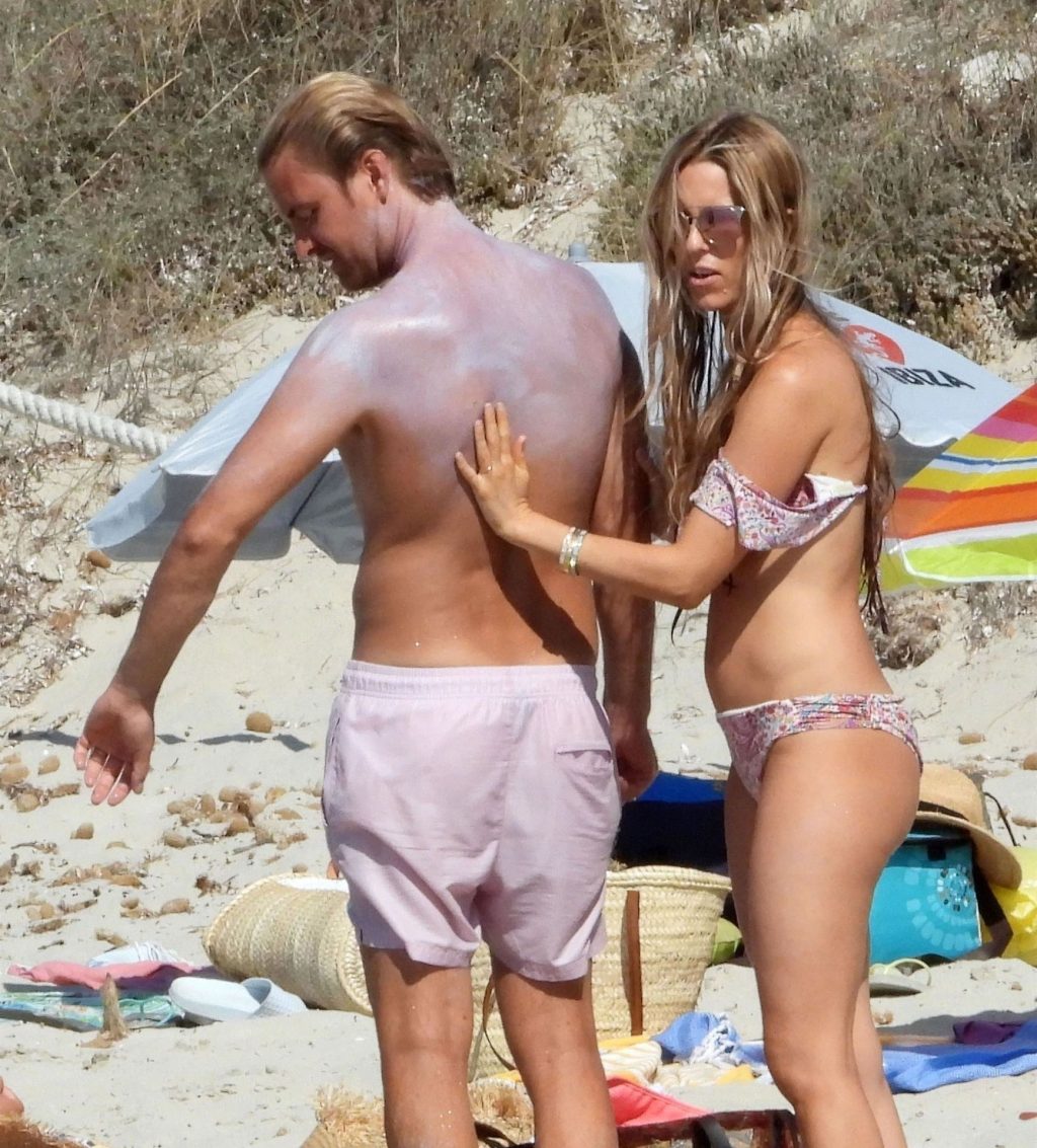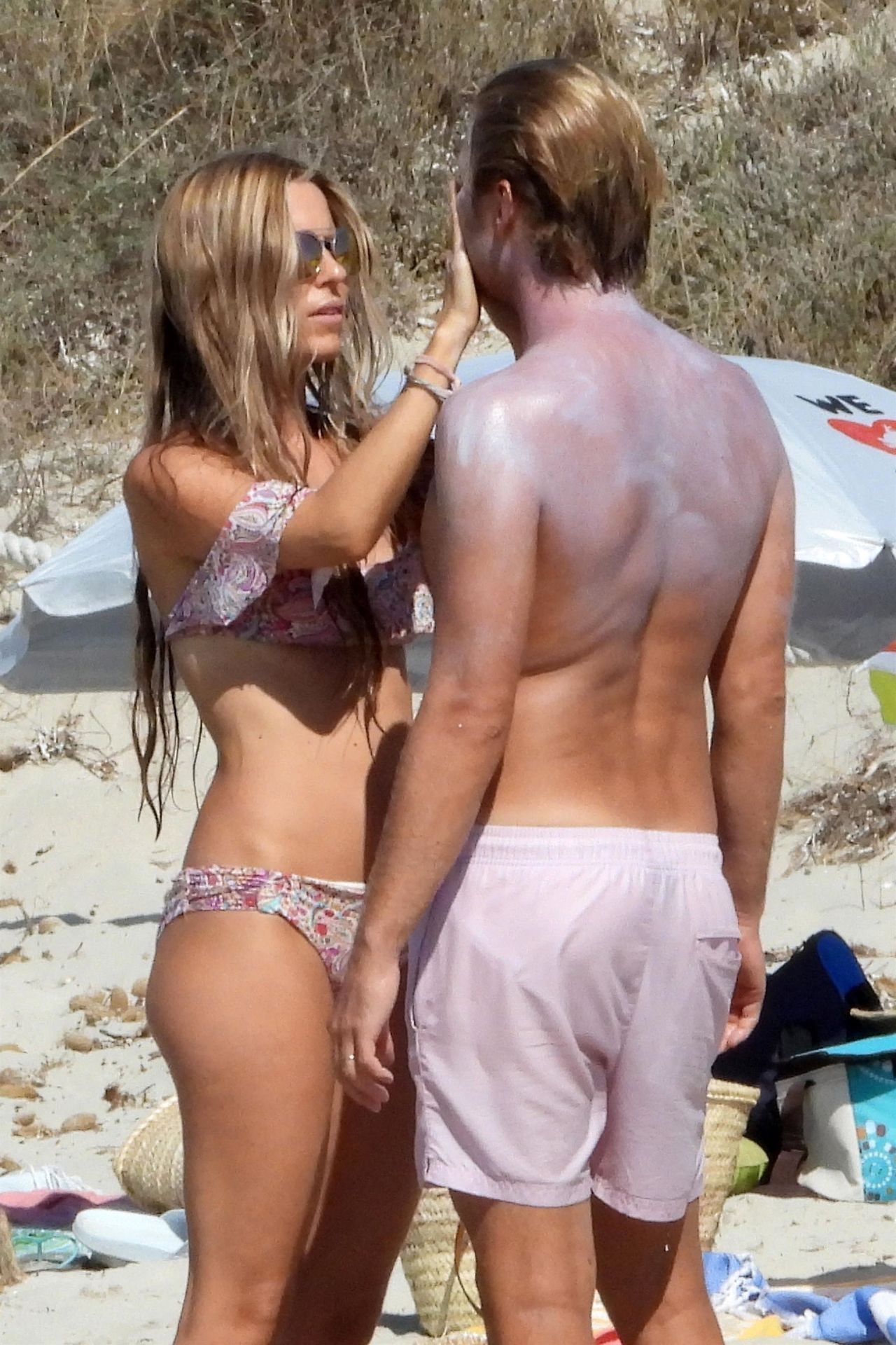 Con el sol español caliente brillando sobre Rosberg, Nico parece feliz y relajado con su sexy esposa Vivian luciendo espectacular con su pequeño bikini floral mientras la pareja se bronceaba y se divertía en el mar con los niños y algunos amigos.
