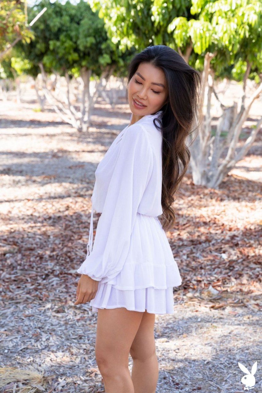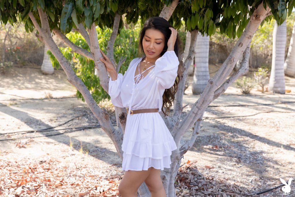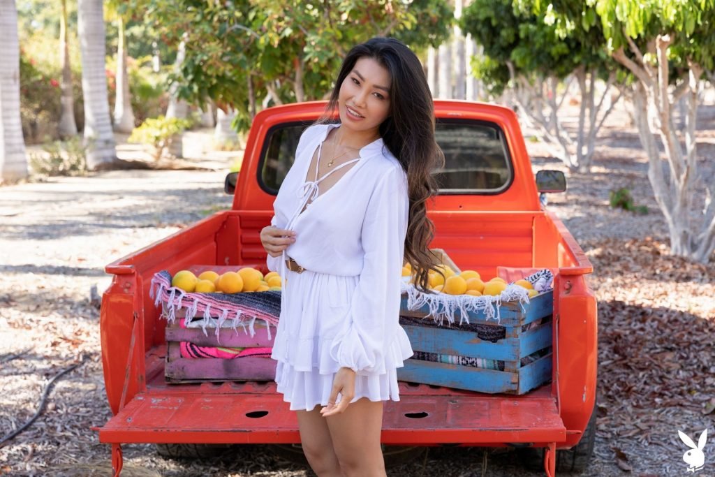 Asian brunette Viviane Leigh se desnuda en una nueva sesión de fotos llamada “Freshly Squeezed” para Playboy Plus (2019). La modelo decidió desnudarse frente a la camioneta pickup naranja. ¡Muchos aficionados comprarían un par de kilos de fruta de esta chica!
