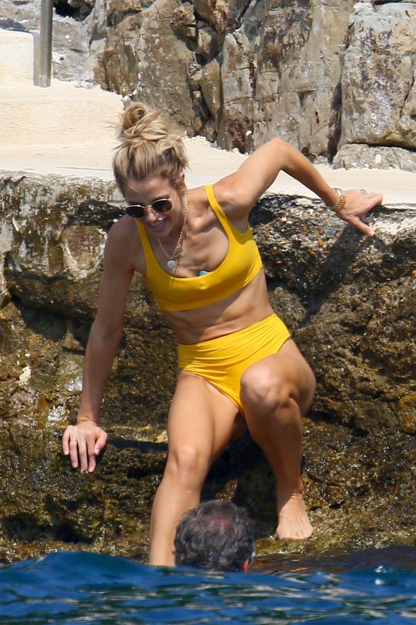 Vogue Williams luce impresionante con un bikini amarillo mientras pasa sus vacaciones en el sur de Francia con su familiaб 24/08/2019.