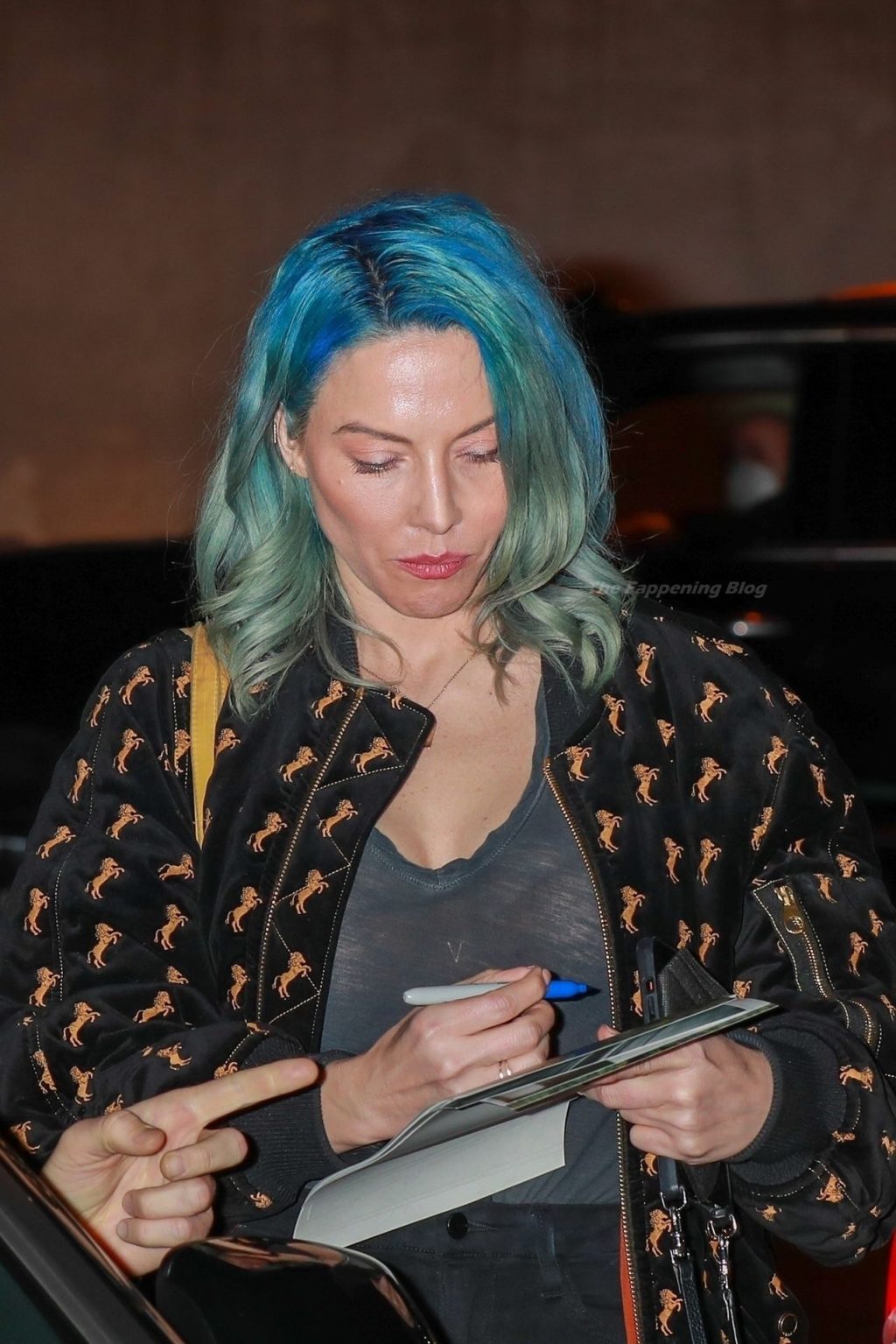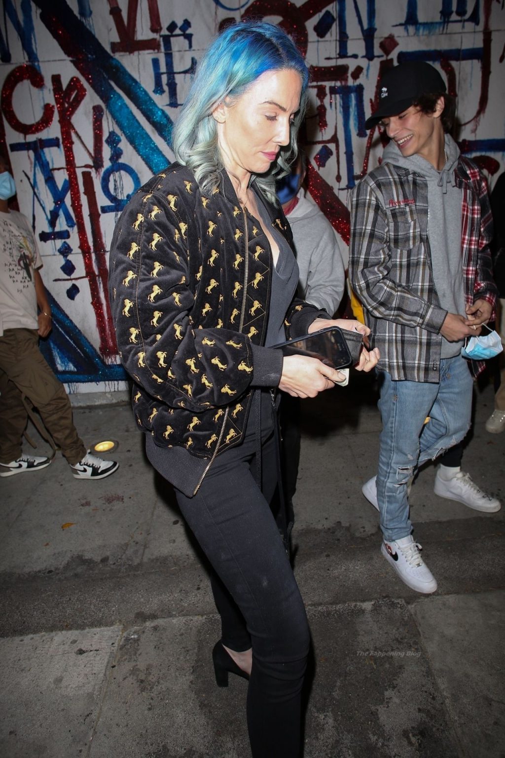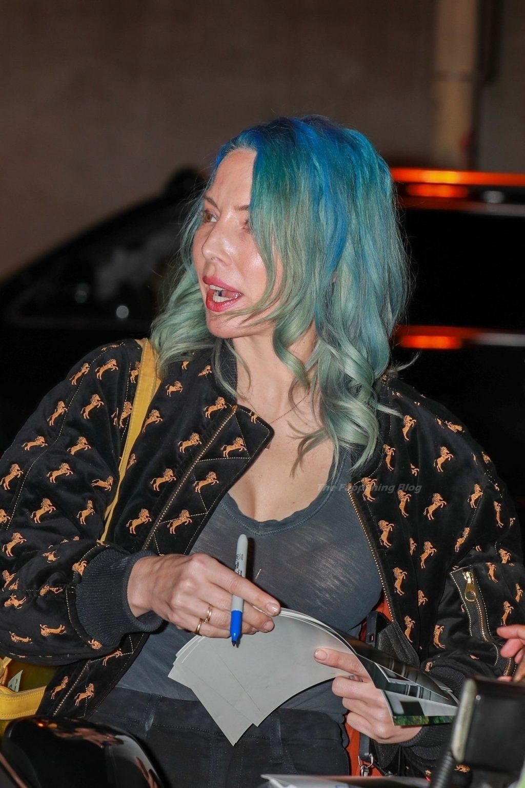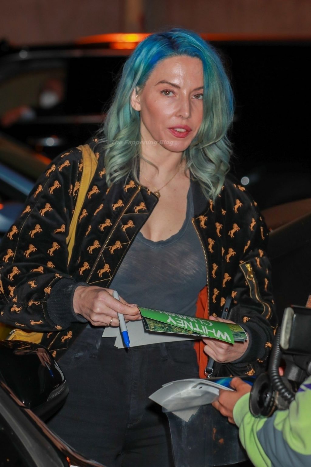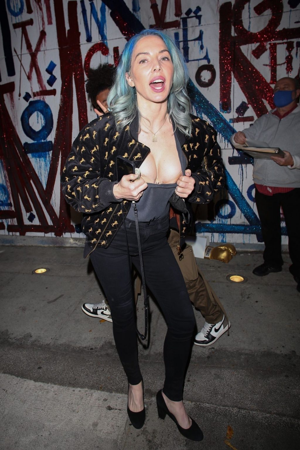 La actriz y comediante estadounidense Whitney Cummings juega con los fotógrafos, mostrando su escote y pezón, después de que ella, Griffin Johnson y Josh Richards cenaran juntos en Craig’s en West Hollywood, 04/06/2021.