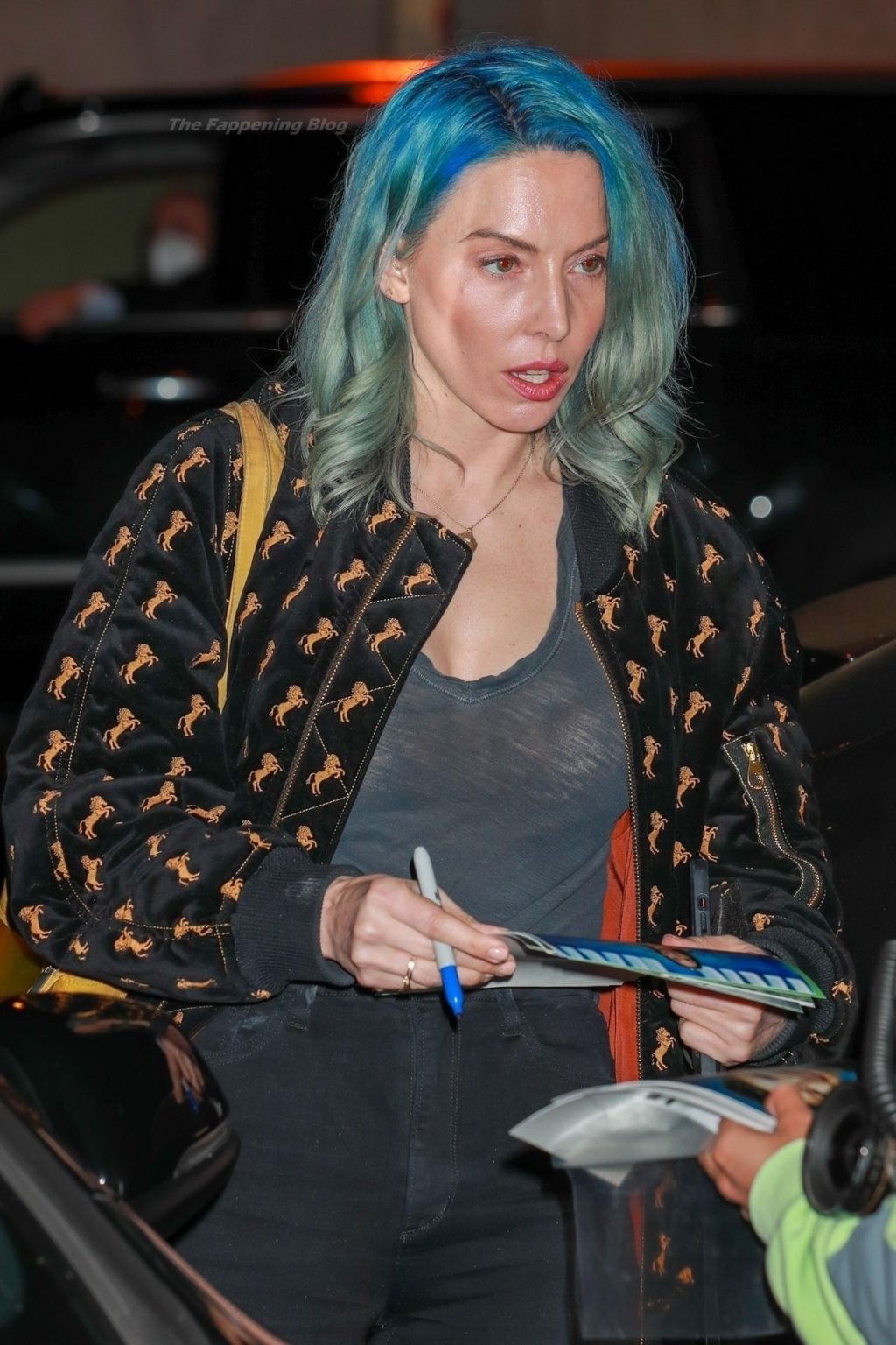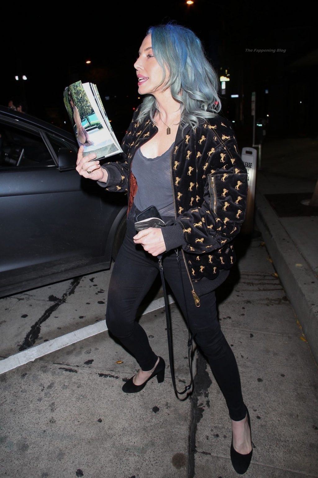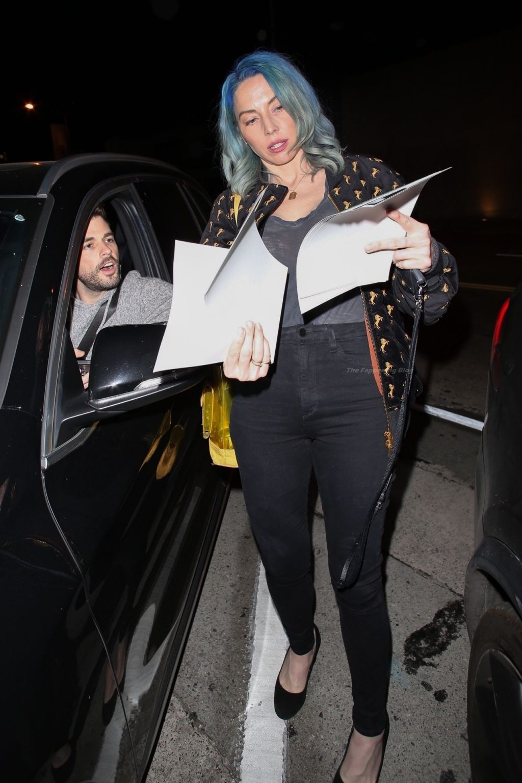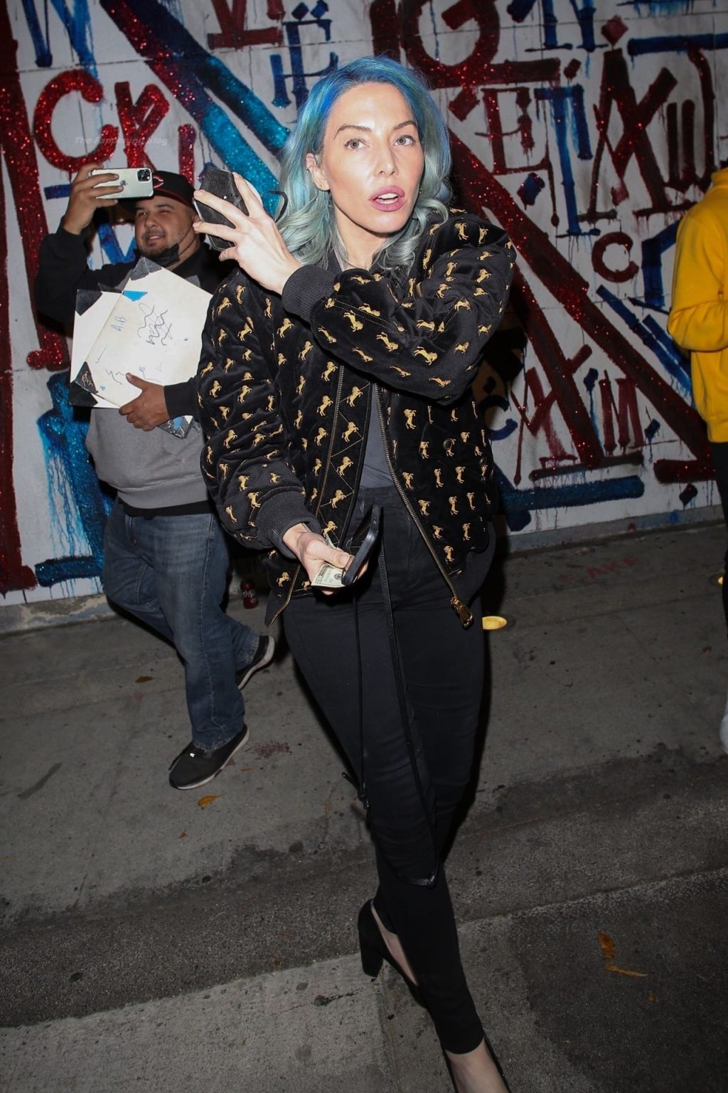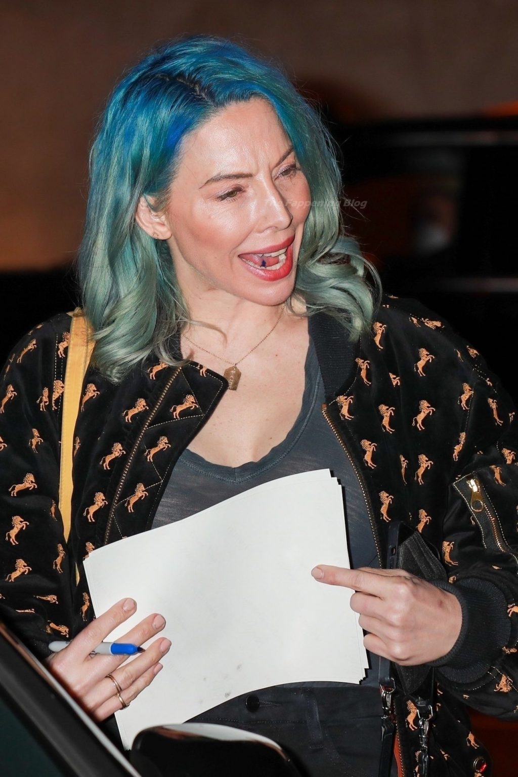 La actriz y comediante estadounidense Whitney Cummings juega con los fotógrafos, mostrando su escote y pezón, después de que ella, Griffin Johnson y Josh Richards cenaran juntos en Craig’s en West Hollywood, 04/06/2021.