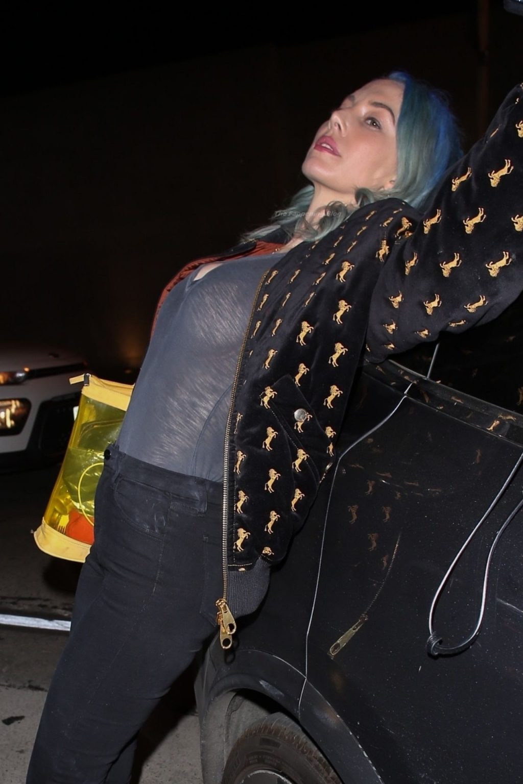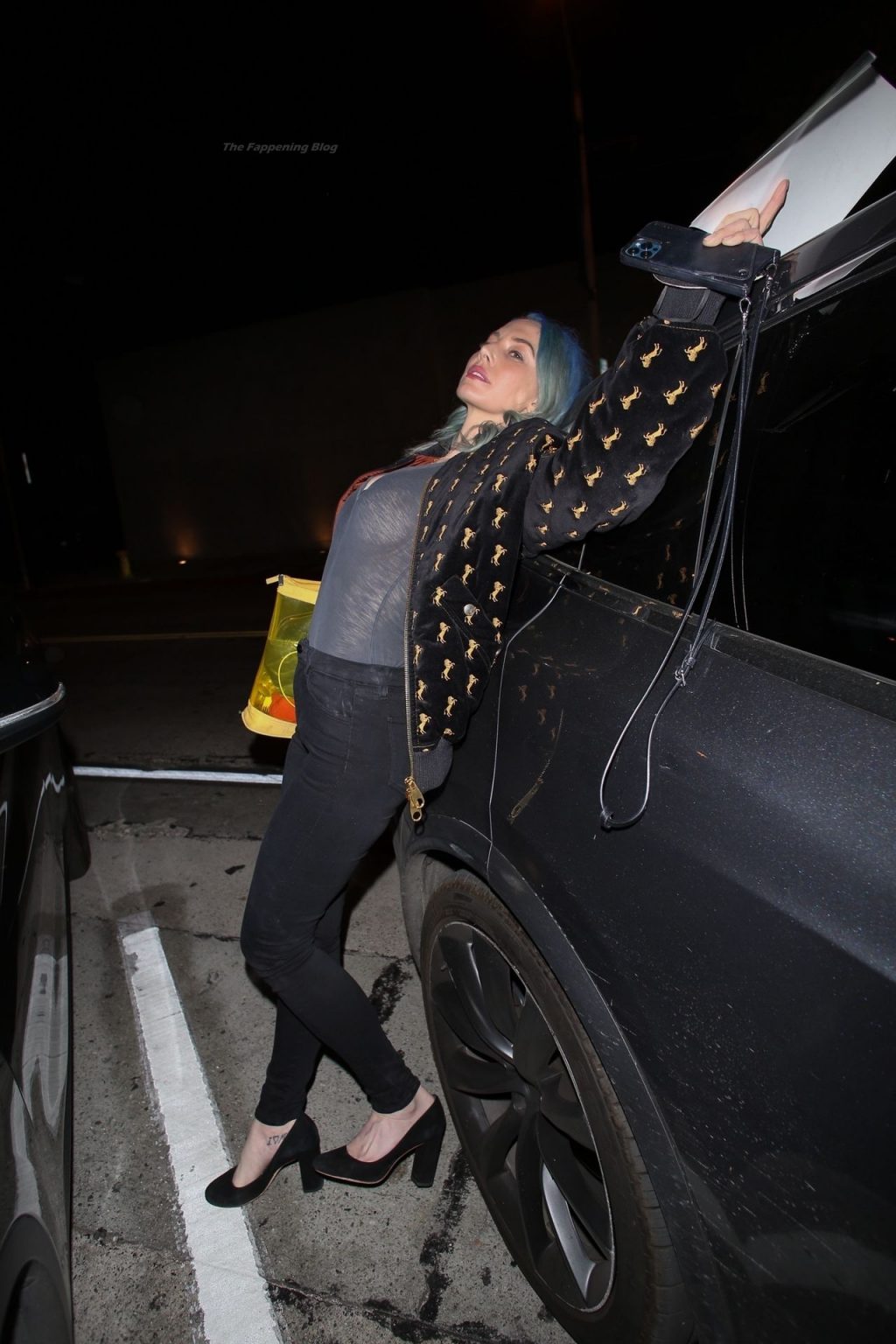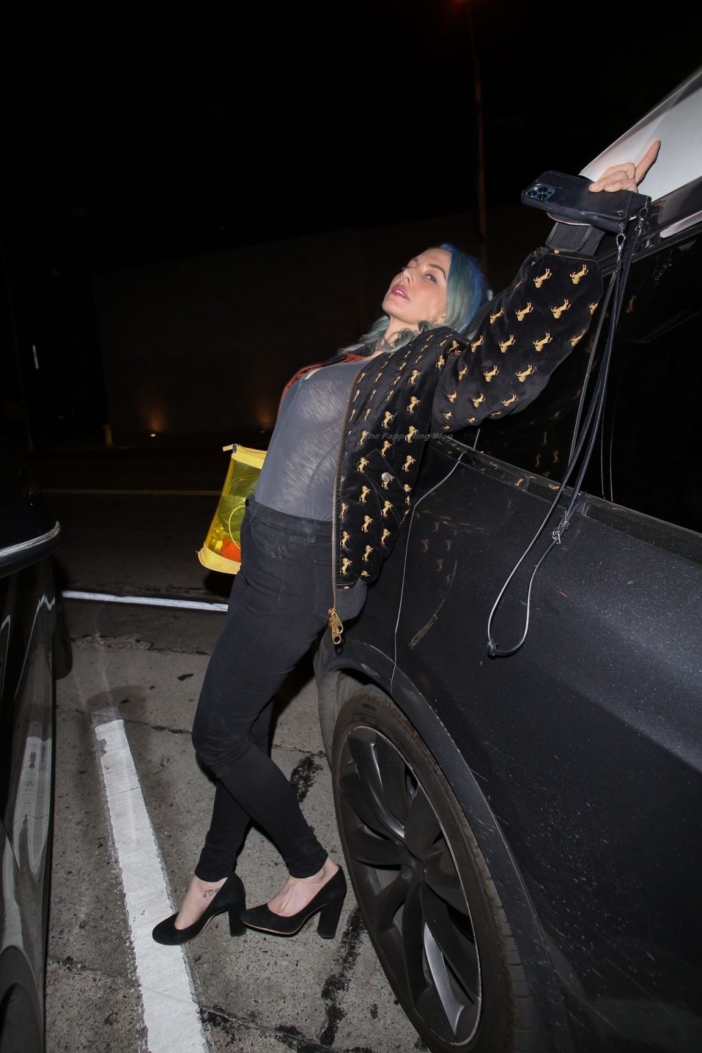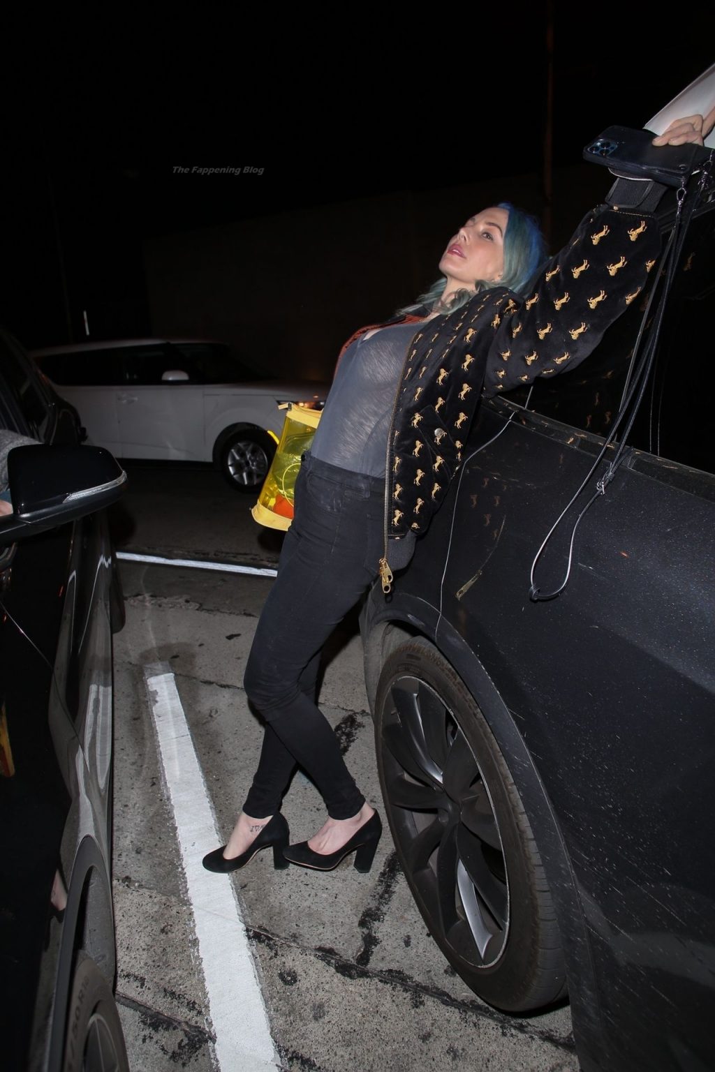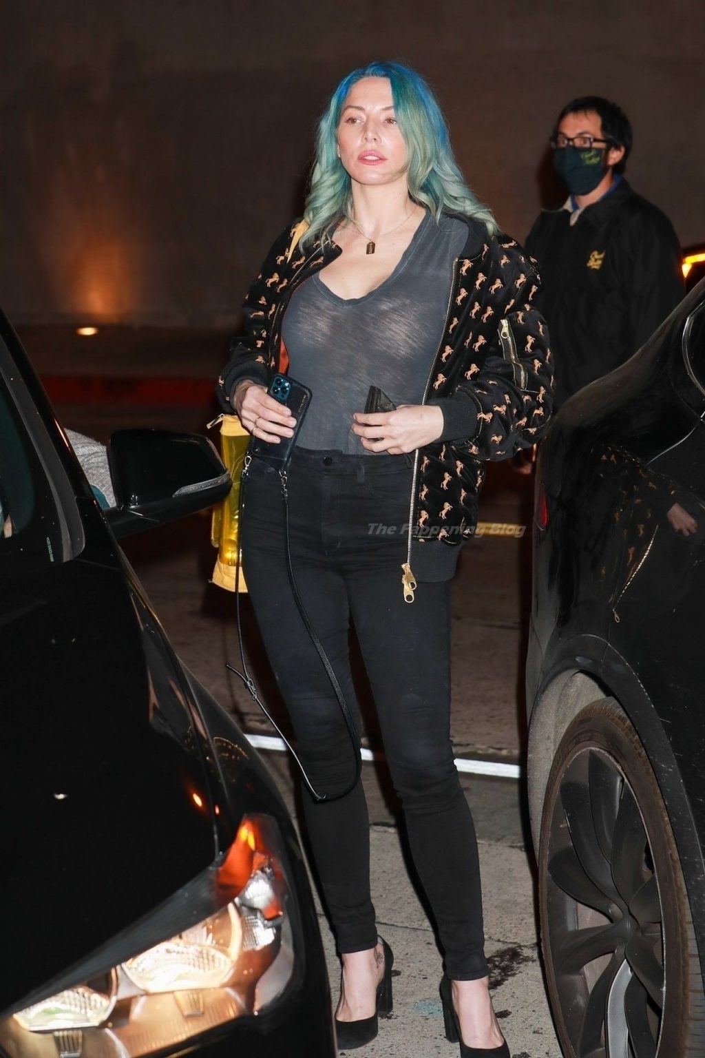 La actriz y comediante estadounidense Whitney Cummings juega con los fotógrafos, mostrando su escote y pezón, después de que ella, Griffin Johnson y Josh Richards cenaran juntos en Craig’s en West Hollywood, 04/06/2021.