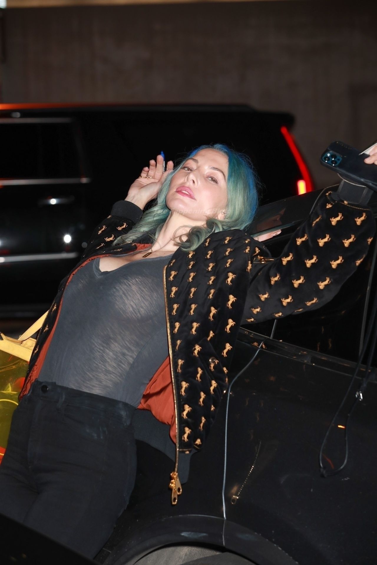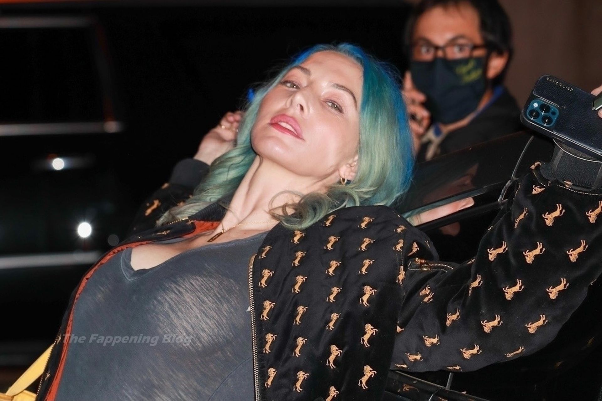 La actriz y comediante estadounidense Whitney Cummings juega con los fotógrafos, mostrando su escote y pezón, después de que ella, Griffin Johnson y Josh Richards cenaran juntos en Craig’s en West Hollywood, 04/06/2021.