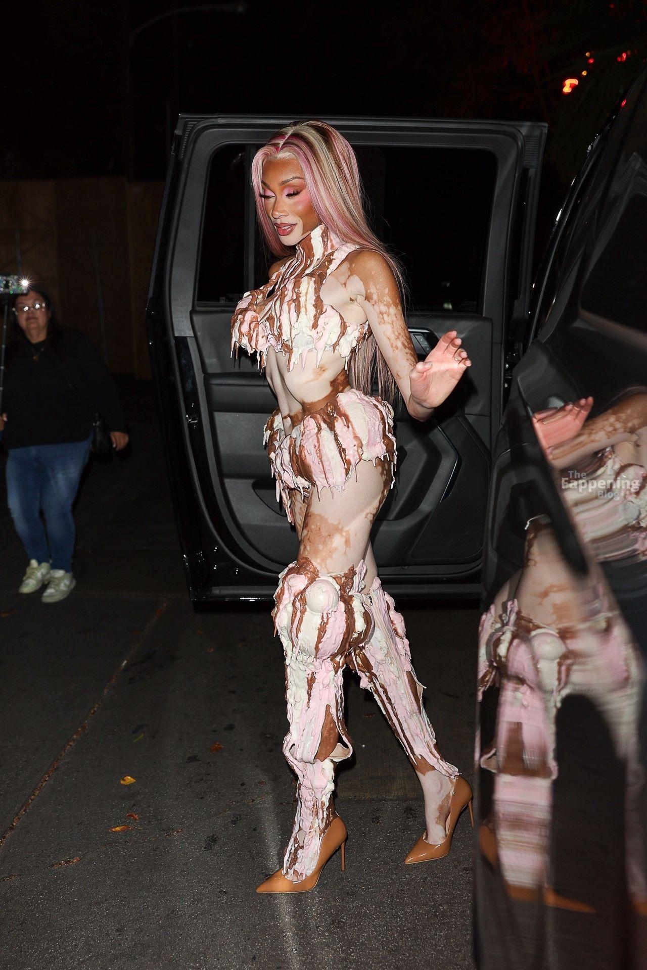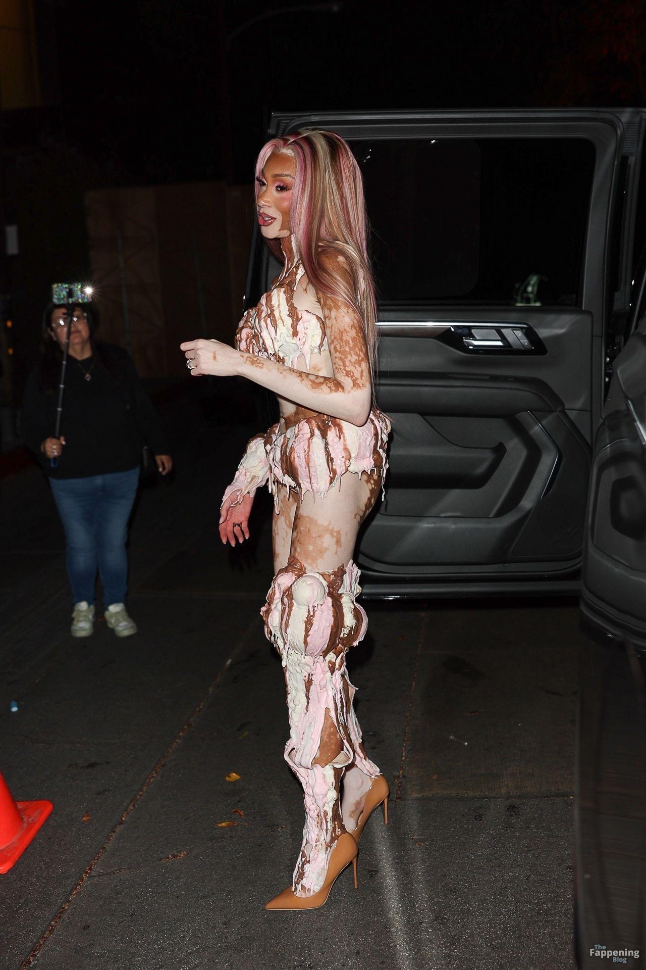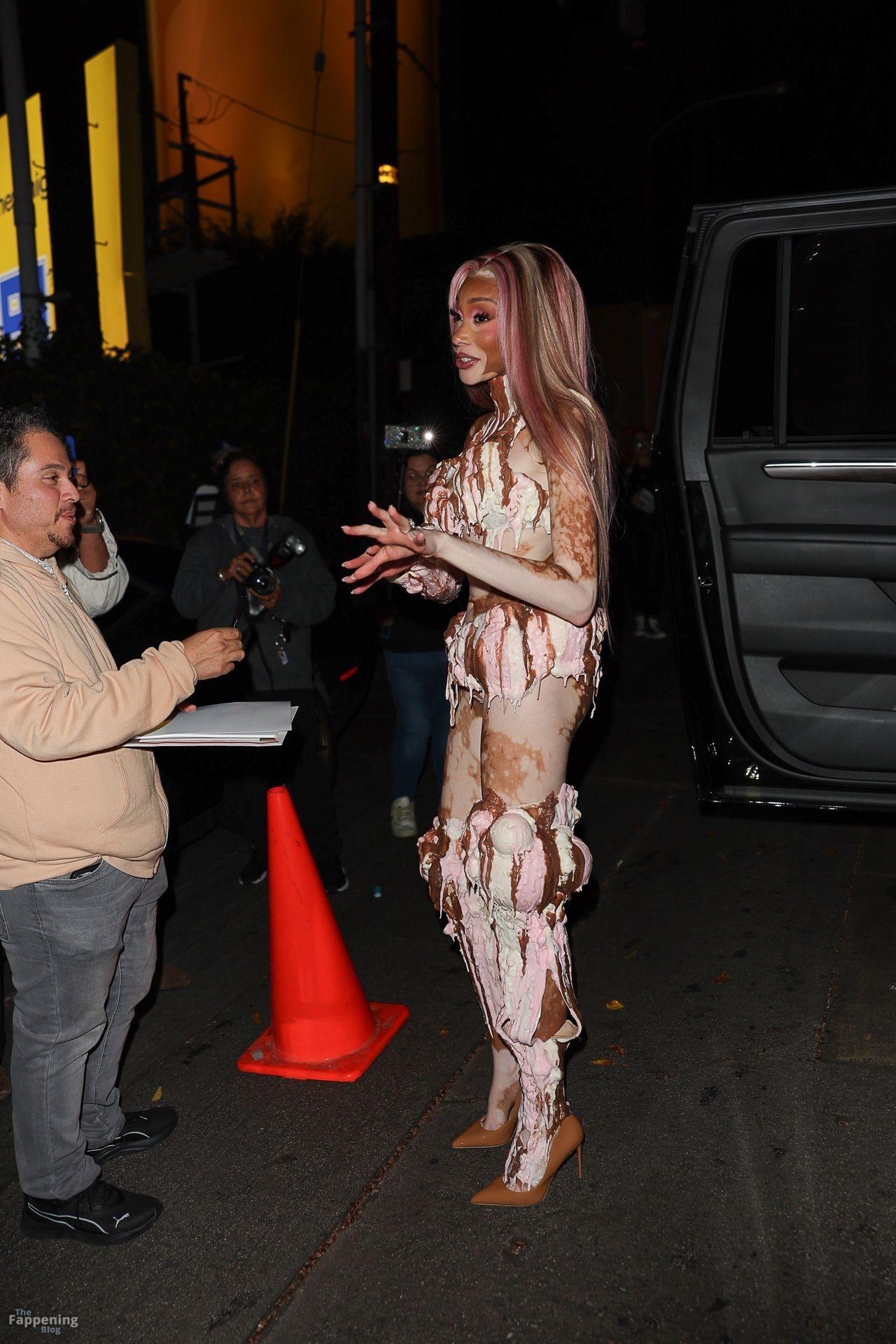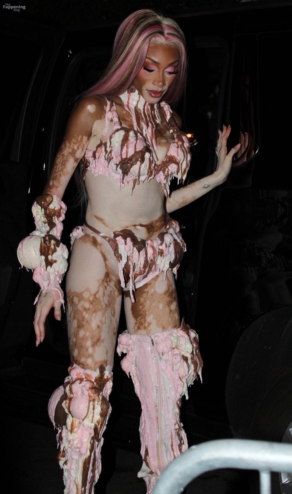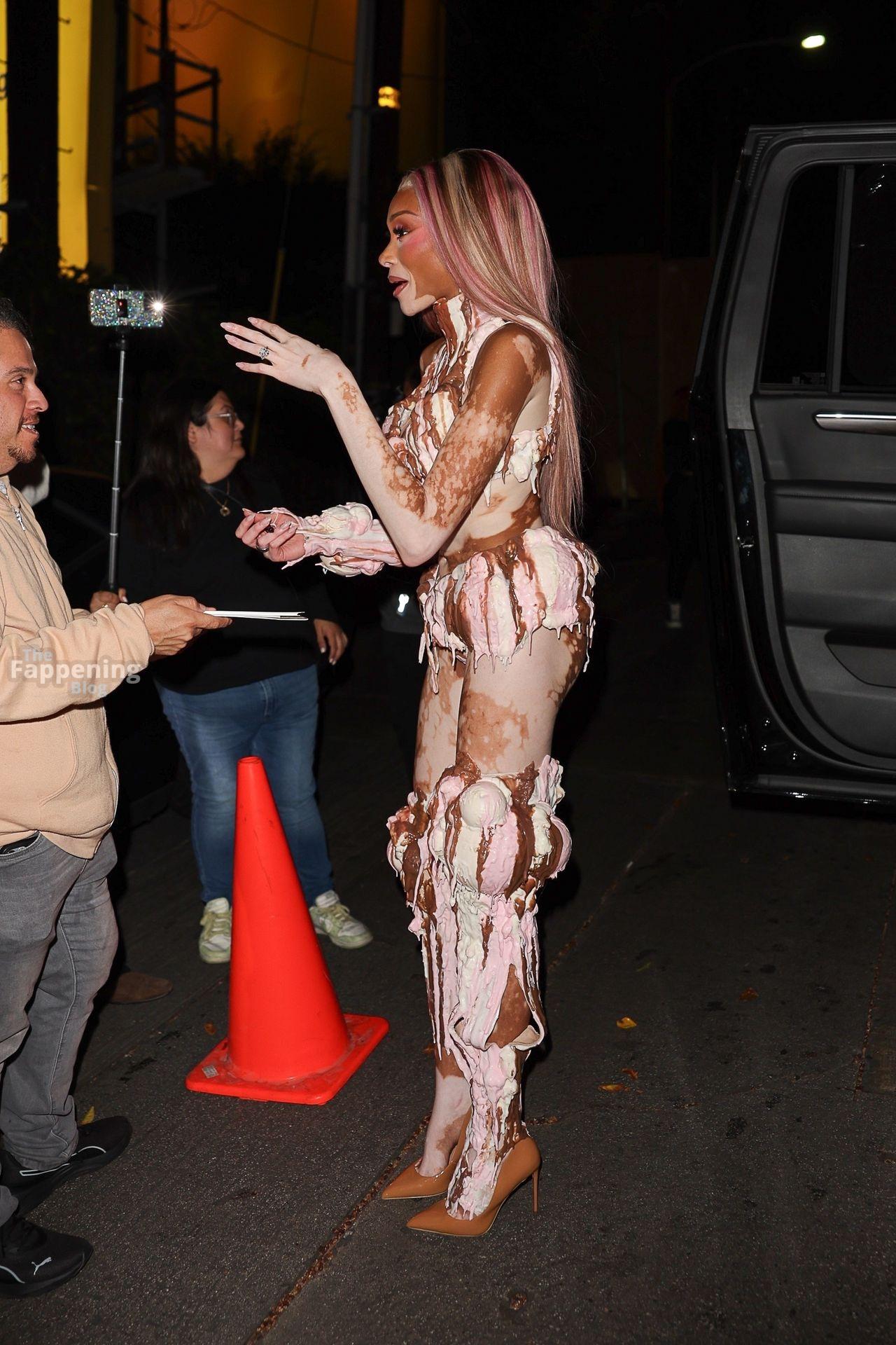 La modelo Winnie Harlow apareció en la gran fiesta de Halloween de Vas J Morgan en LA. Mira su atuendo de helado en las fotos de los paparazzi a continuación.