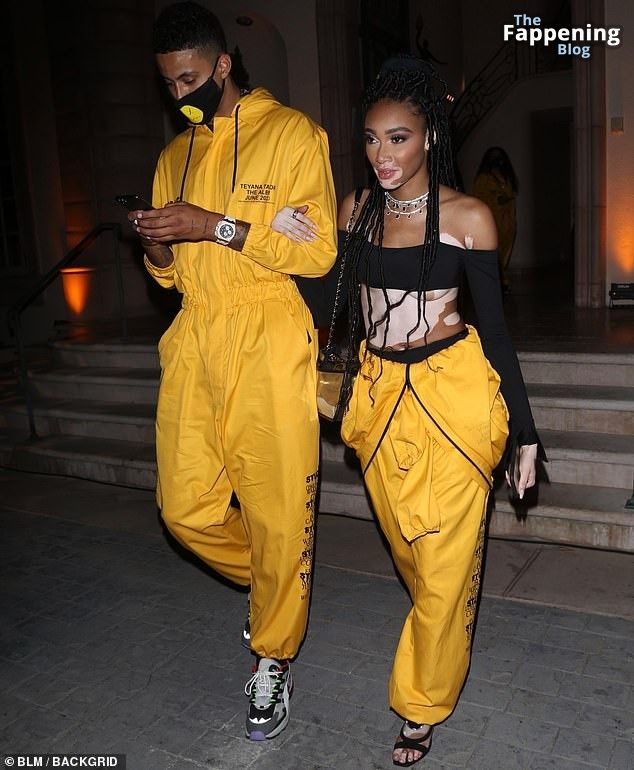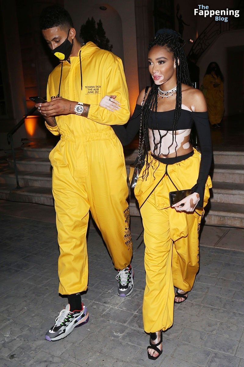 La modelo Winnie Harlow y el jugador de baloncesto Kyle Kuzma asistieron juntos a una fiesta para celebrar el lanzamiento del álbum “The Album” de Teyana Taylor. Estaban vestidos con merchandising temático creado específicamente para el estreno: monos amarillos de protección química con inscripciones geniales en las mangas y las piernas.
