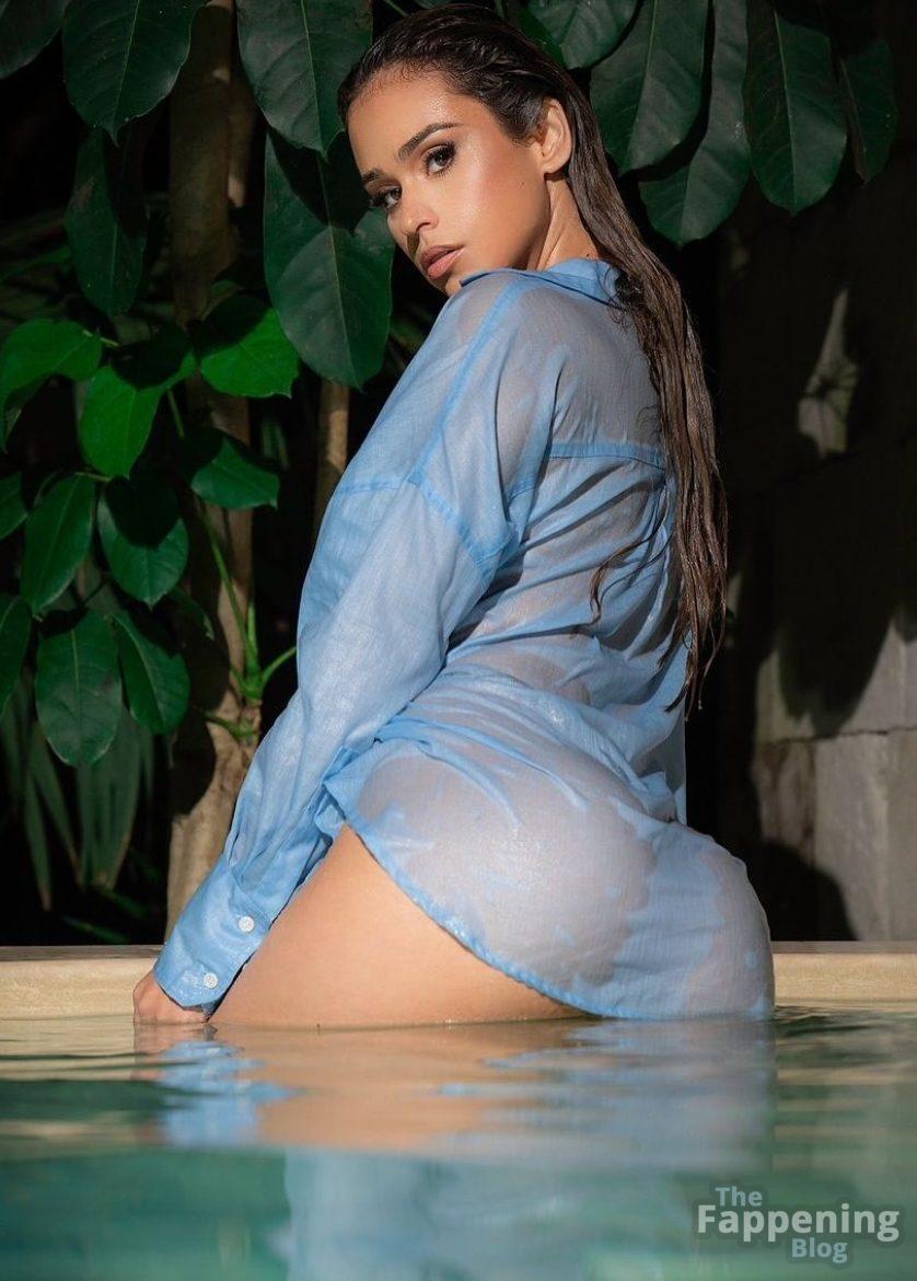 Yanet García se desnuda en una piscina, mostrando escote y trasero con una camisa mojada y transparente