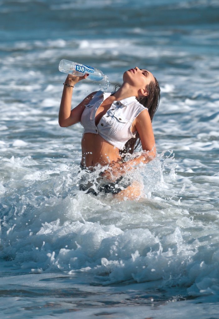Yenitza Munoz muestra su aspecto sexy en el set de una sesión de fotos caliente de 138 Water en Malibu, 15/02/2016. ¡Mucha agua! Yenitza Munoz es una modelo y actriz estadounidense.