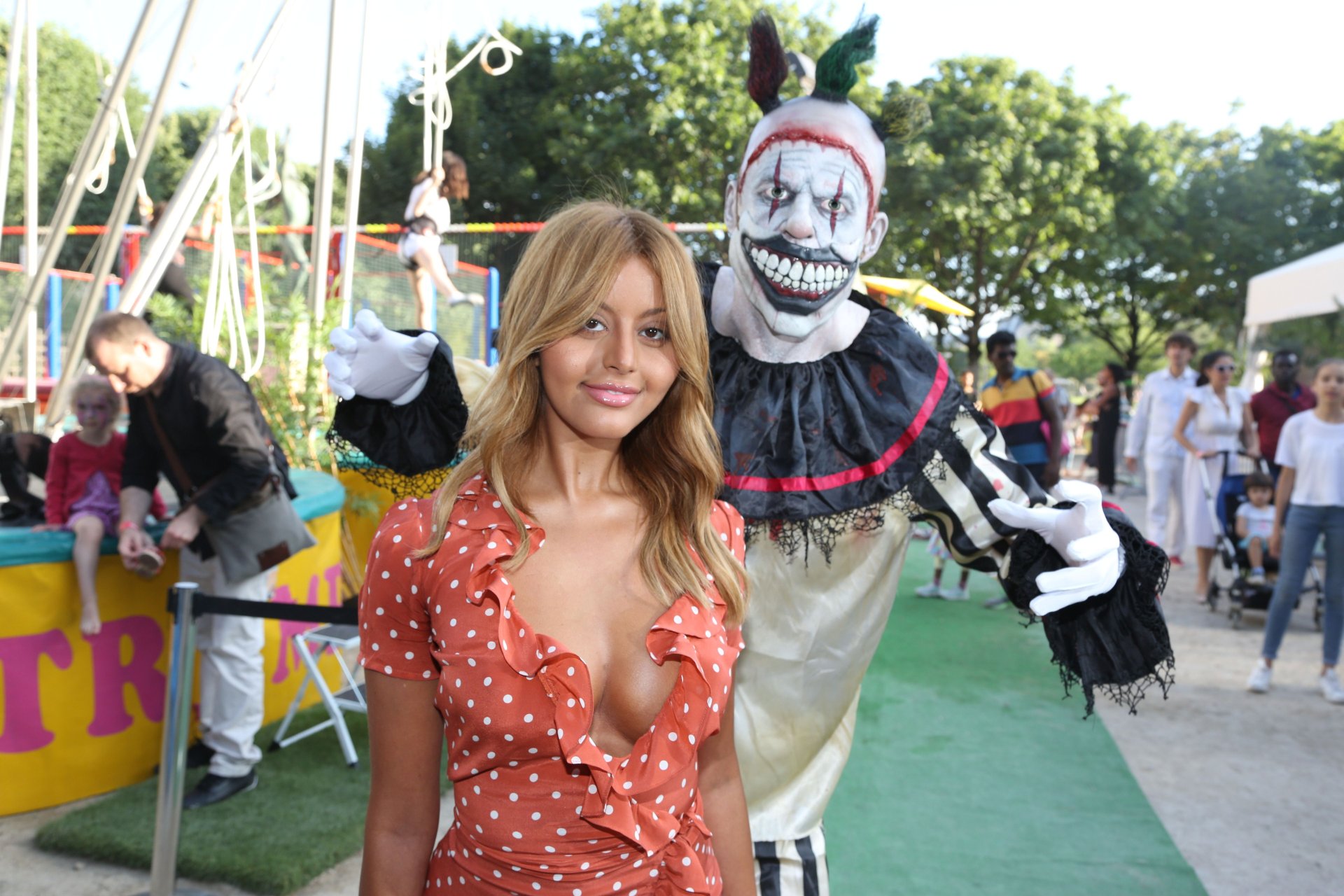 Zahia Dehar muestra su pecho y sus bragas en La Fête Des Tuileries en París, 23/06/2017. Zahia Dehar es diseñadora de moda y lencería, también conocida por su papel en un escándalo de prostitución de menores. Edad: 25 años (25 de febrero de 1992).