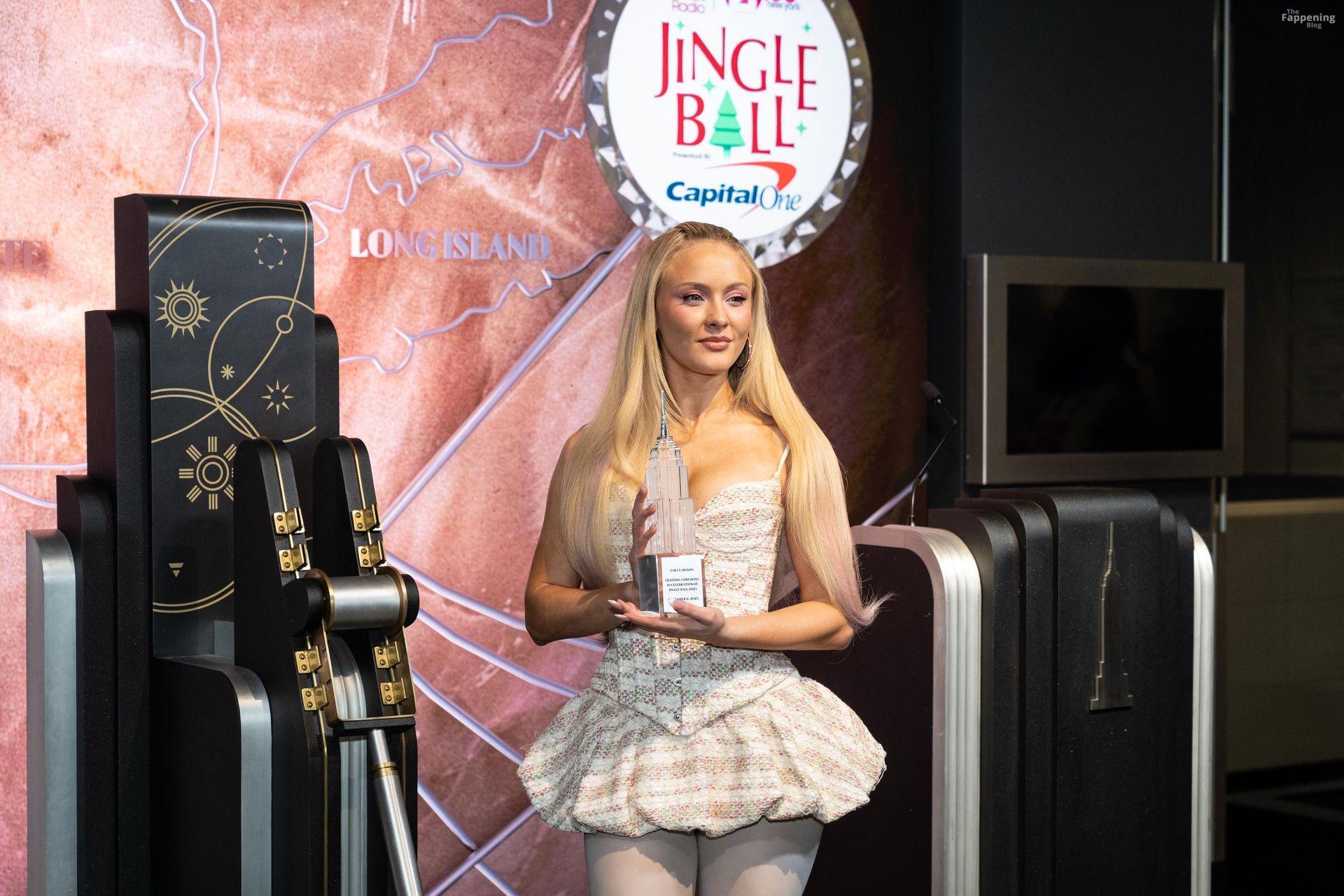 ARTISTA nominada al GRAMMY, multi-platino y estrella de The Fappening Zara Larsson muestra sus piernas y pechos sexys mientras visita el Empire State Building en Nueva York, NY para la iluminación ceremonial que celebra el iHeartRadio Z100 Jingle Ball.