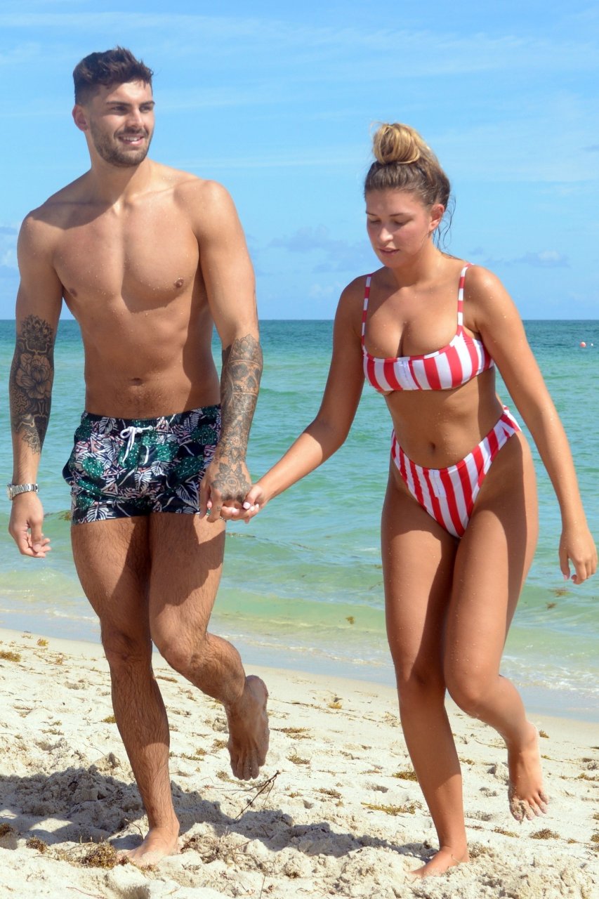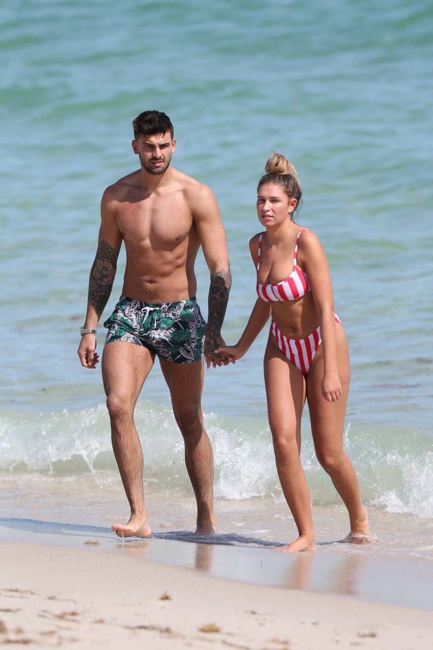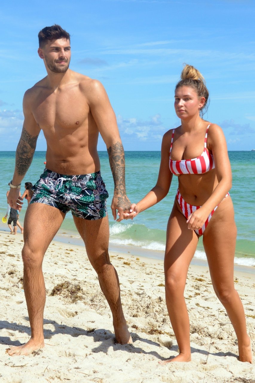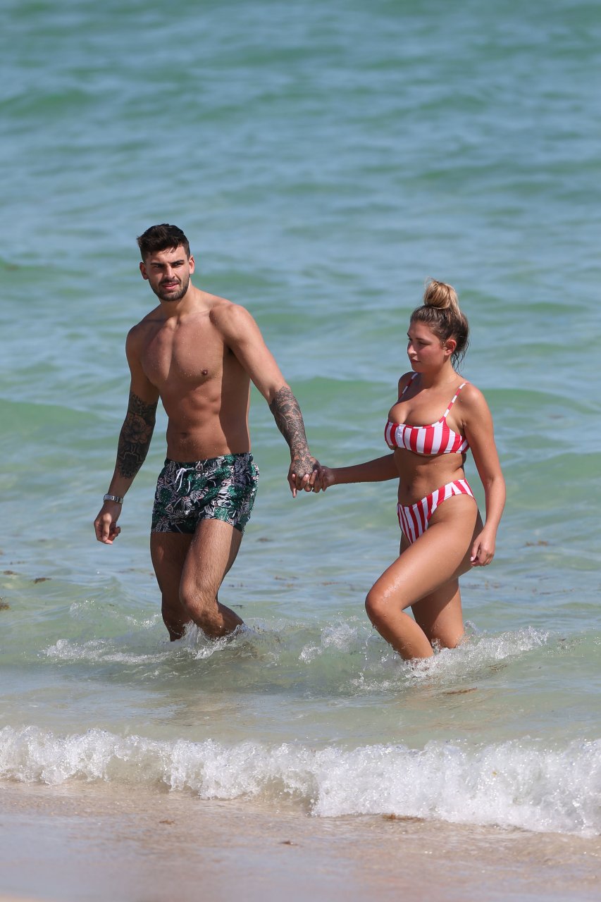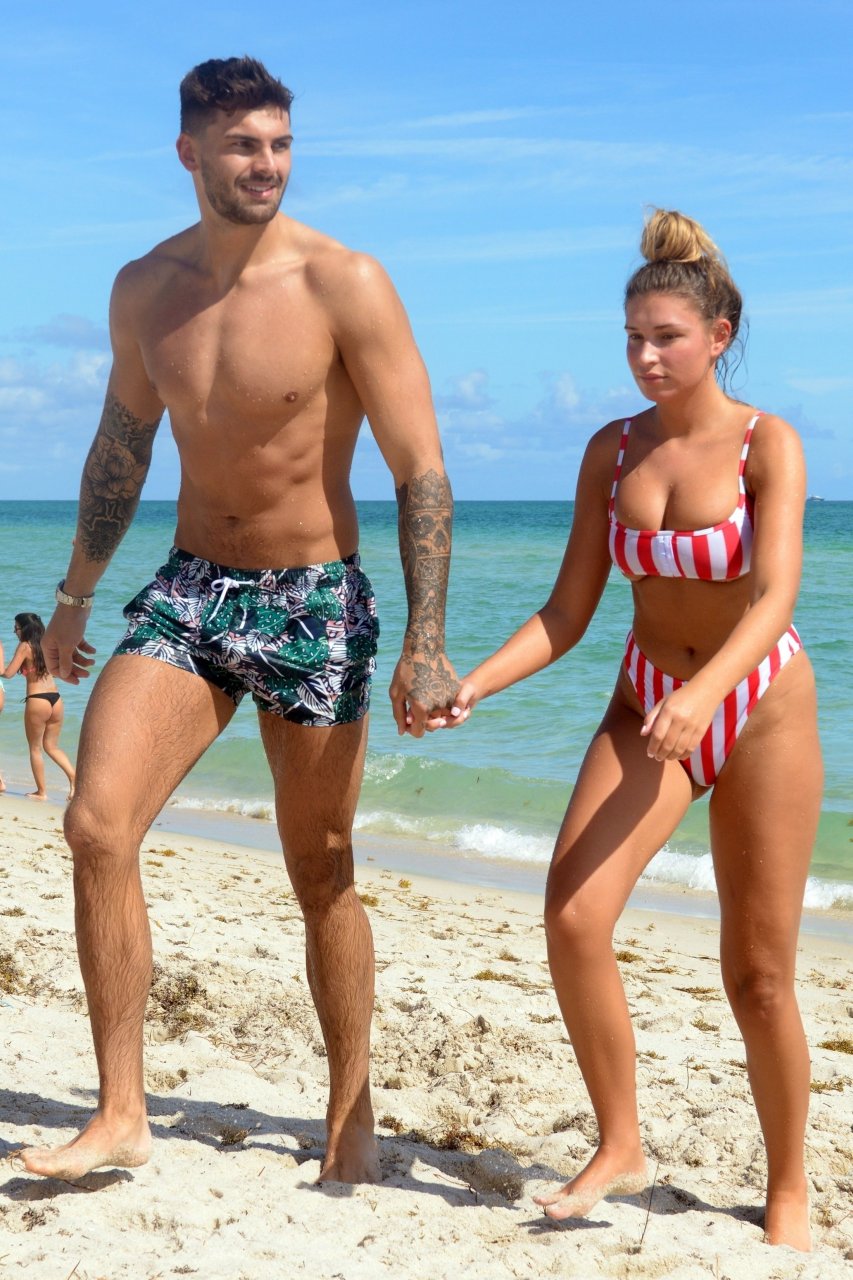 Love Island’s Zara McDermott y Adam Collard muestran sus cuerpos en la playa mientras disfrutan de su primer día en la playa en Miami, 11/06/2018.