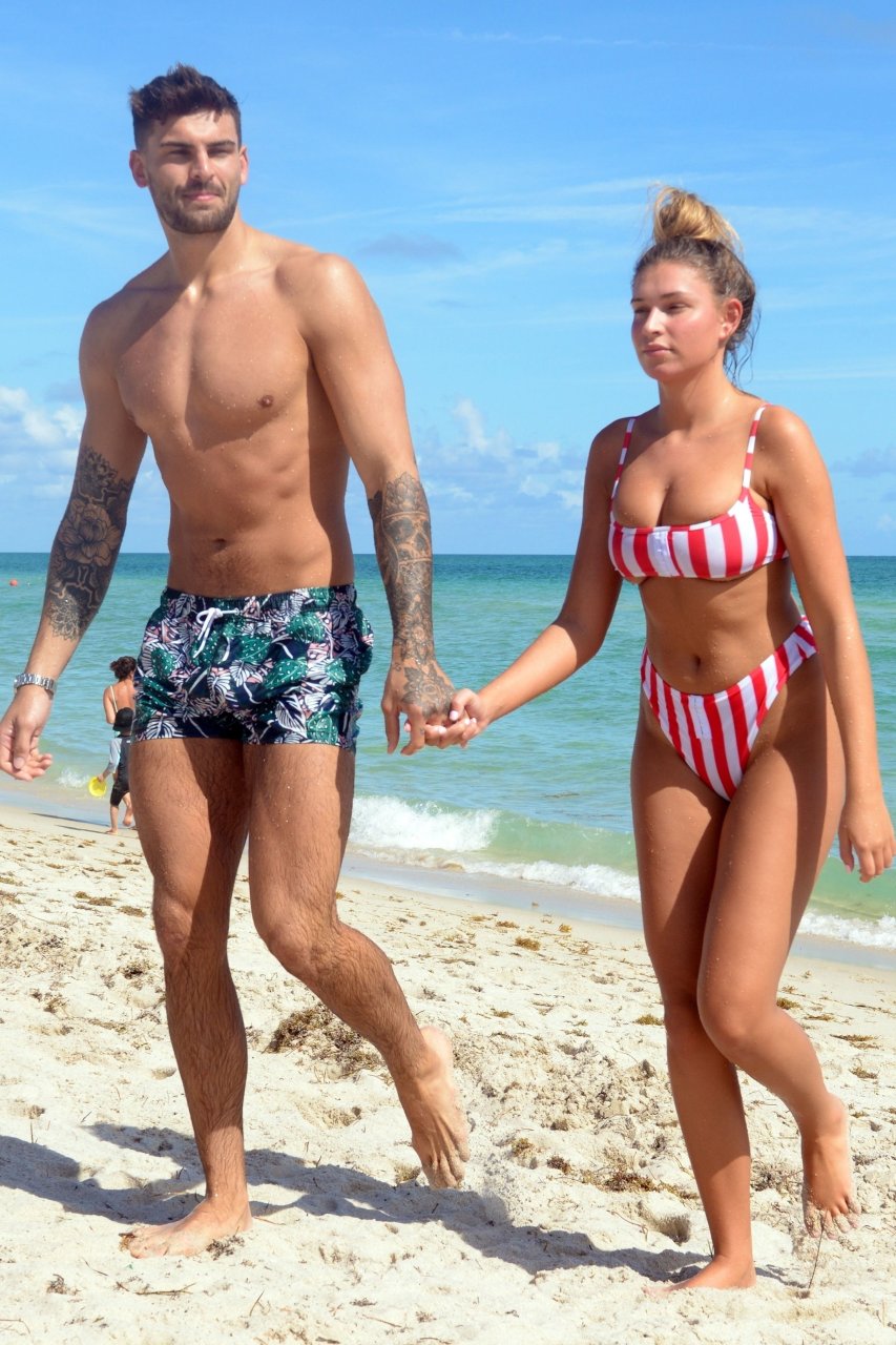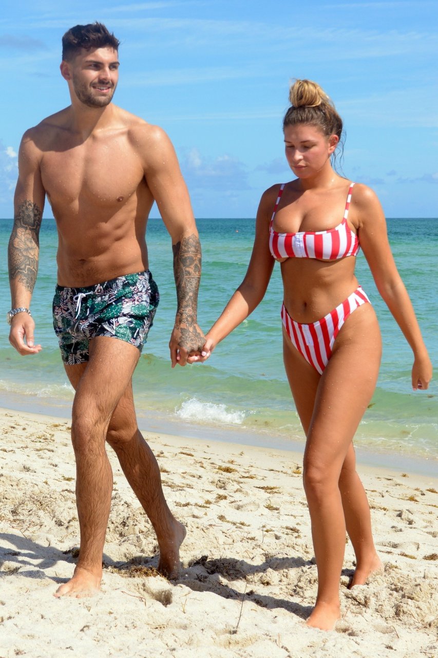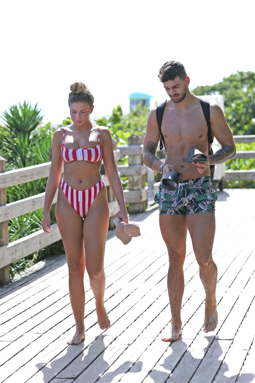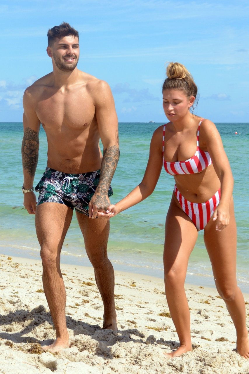 Love Island’s Zara McDermott y Adam Collard muestran sus cuerpos en la playa mientras disfrutan de su primer día en la playa en Miami, 11/06/2018.