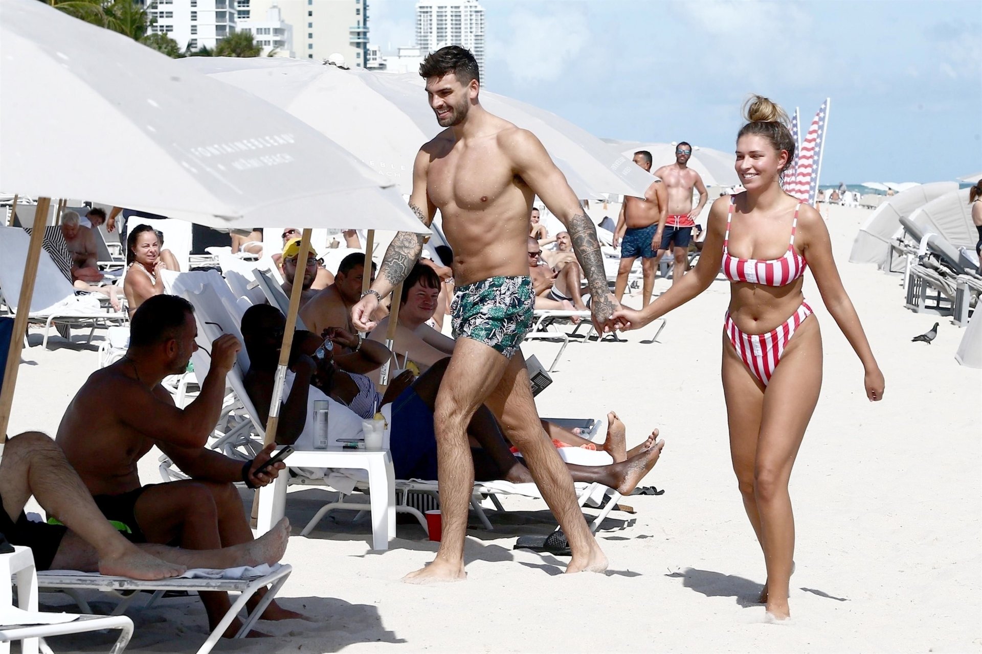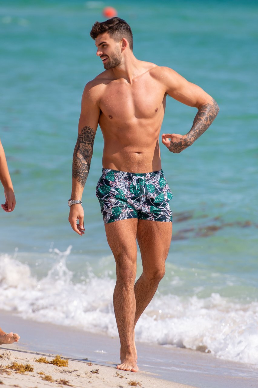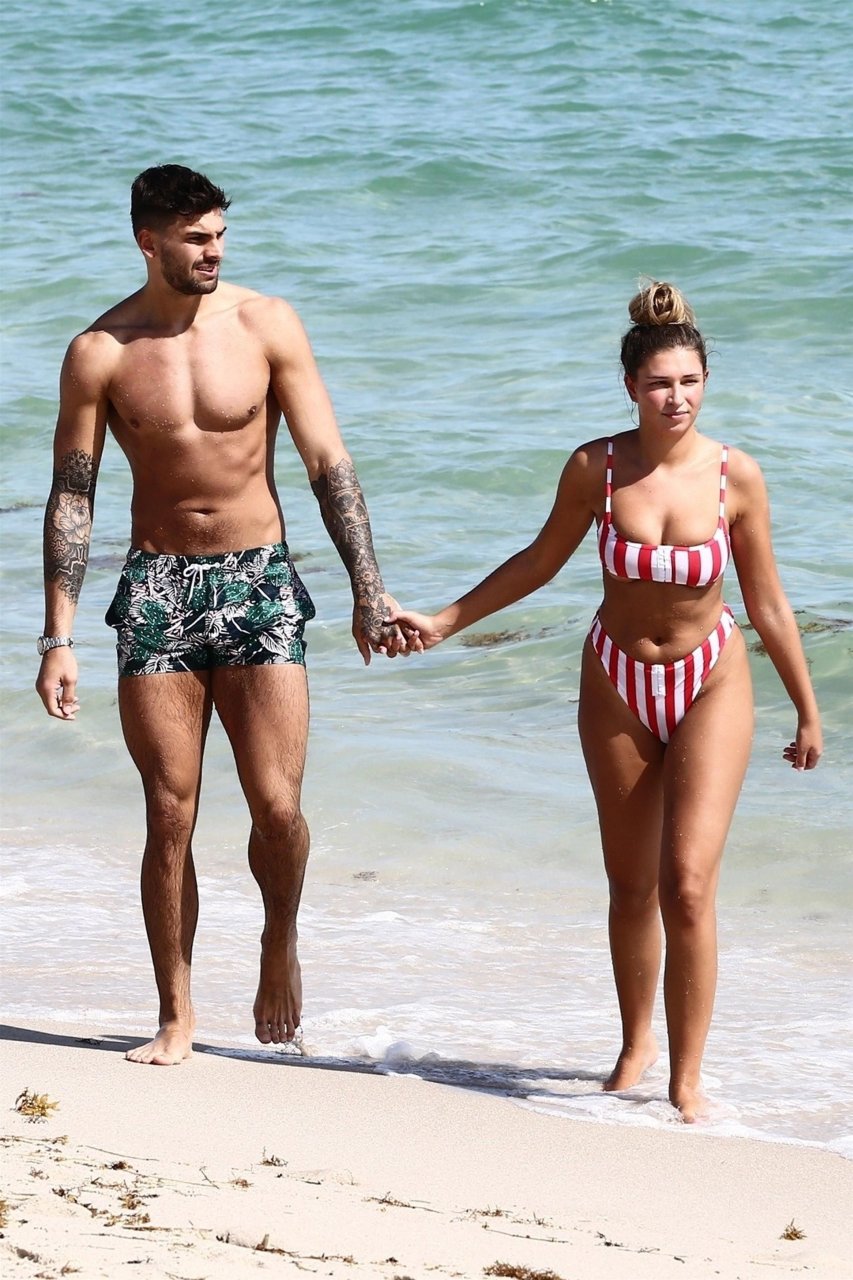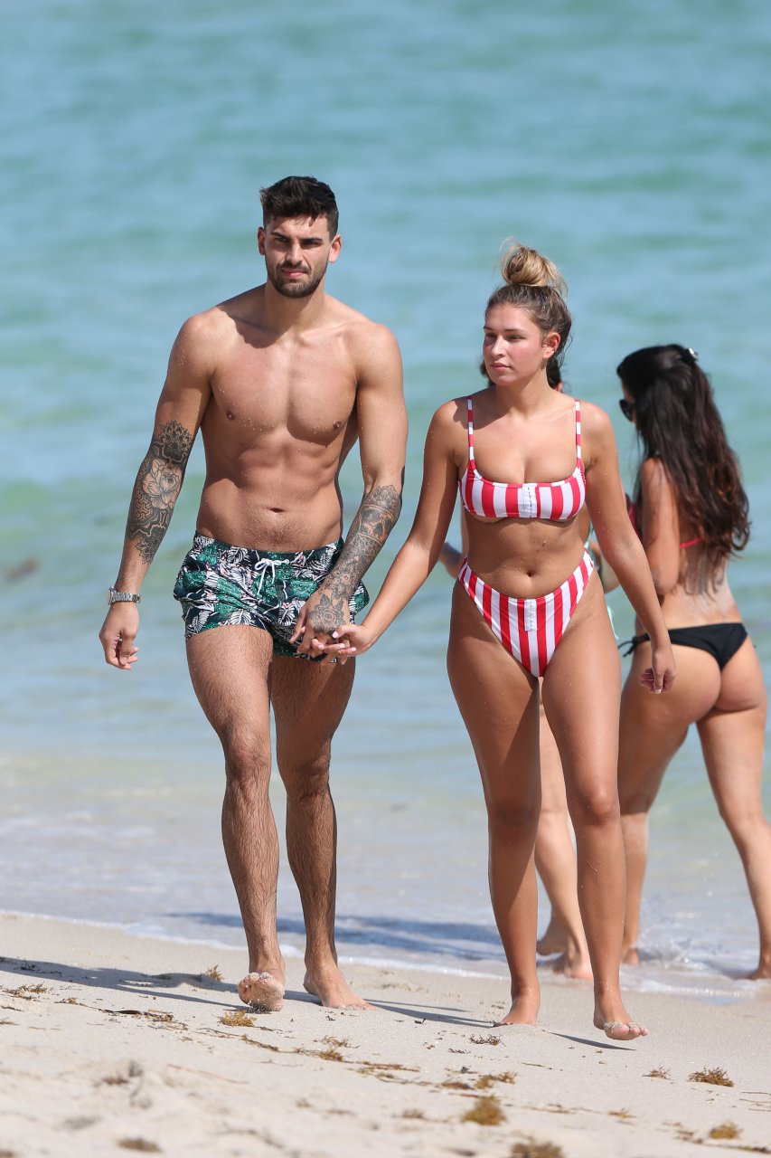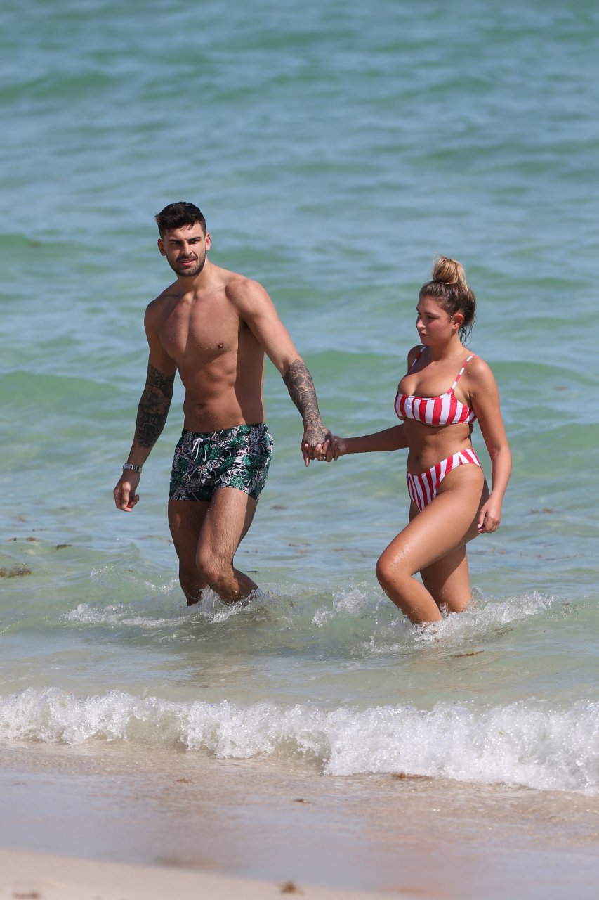 Love Island’s Zara McDermott y Adam Collard muestran sus cuerpos en la playa mientras disfrutan de su primer día en la playa en Miami, 11/06/2018.