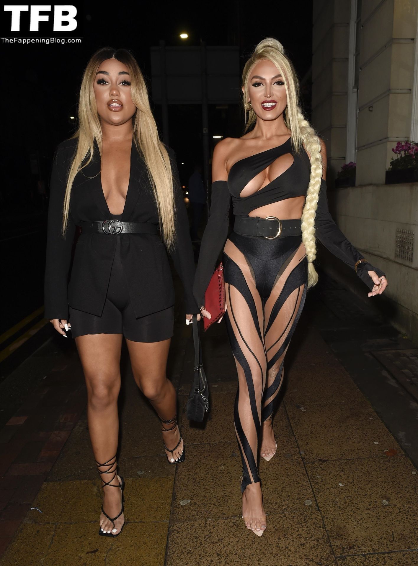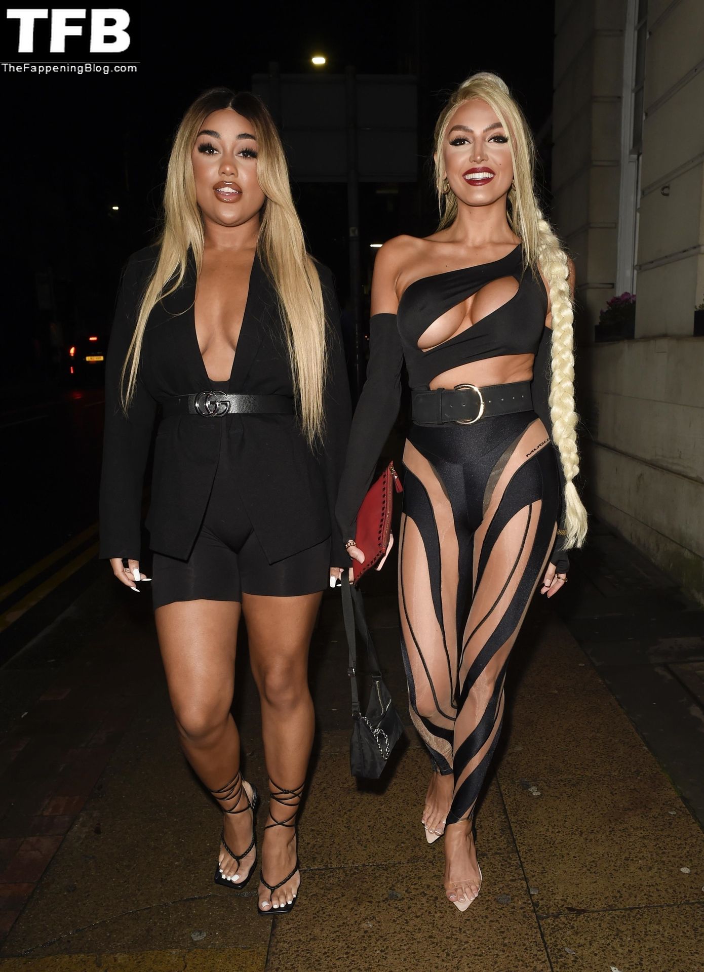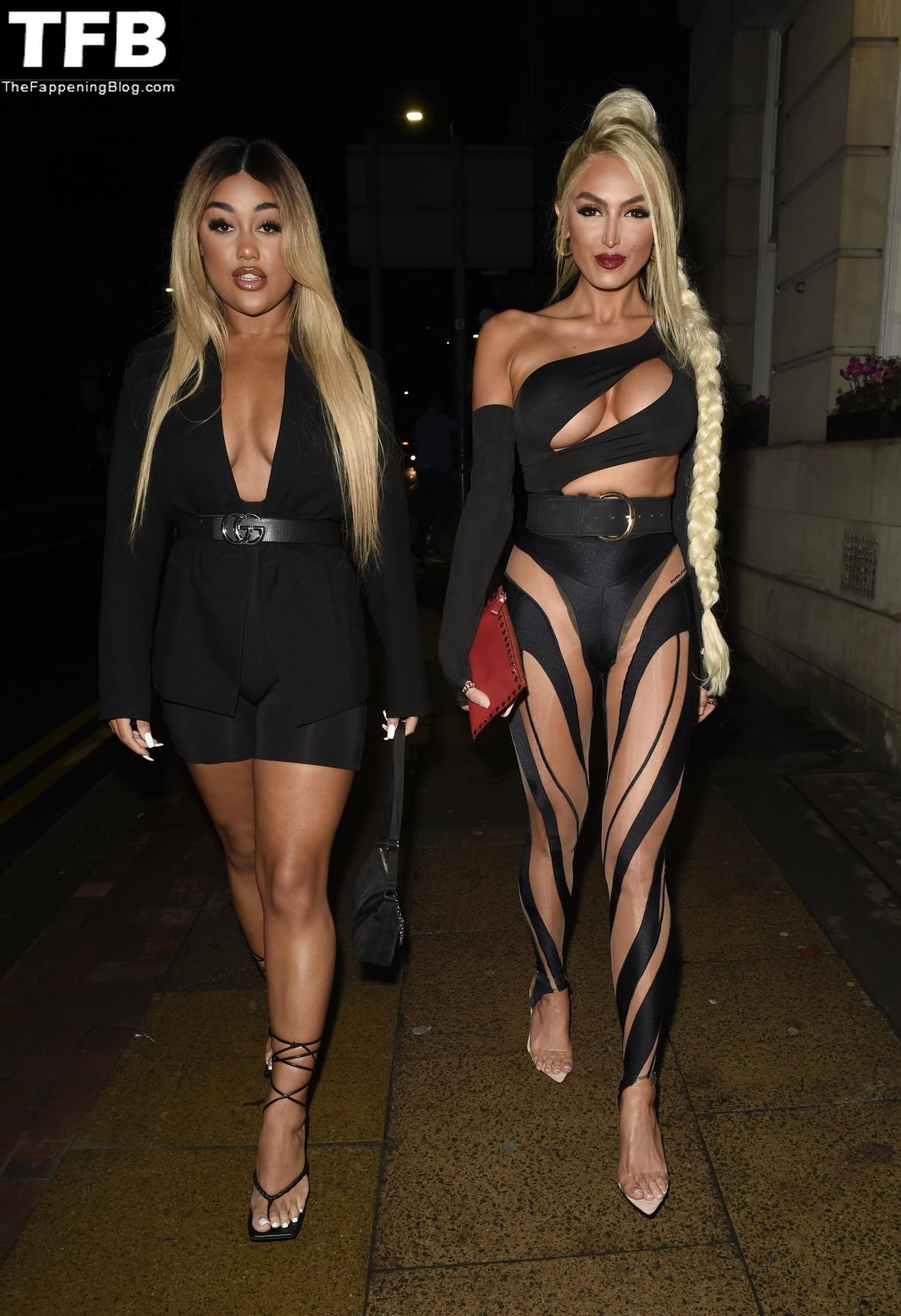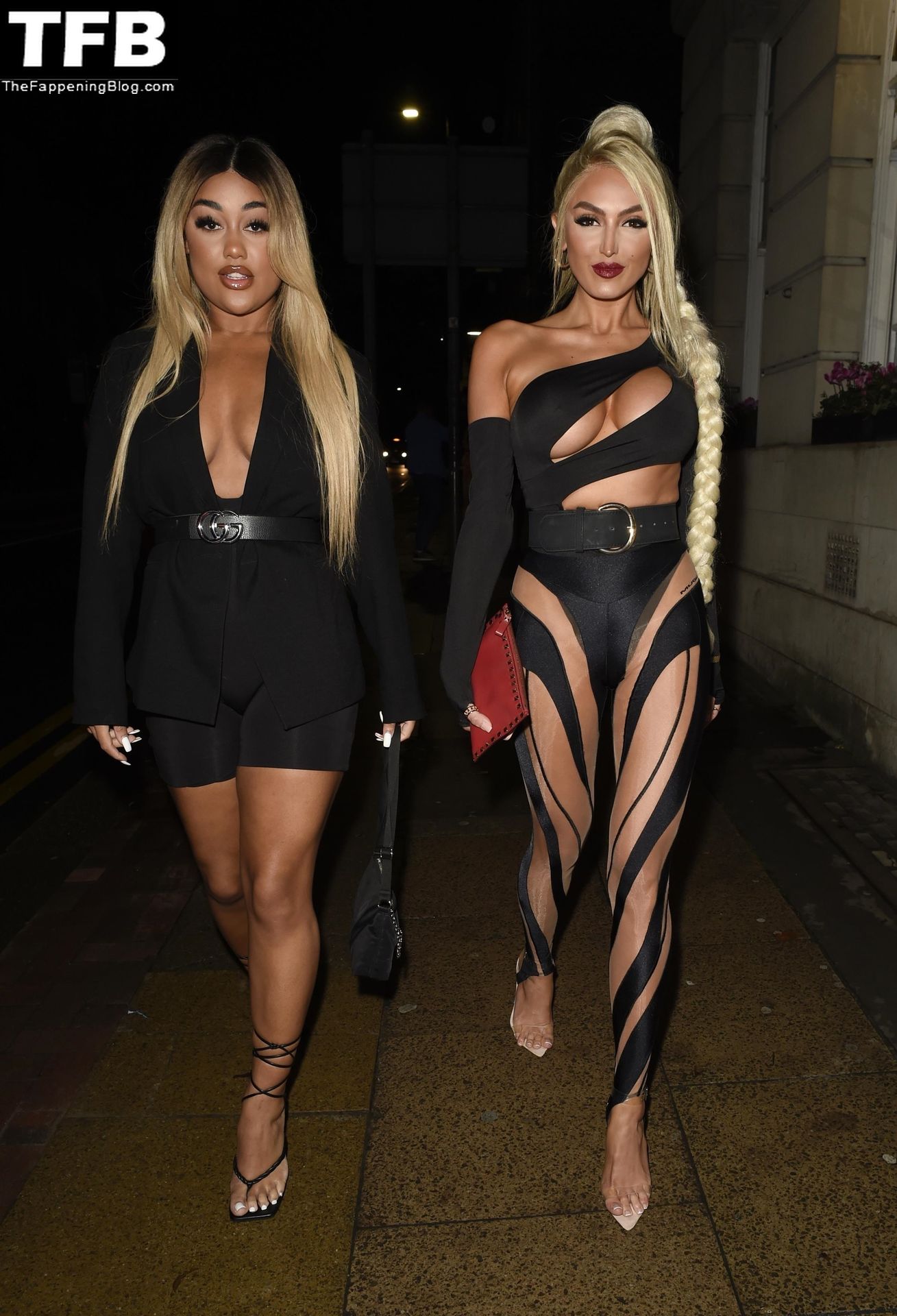 Las chicas de “Love Island” ZaraLena Jackson y Marlie Lewis fueron vistas con atuendos atrevidos saliendo del Boujee Bar and Restaurant en Manchester, 22/10/2021.