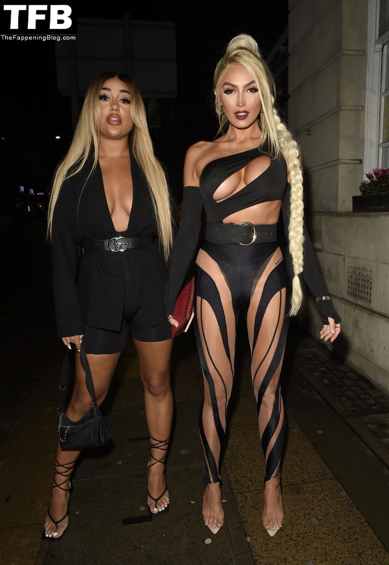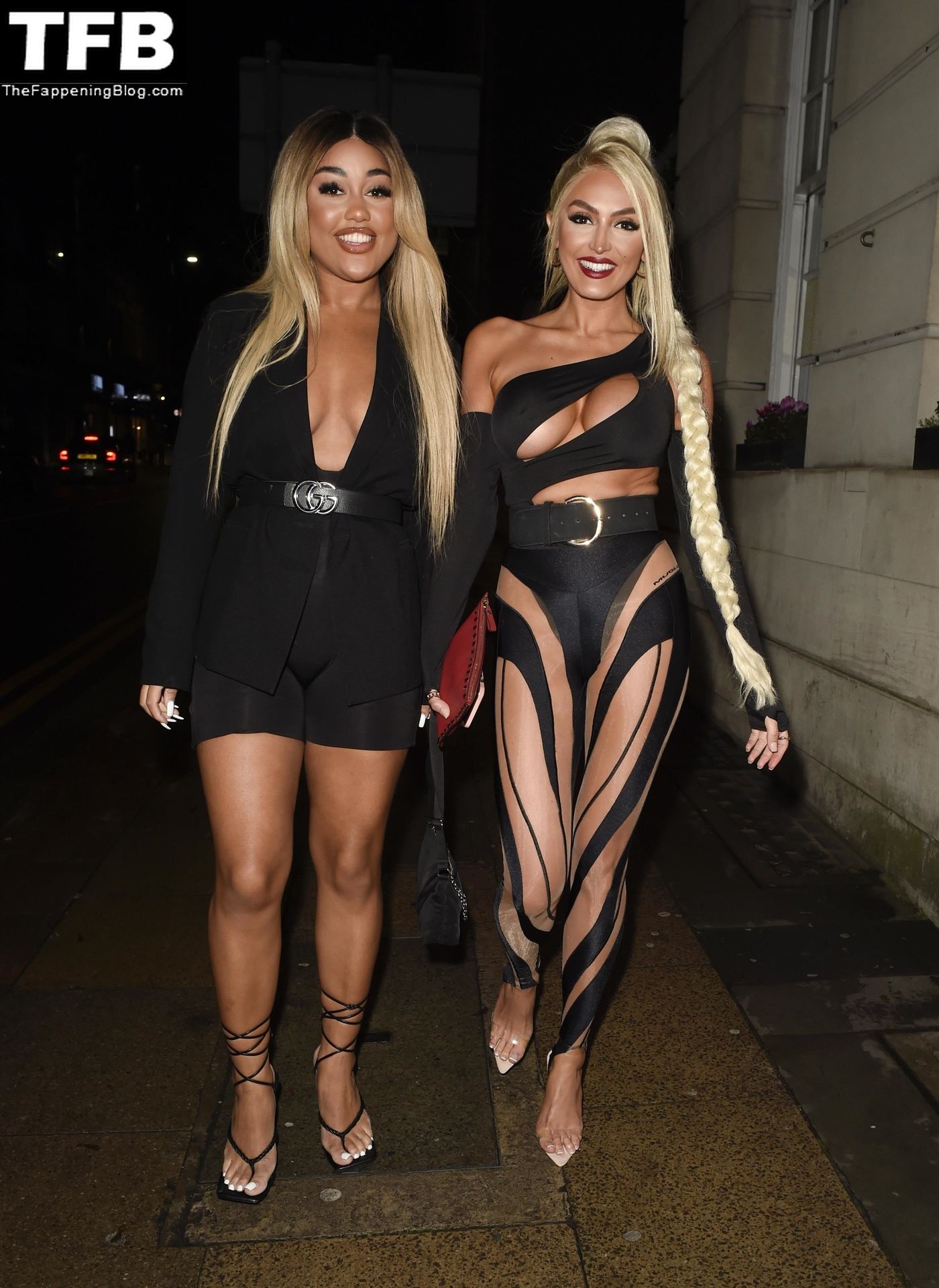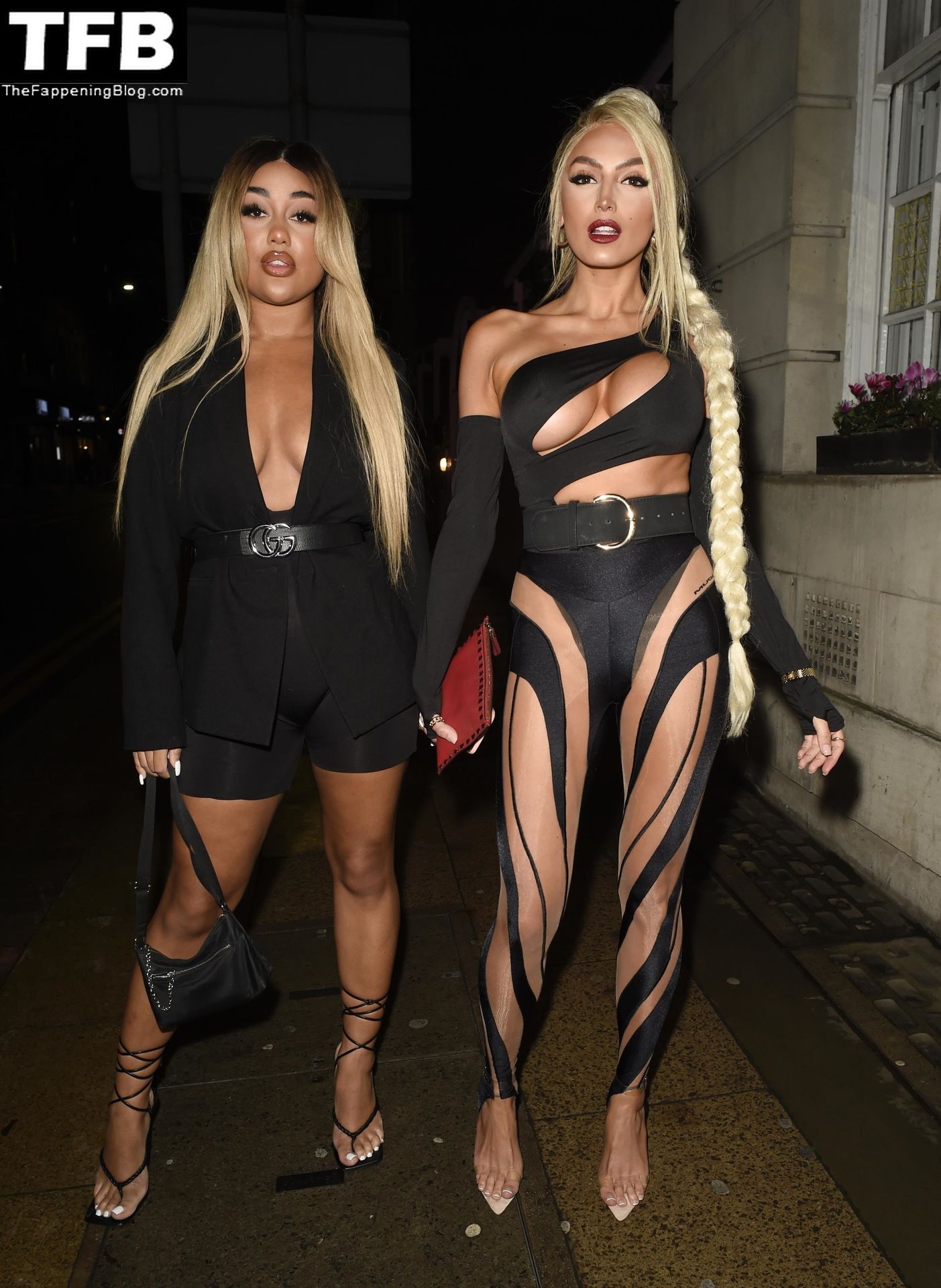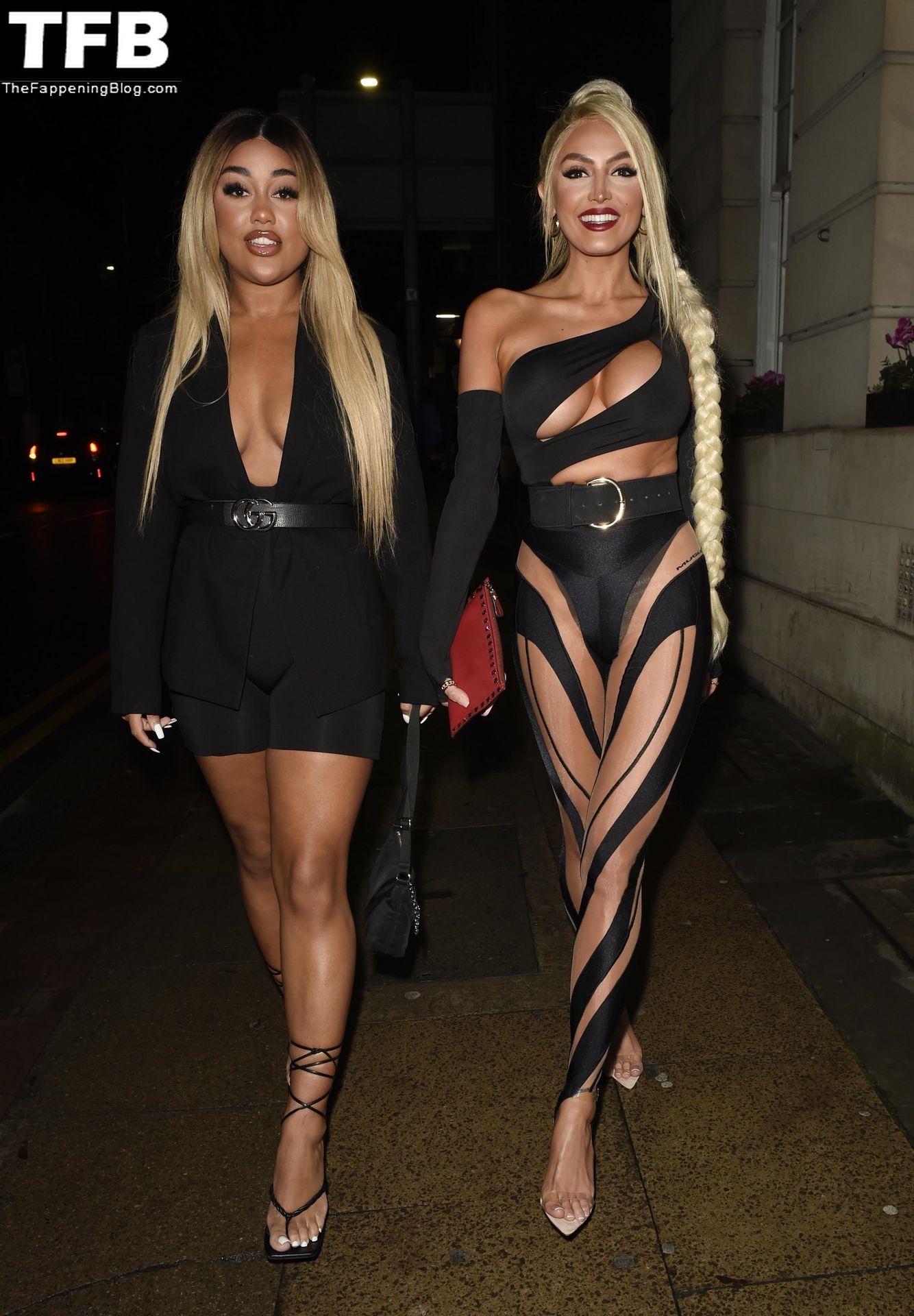 Las chicas de “Love Island” ZaraLena Jackson y Marlie Lewis fueron vistas con atuendos atrevidos saliendo del Boujee Bar and Restaurant en Manchester, 22/10/2021.