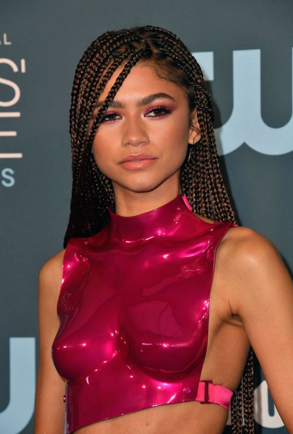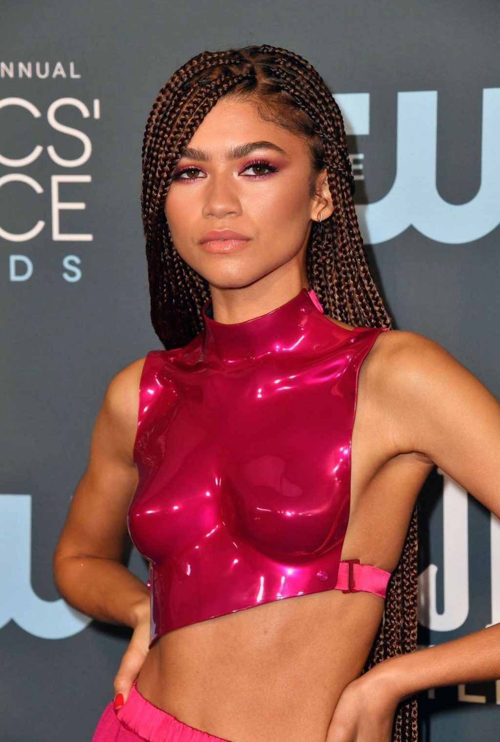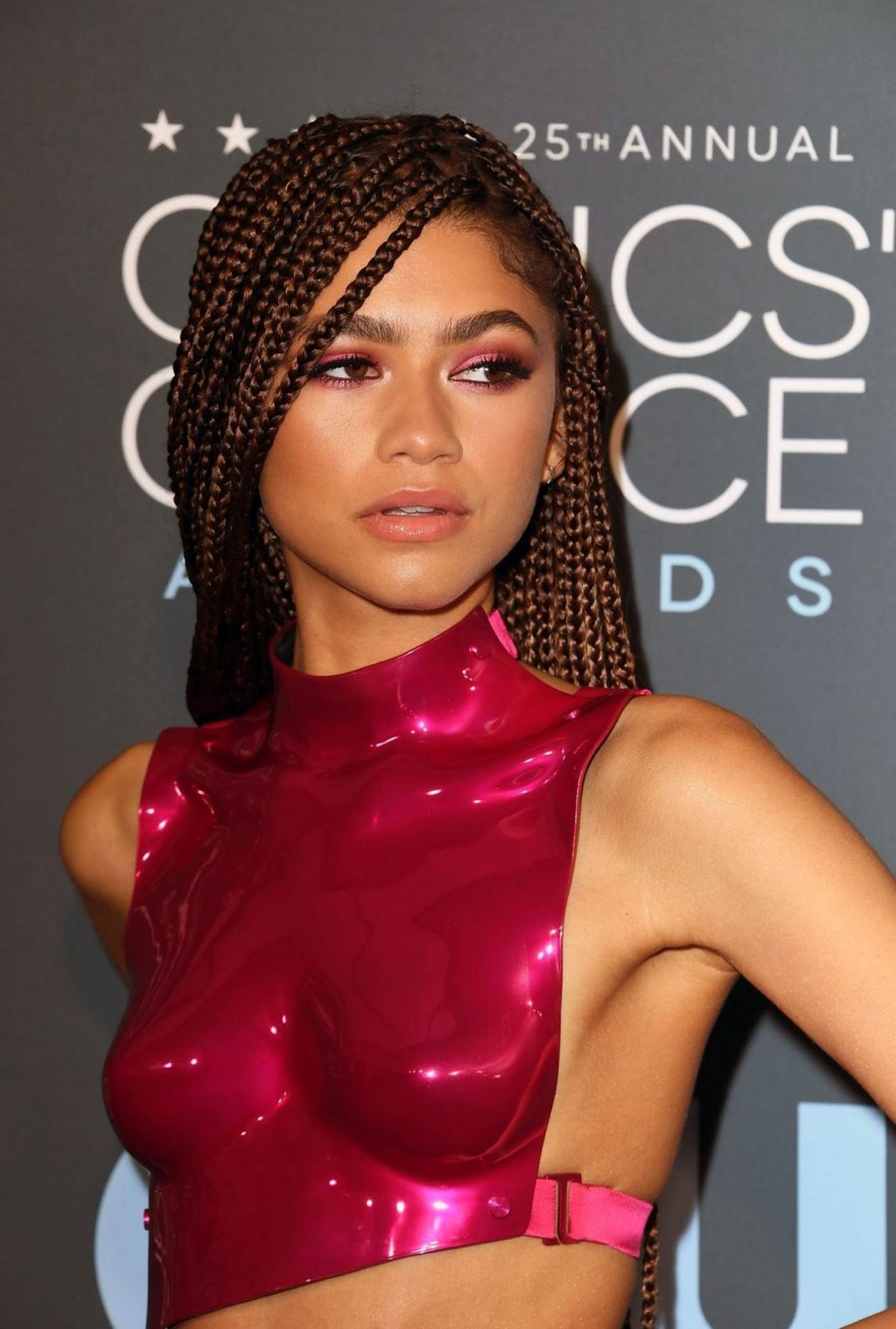 And for the end. Here are some photos of Zendaya when she attended the 25th Annual Critics’ Choice Awards at Barker Hangar in Santa Monica. This event happened earlier this month, and our hot ebony wore something very astonishing and new! Just like that time when Lady Gaga wore a meat dress, except Zendaya’s outfit is vegetarian! She did a body mold to create this cast for her chest! So, we see precisely how her tits look underneath it! Enjoy folks!