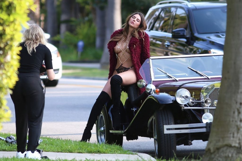 GUESS modelo Zita Vass se desnuda con un conjunto de lencería atrevida para una sesión de fotos provocativa de Honey Birdette en una ubicación exclusiva de Beverly Hills en Los Ángeles, 28/04/2021.