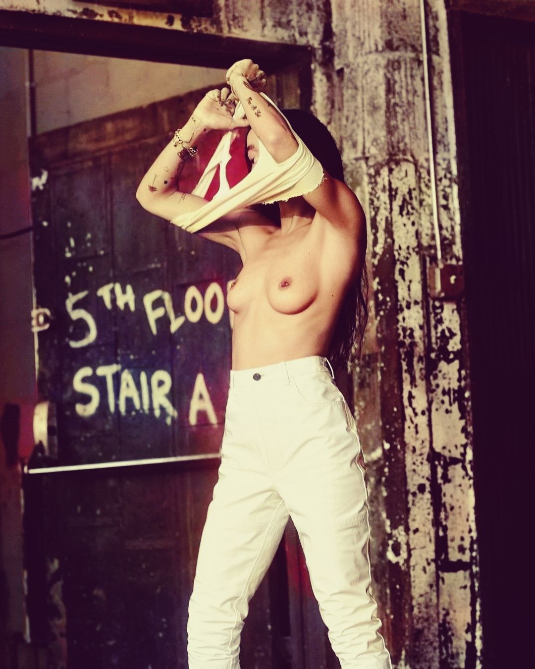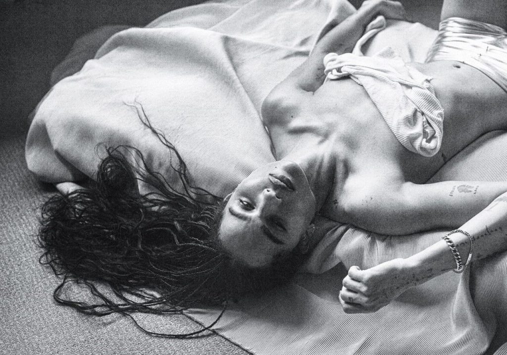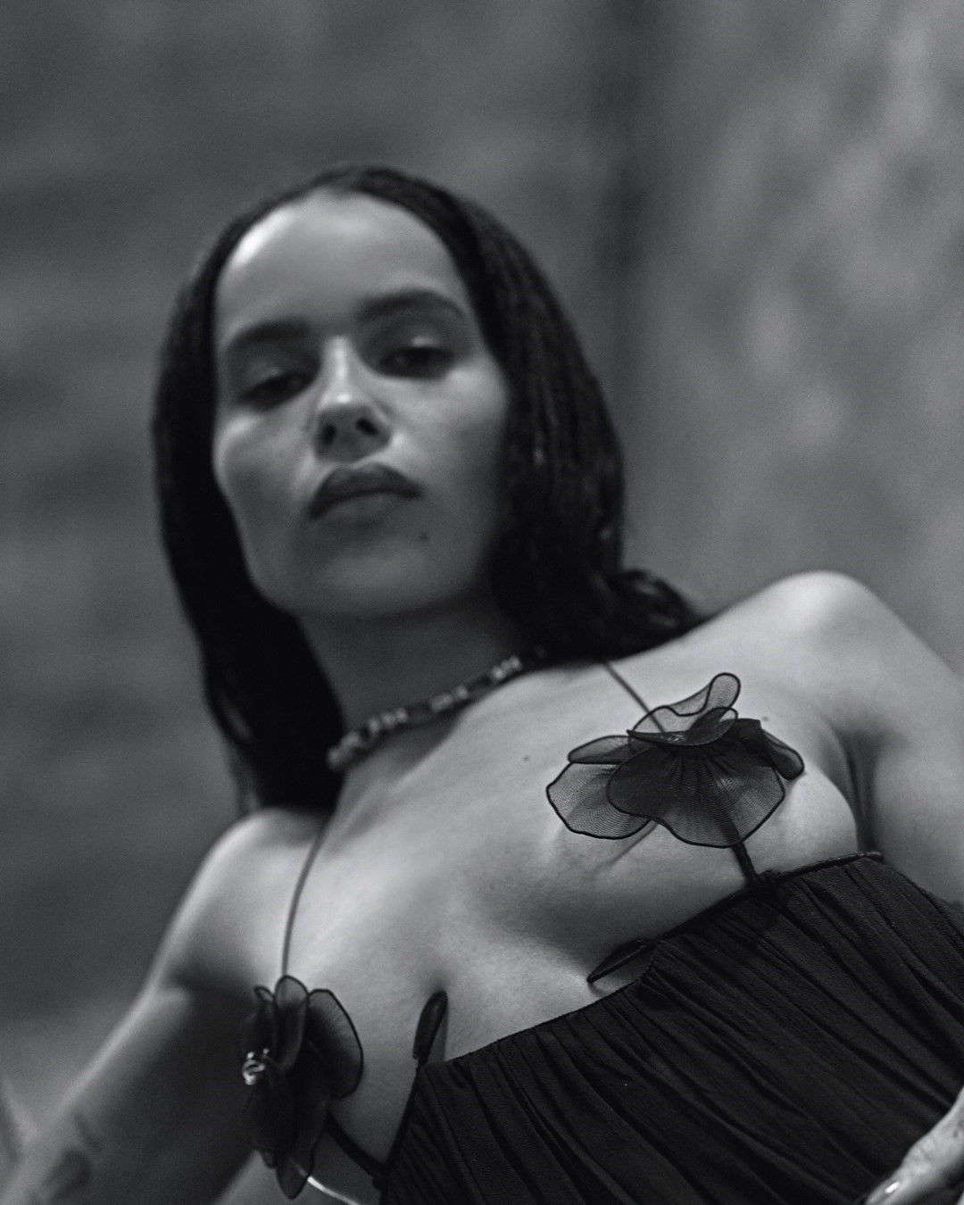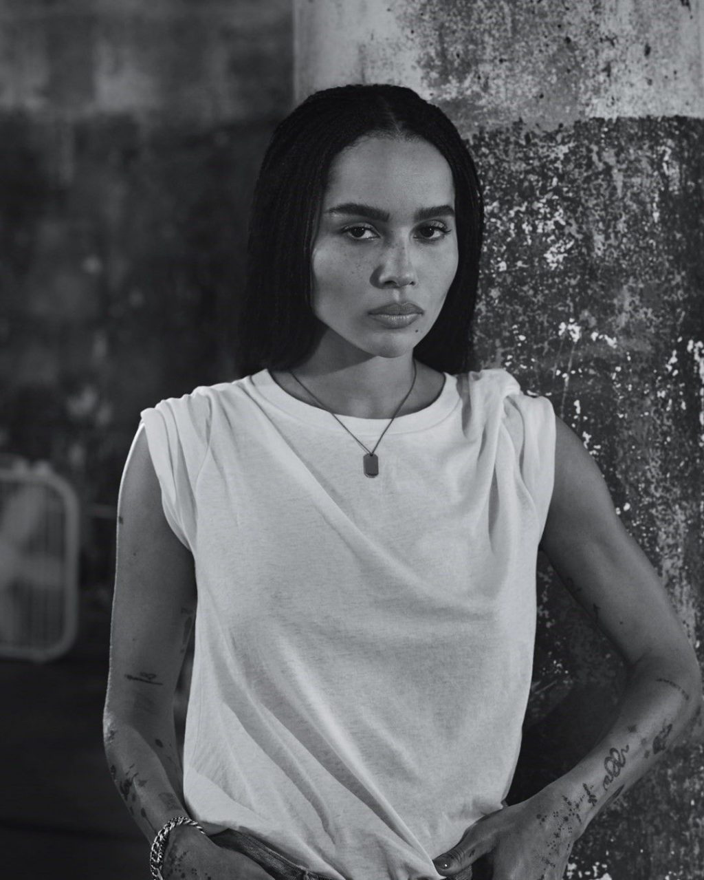Actriz Zoe Kravitz muestra sus pechos desnudos con pezón perforado posando sin camiseta en una nueva sesión de fotos para la edición Otoño/Invierno 2021 de AnOther Magazine.