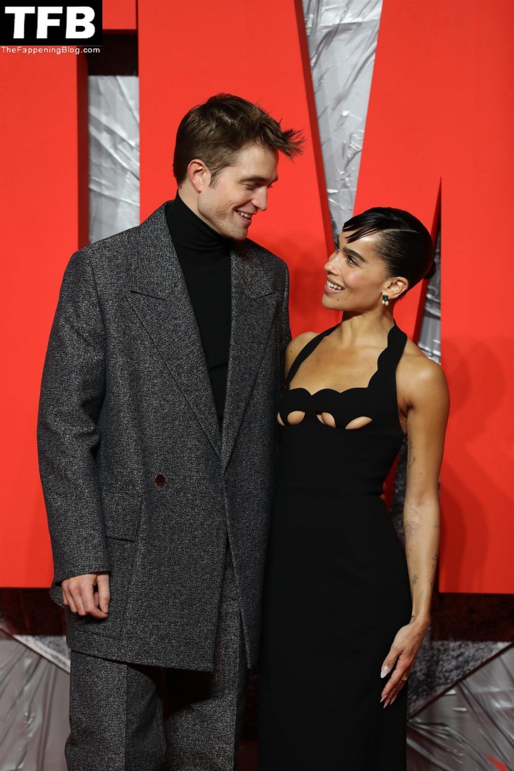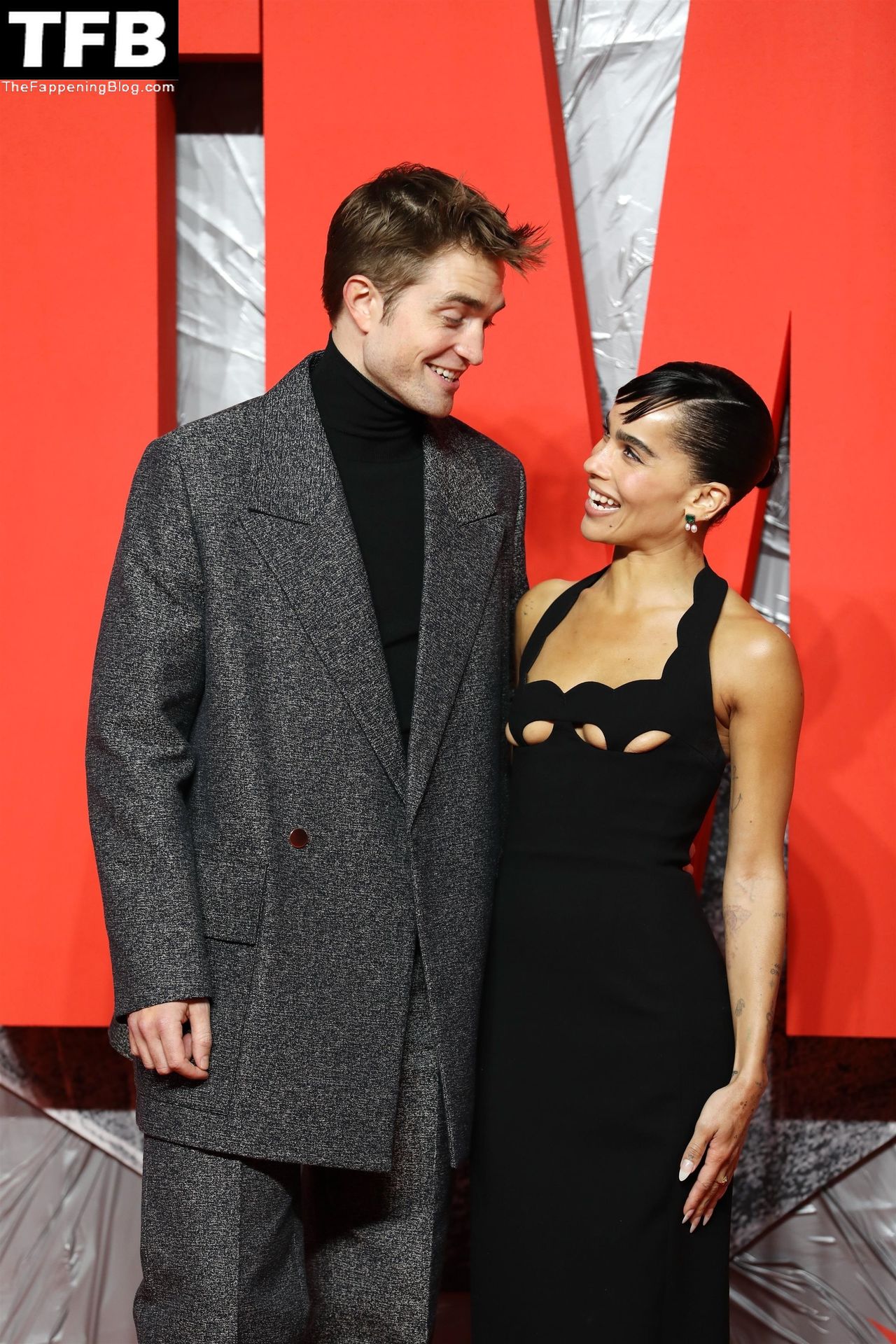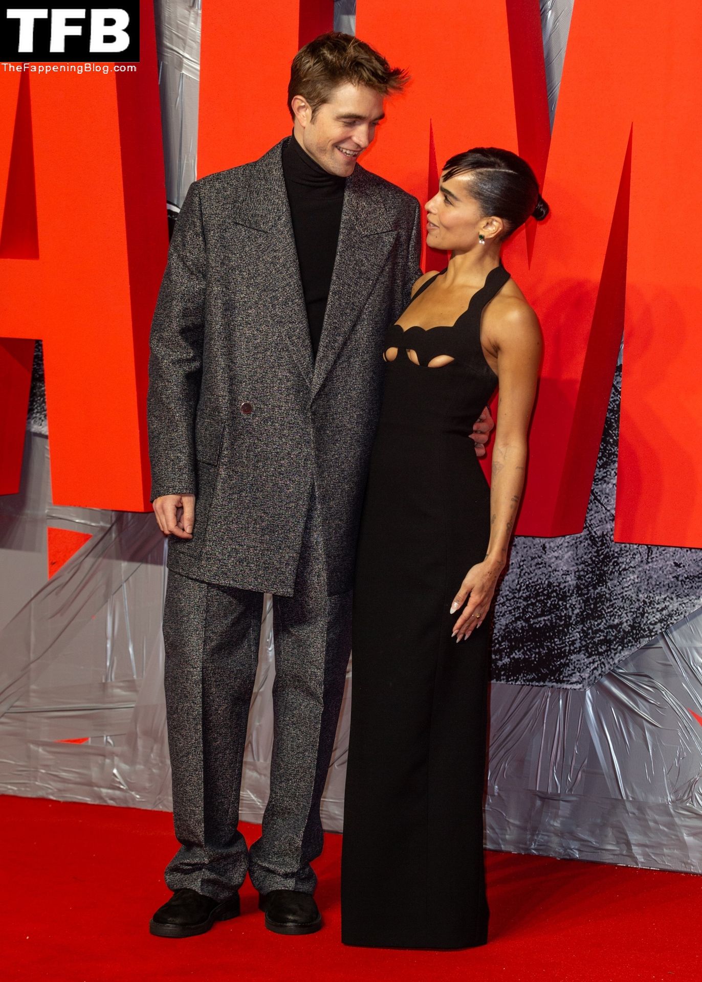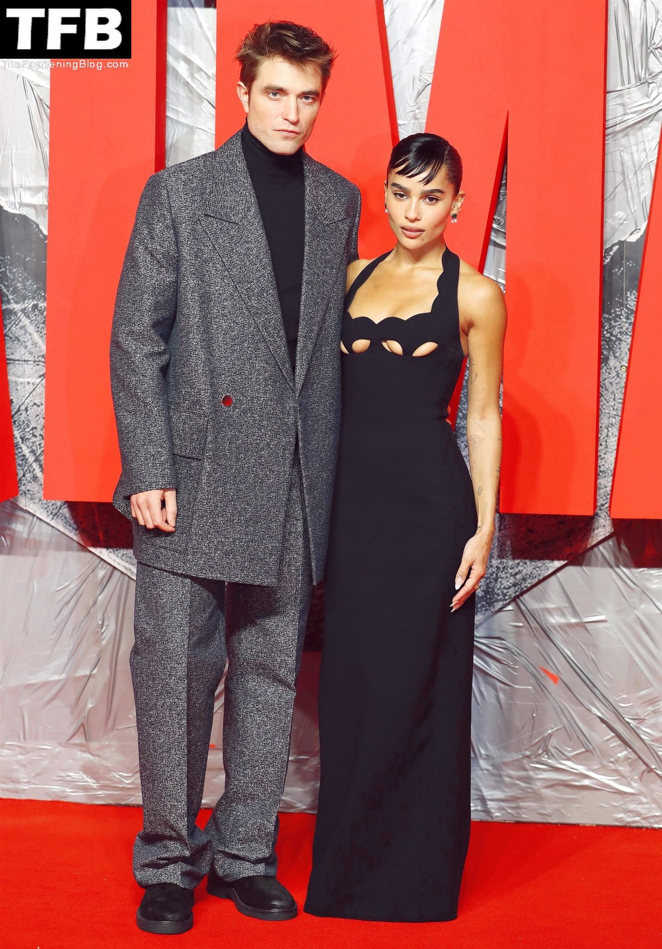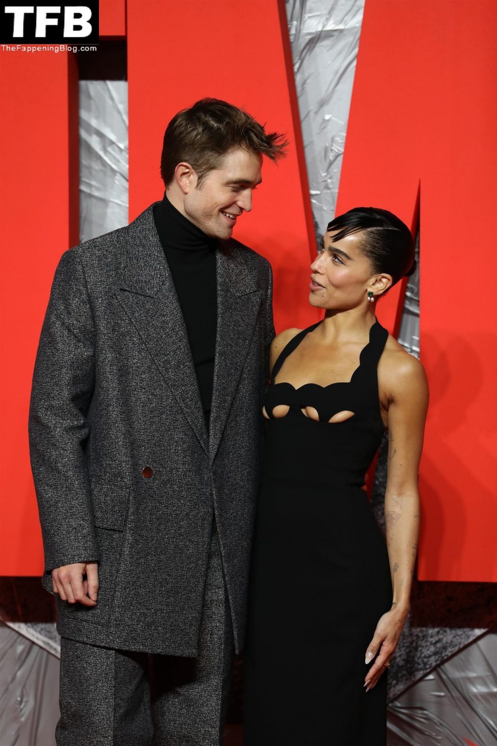 Actores Zoe Kravitz y Robert Pattinson posan juntos en la alfombra roja del estreno de la película The Batman en Londres, 23/02/2022.