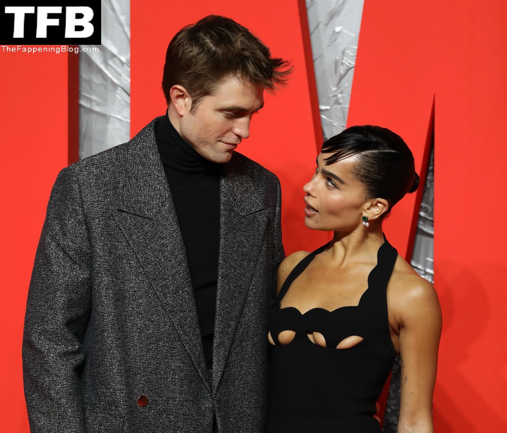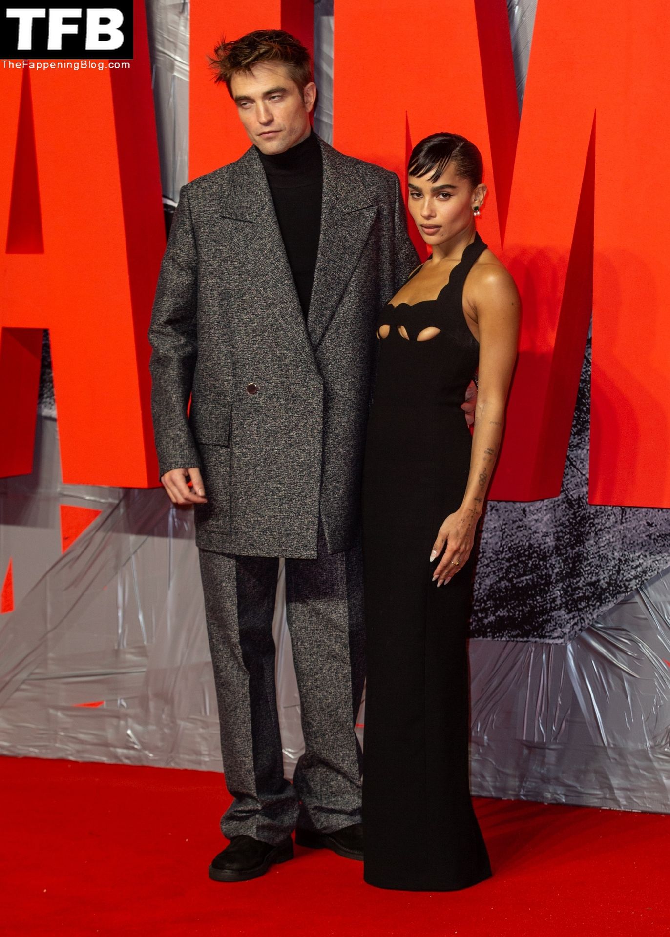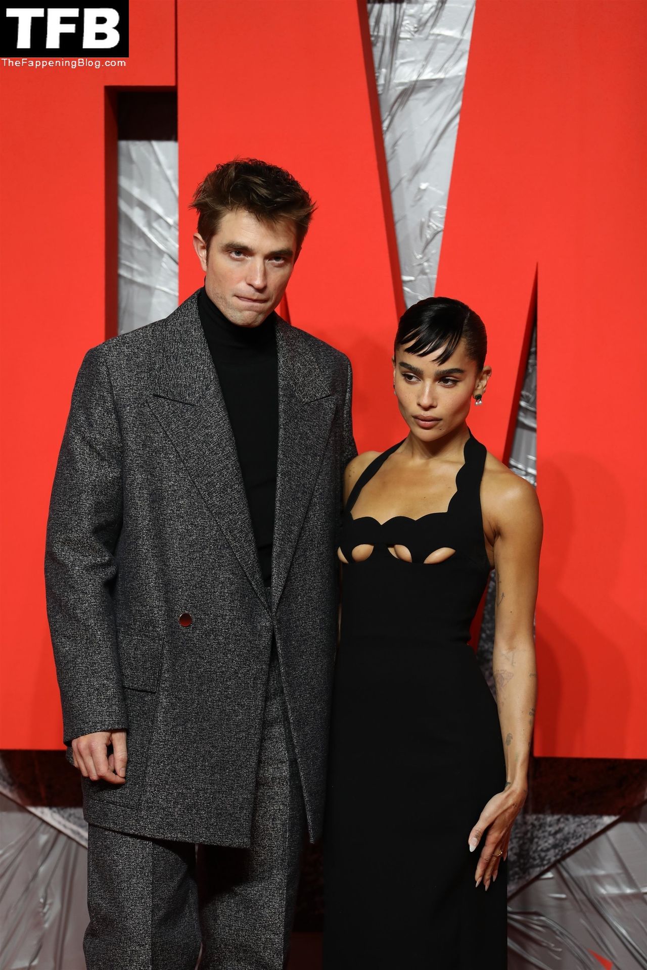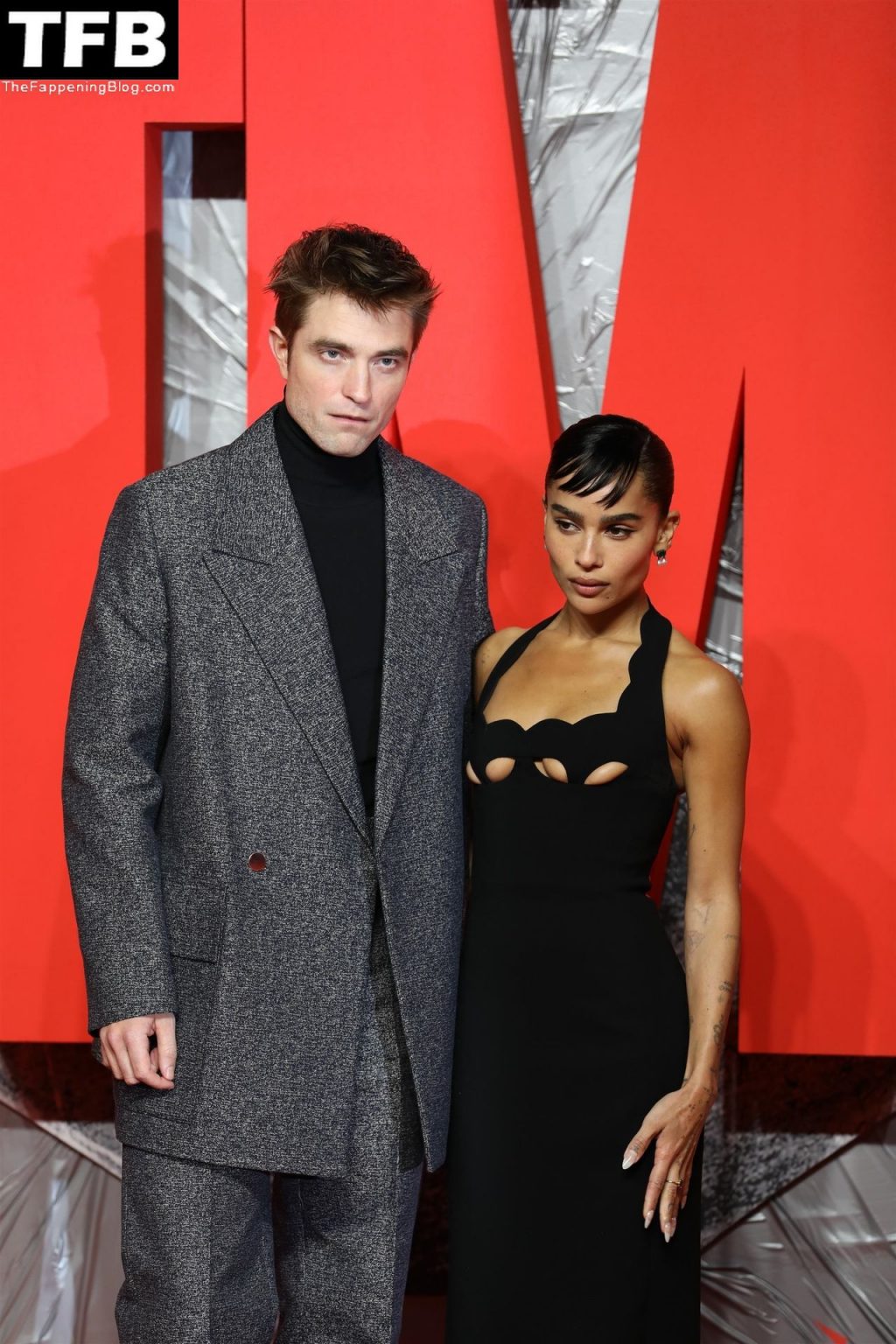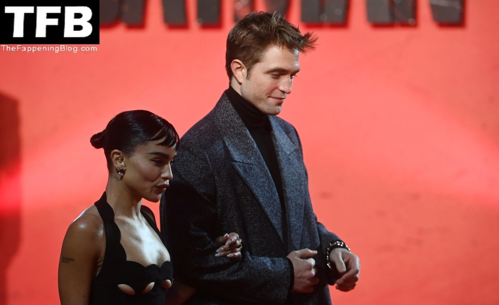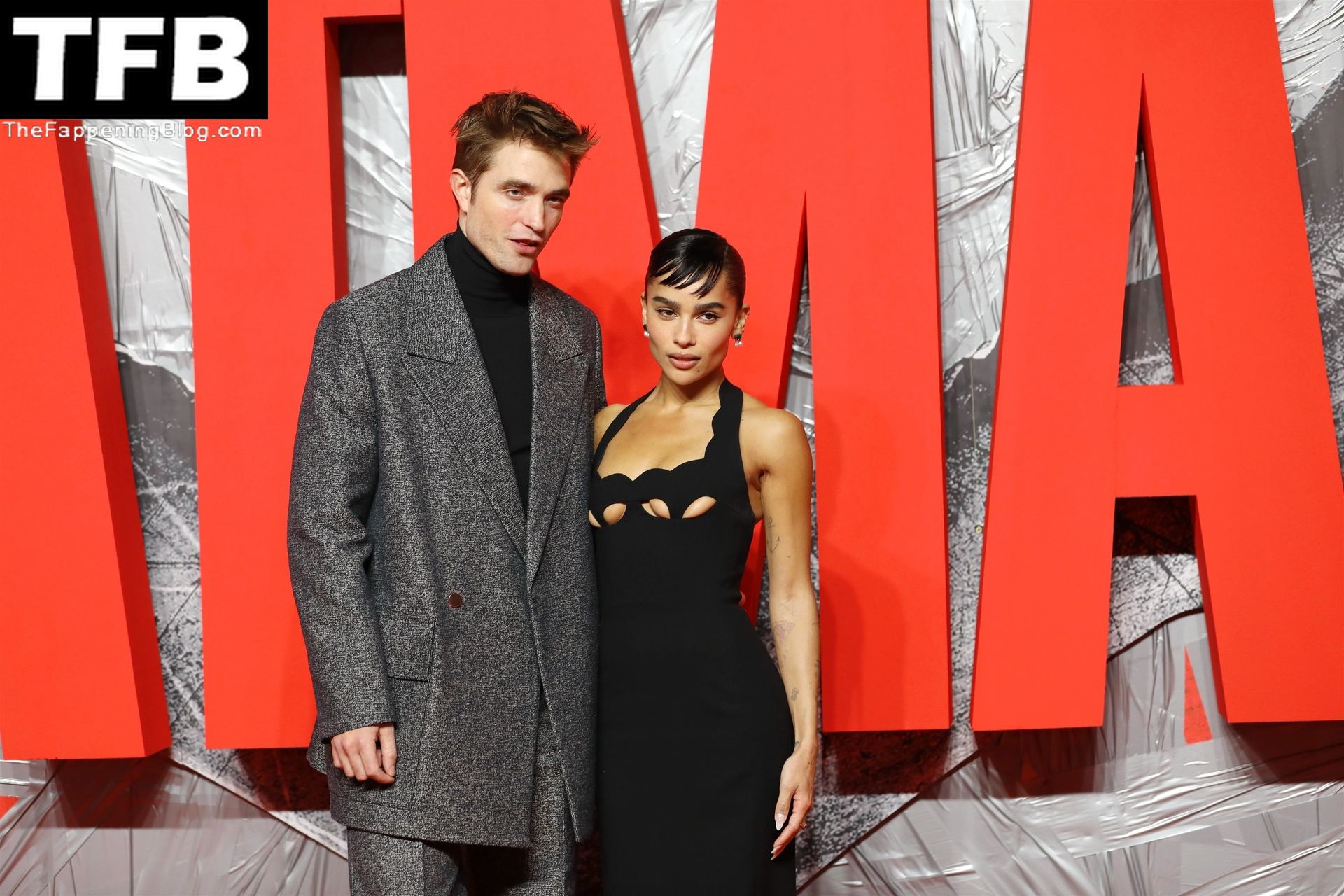 Actores Zoe Kravitz y Robert Pattinson posan juntos en la alfombra roja del estreno de la película The Batman en Londres, 23/02/2022.