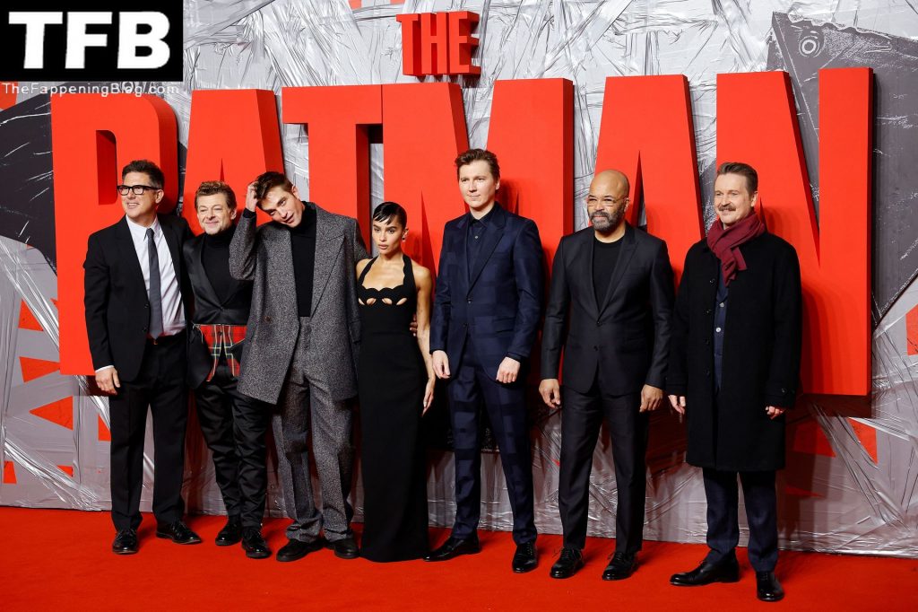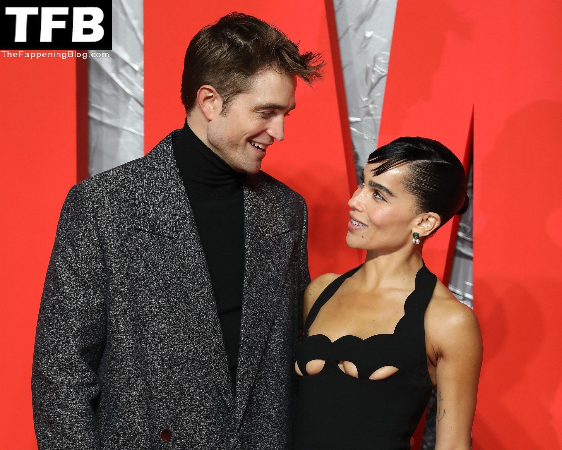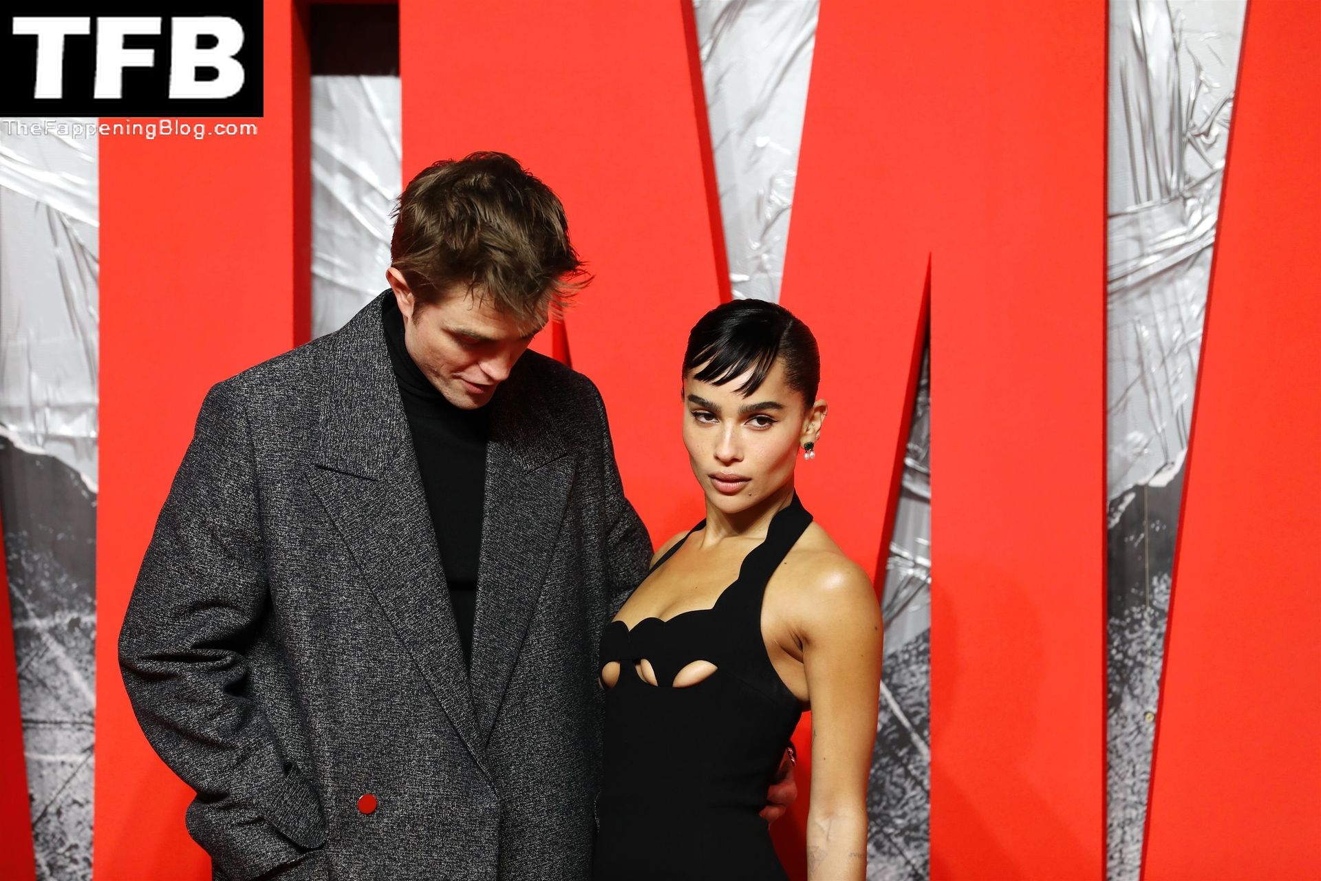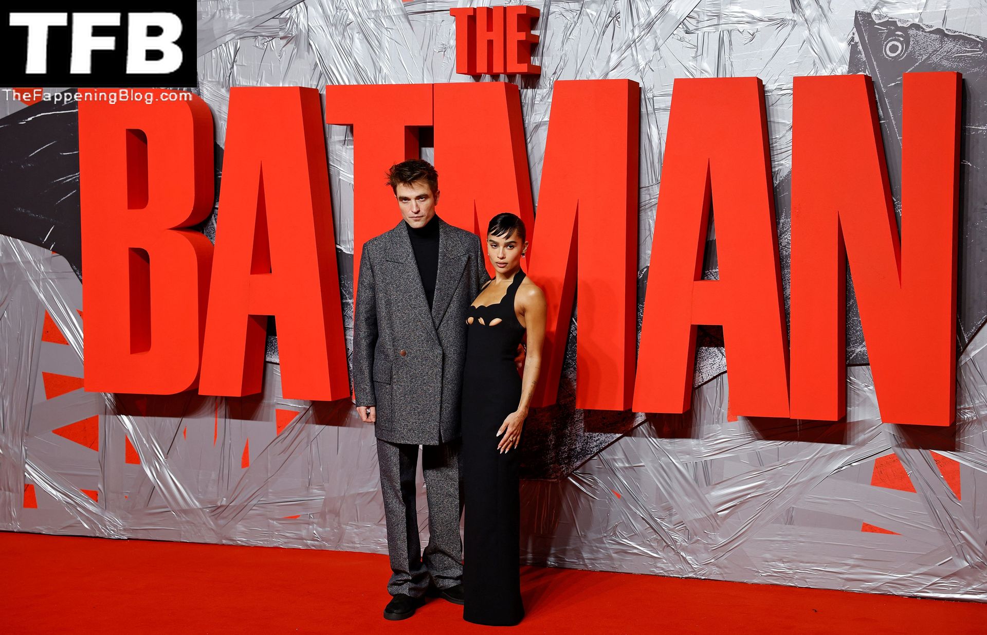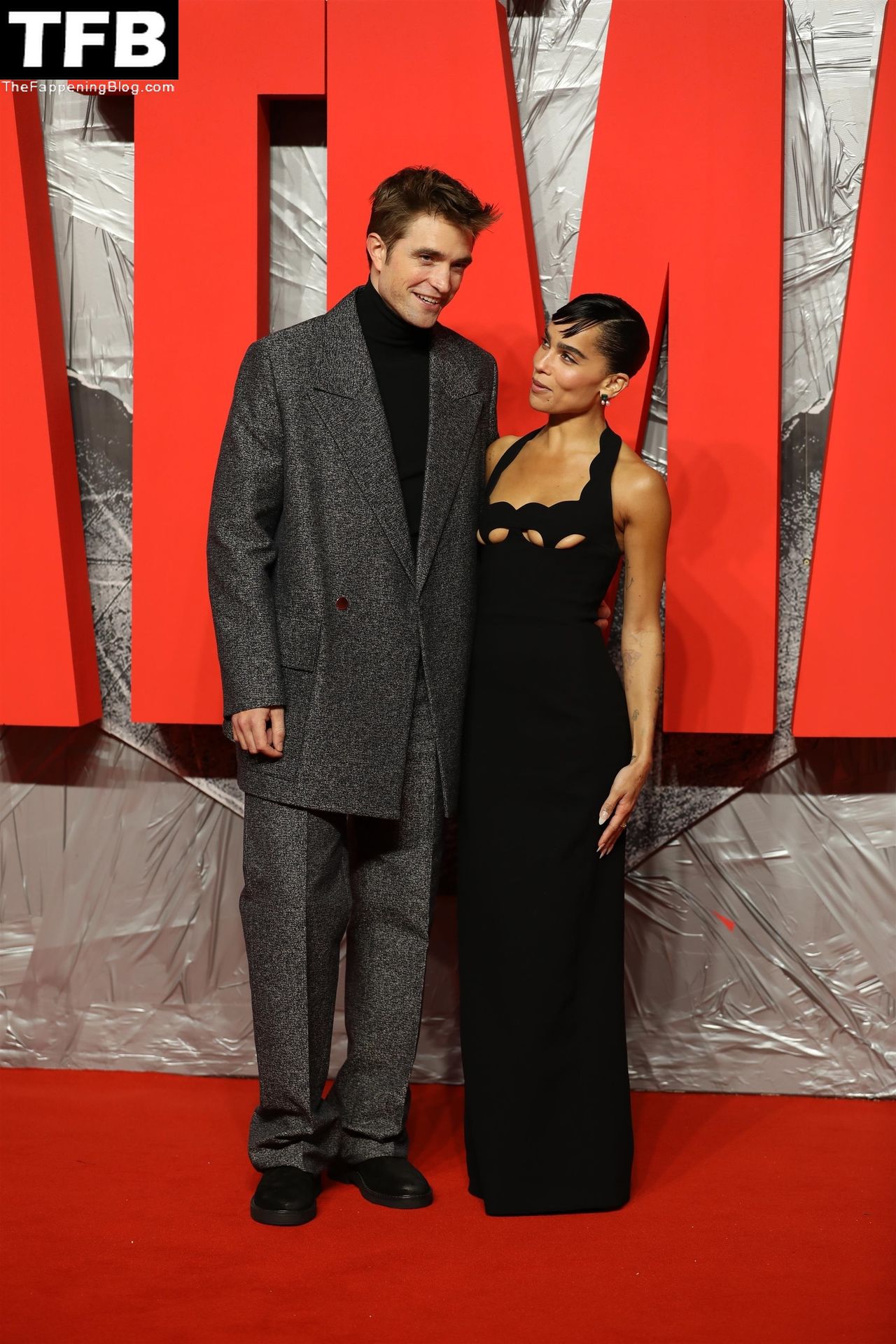 Actores Zoe Kravitz y Robert Pattinson posan juntos en la alfombra roja del estreno de la película The Batman en Londres, 23/02/2022.
