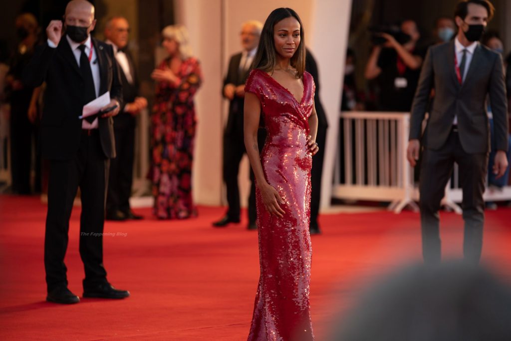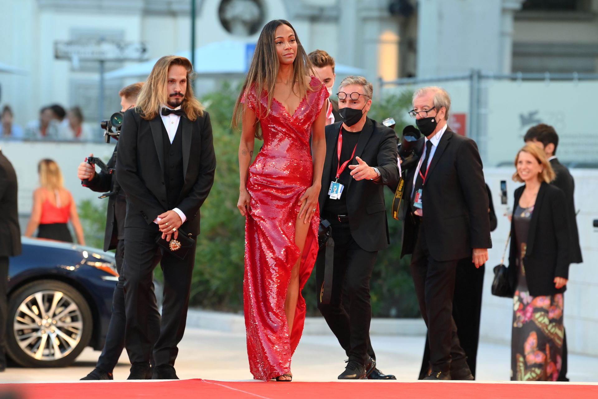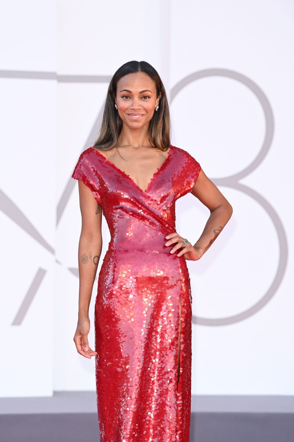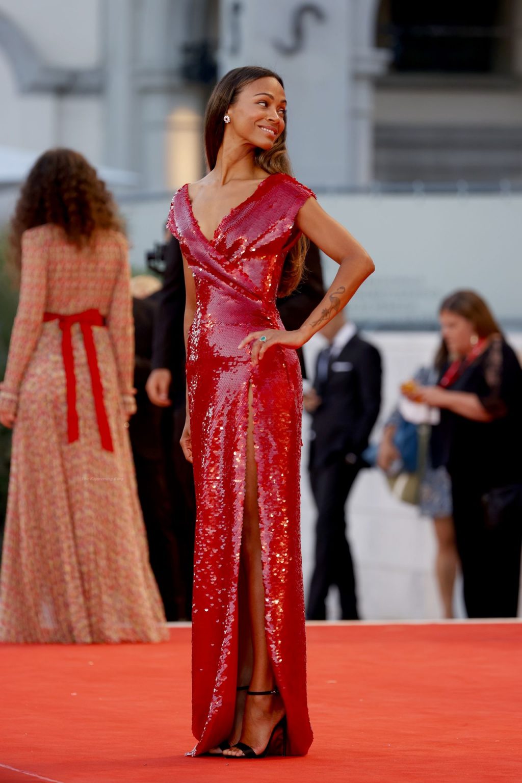 La actriz estadounidense/dominicana Zoe Saldana llega para la proyección de la película “E stata la mano di Dio” (La mano de Dios) presentada en competición durante el 78º Festival de Cine de Venecia en Venice Lido, 02/09/2021.