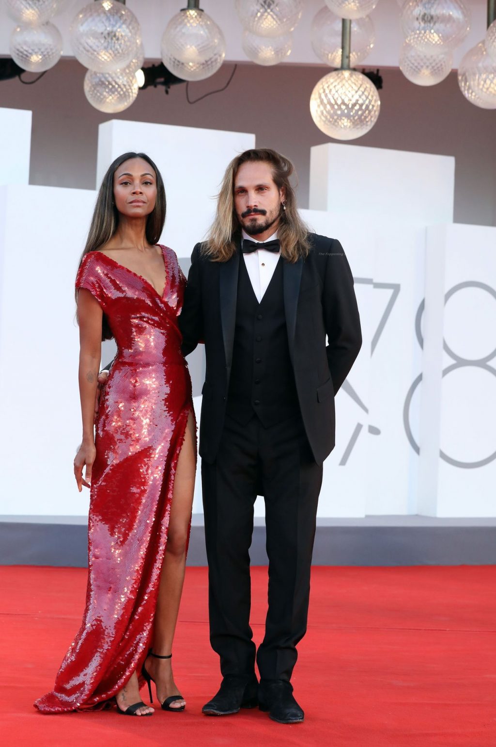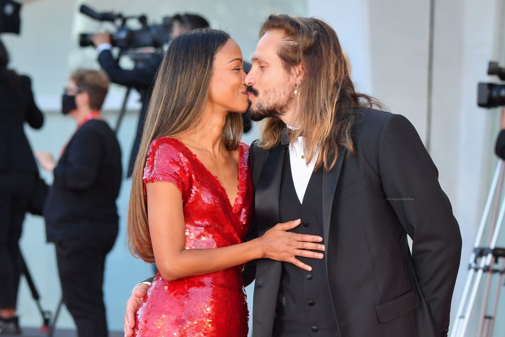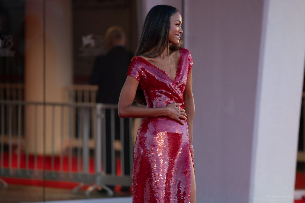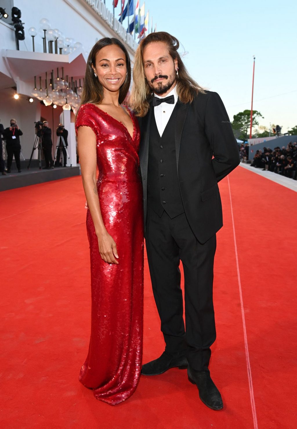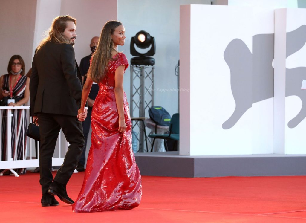 La actriz estadounidense/dominicana Zoe Saldana llega para la proyección de la película “E stata la mano di Dio” (La mano de Dios) presentada en competición durante el 78º Festival de Cine de Venecia en Venice Lido, 02/09/2021.