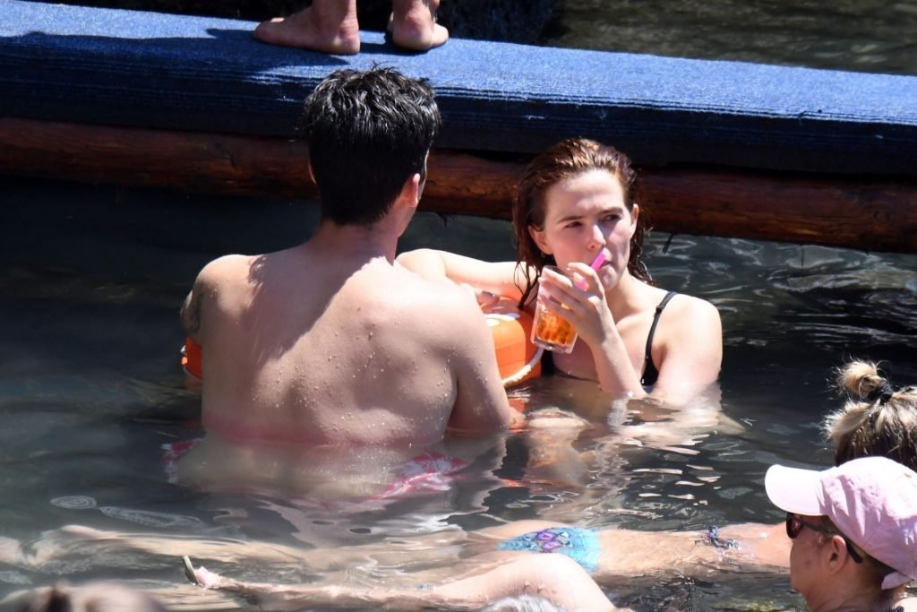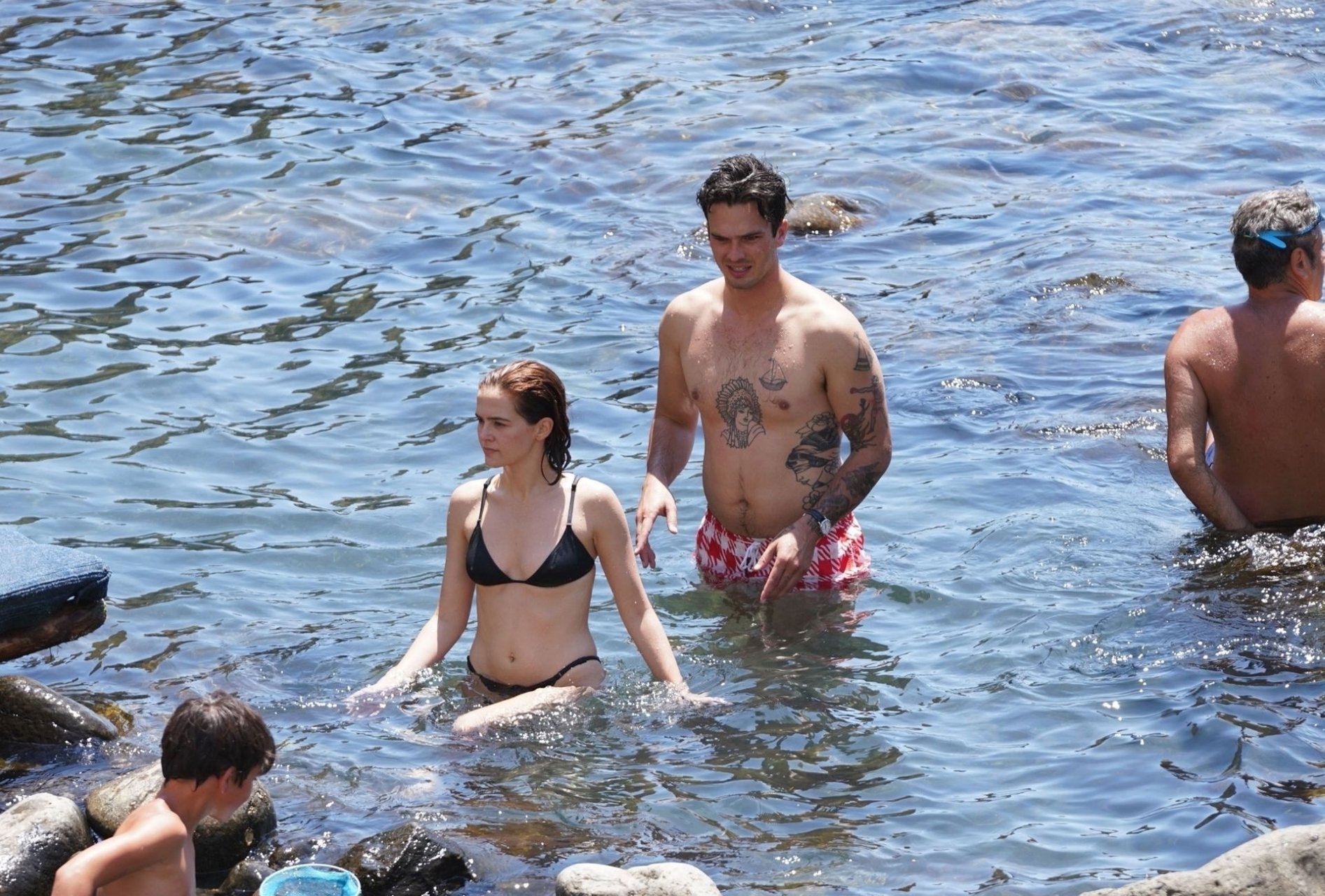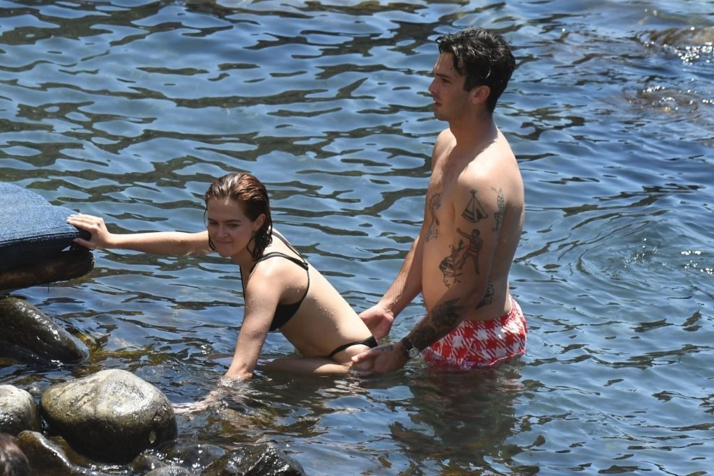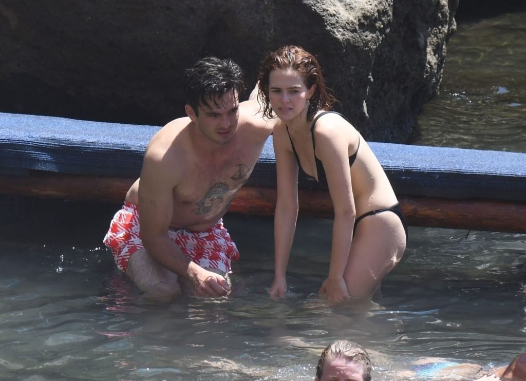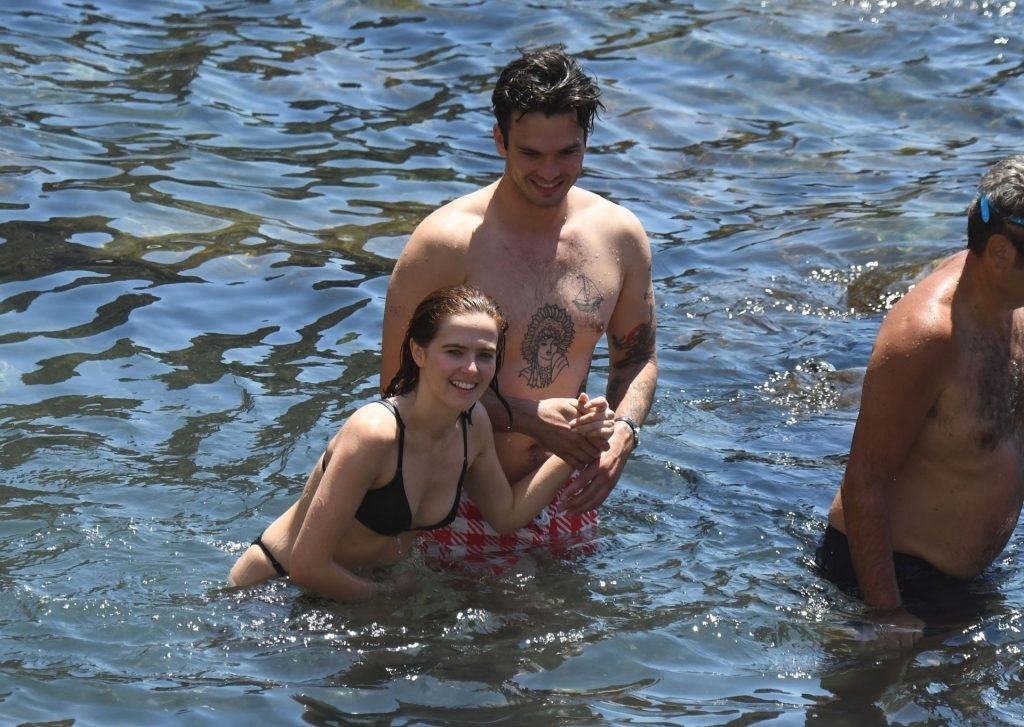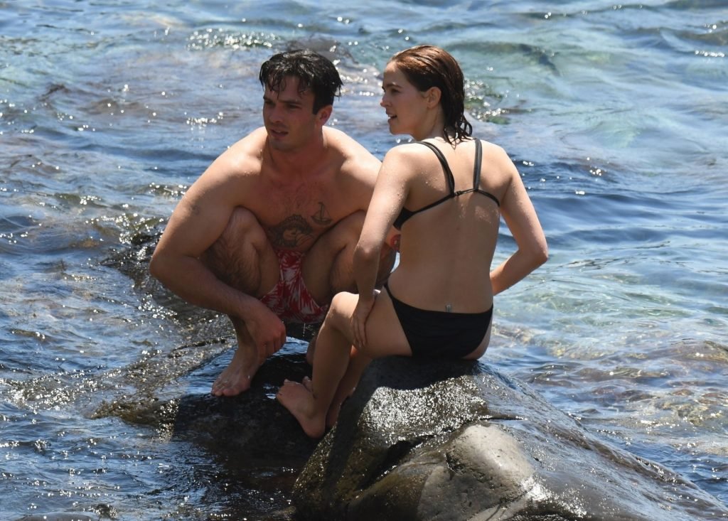 La pareja enamorada se encuentra en la playa durante el Festival Global de Ischia cubriéndose con barro para disfrutar de un baño de barro diseñado para mejorar la piel. Zoey Deutch llevaba un pequeño bikini negro mientras Dylan vestía sus pantalones cortos rojos y blancos con estampado, mientras la pareja disfrutaba plenamente de sus vacaciones italianas bajo el sol.