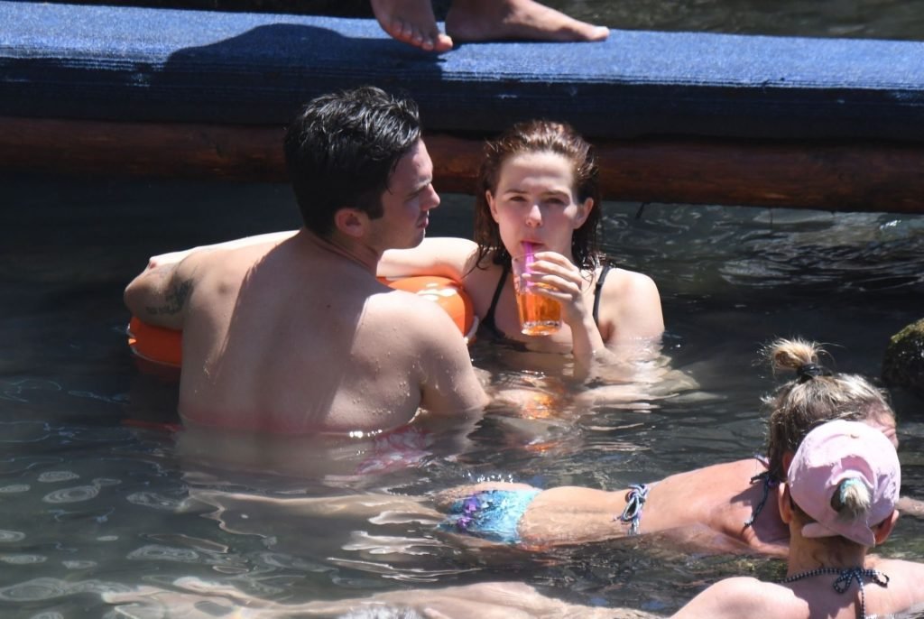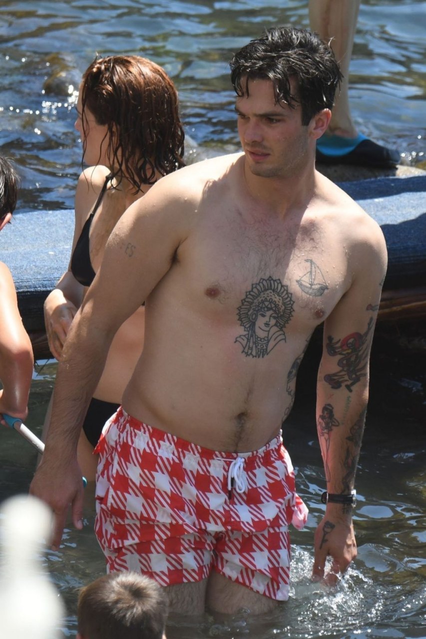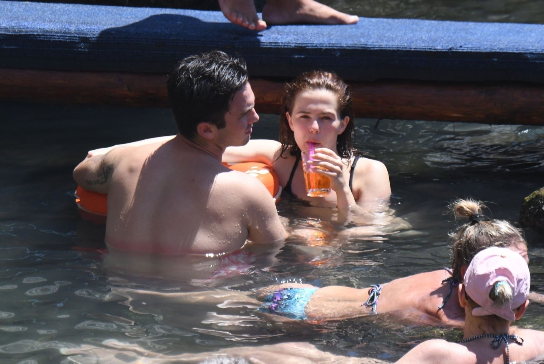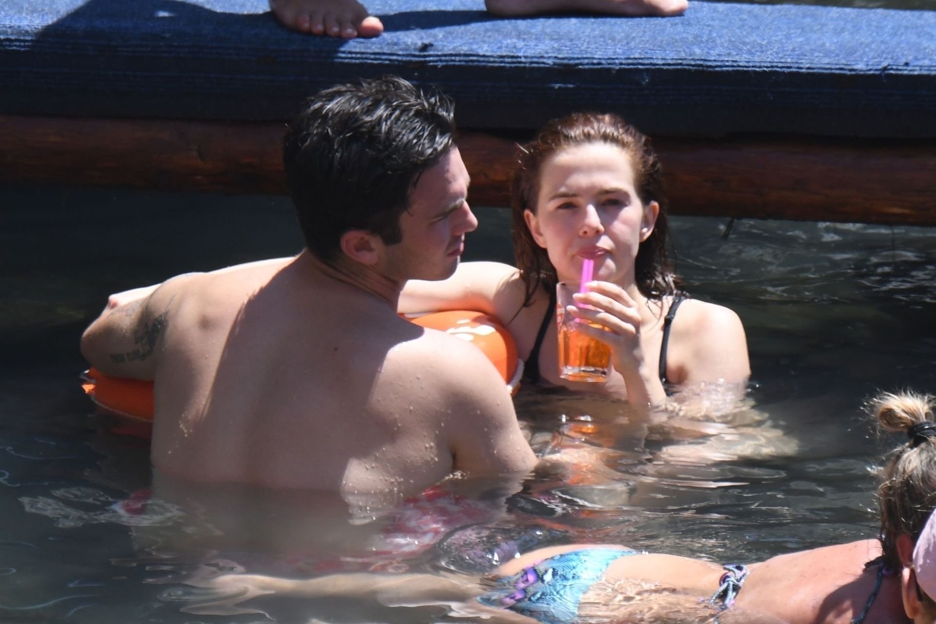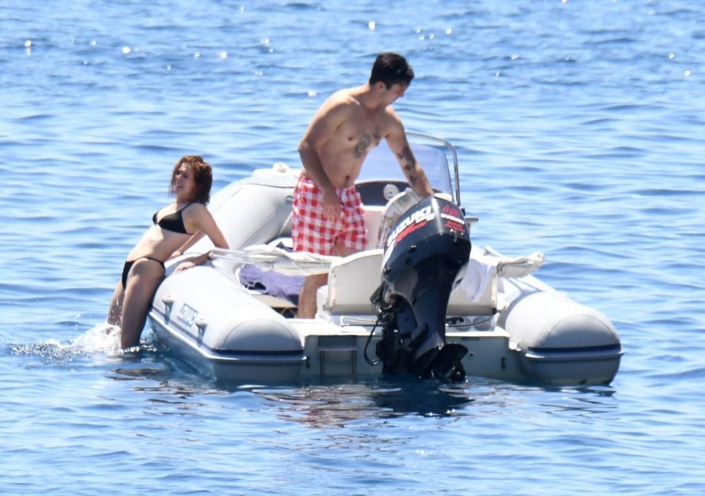 La pareja enamorada se encuentra en la playa durante el Festival Global de Ischia cubriéndose con barro para disfrutar de un baño de barro diseñado para mejorar la piel. Zoey Deutch llevaba un pequeño bikini negro mientras Dylan vestía sus pantalones cortos rojos y blancos con estampado, mientras la pareja disfrutaba plenamente de sus vacaciones italianas bajo el sol.