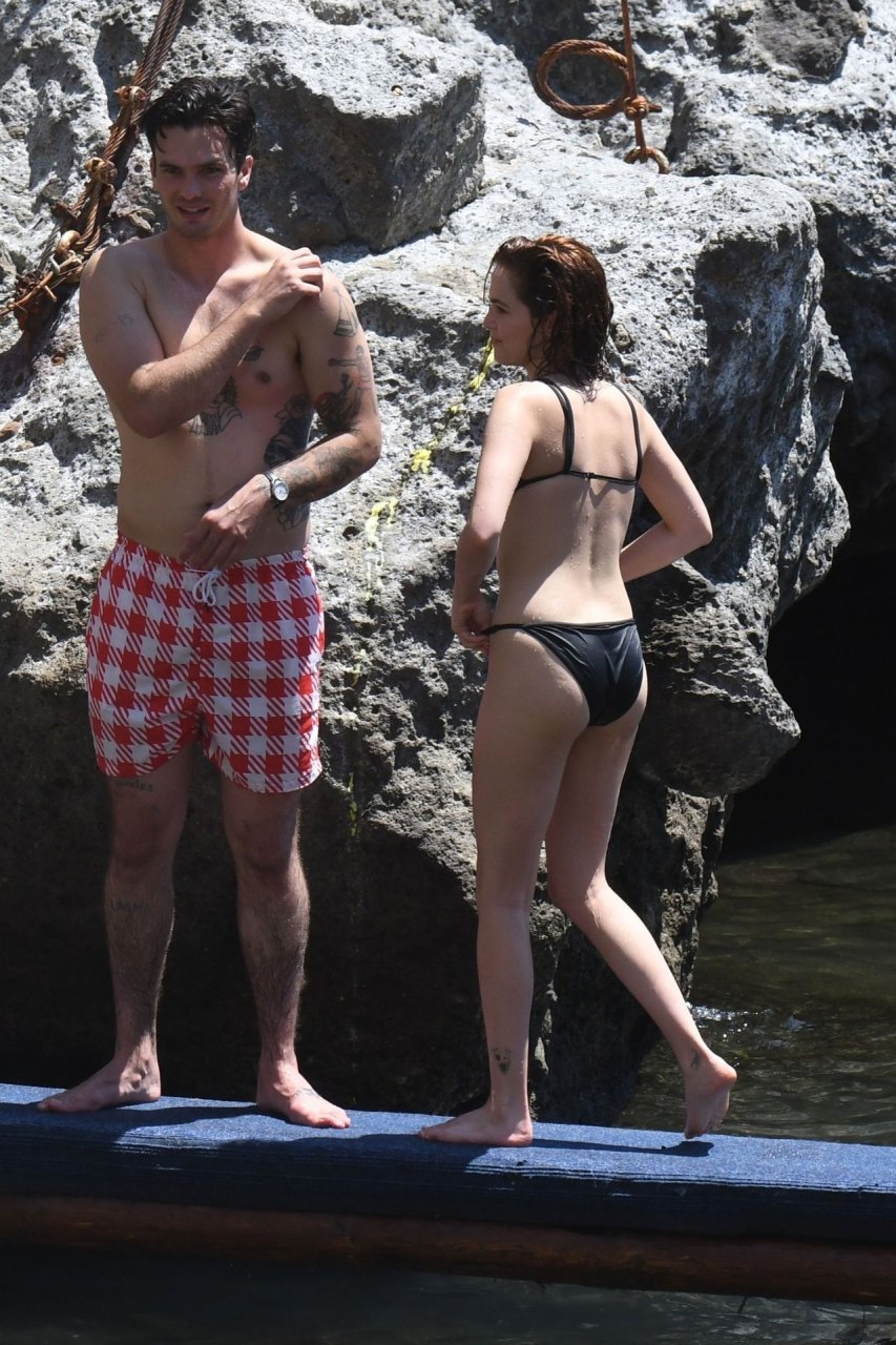 Famosa por sus papeles en la película de fantasía gótica “Beautiful Creatures” y “Vampire Academy”, la actriz estadounidense Zoey Deutch y su novio Dylan Hayes fueron vistos de vacaciones en Ischia, 17/07/2019.